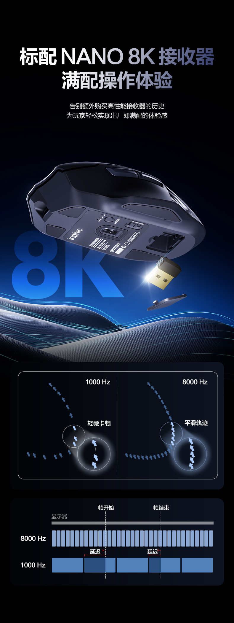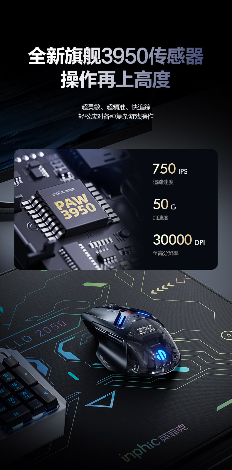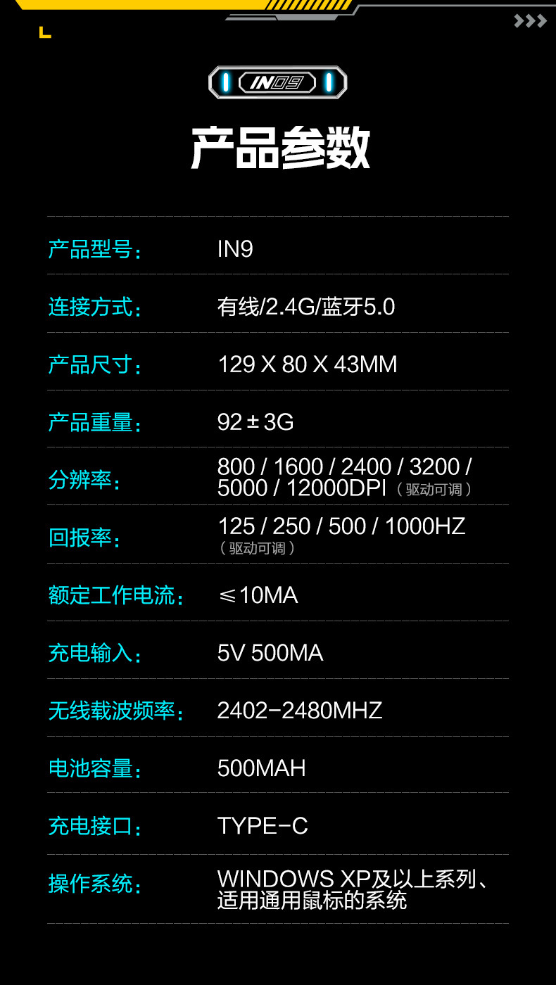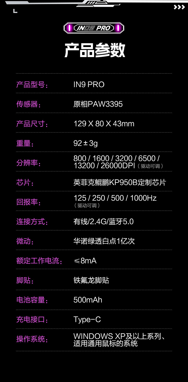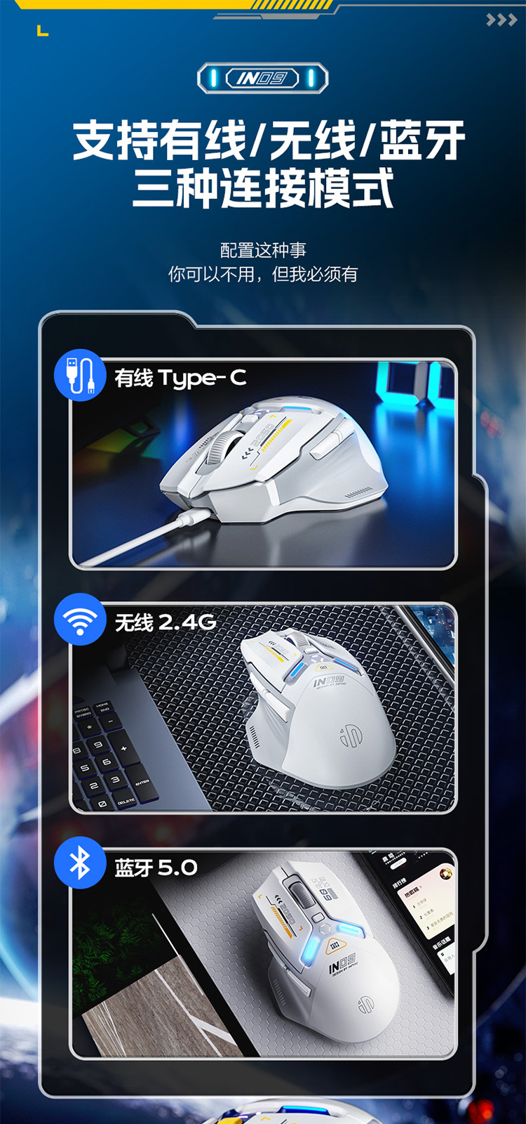 INPHIC INFIK IN9 3 모드 무선 블루투스 마우스 유선 전자 스포츠 게임 사무실 충전 PAW3395