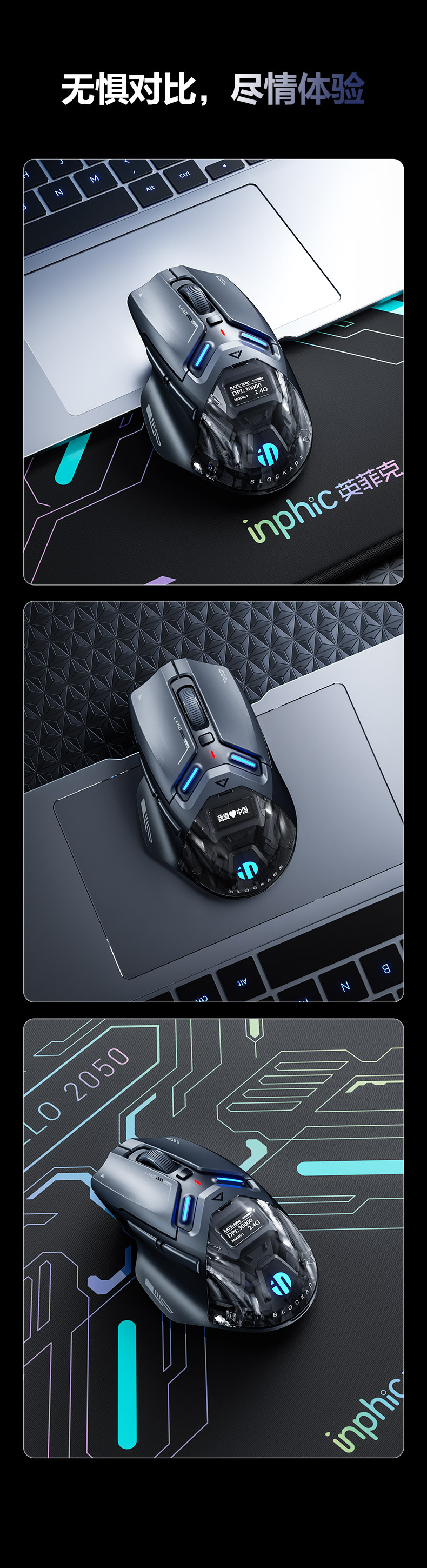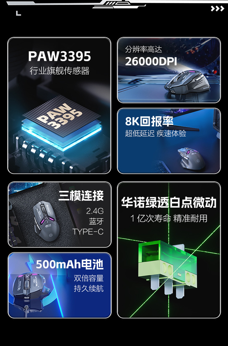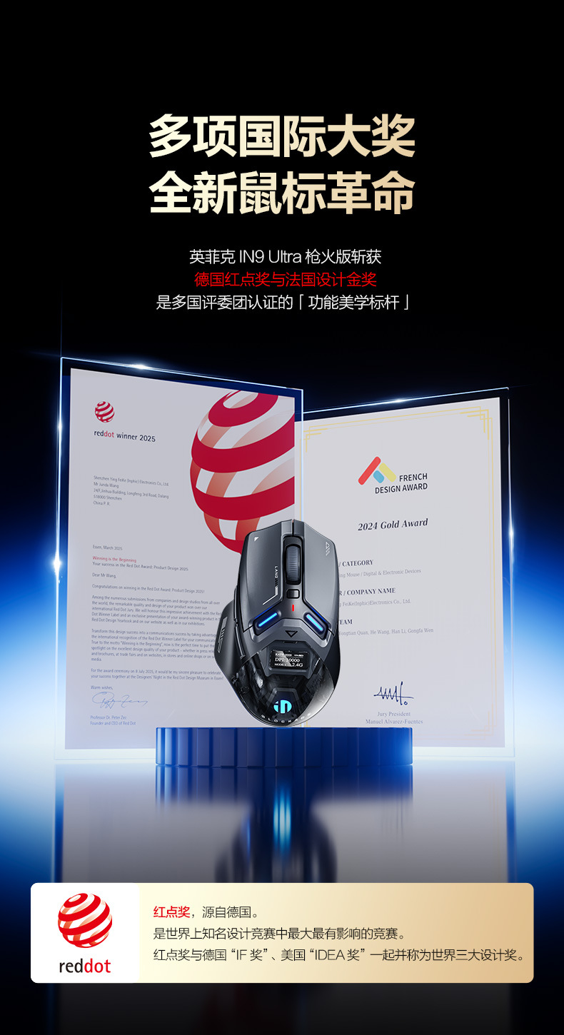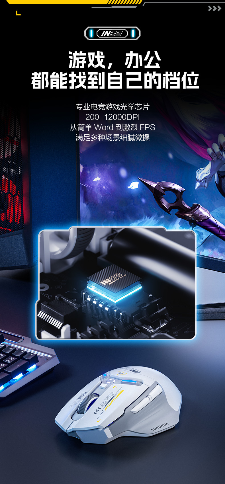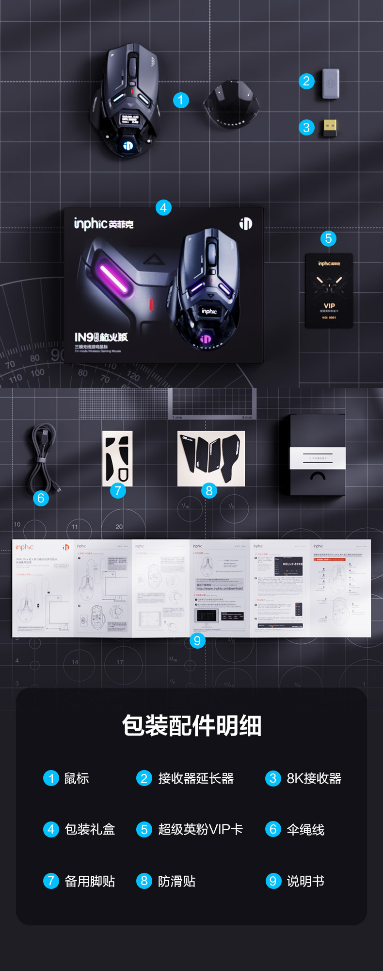 INPHIC INFIK IN9 3 모드 무선 블루투스 마우스 유선 전자 스포츠 게임 사무실 충전 PAW3395