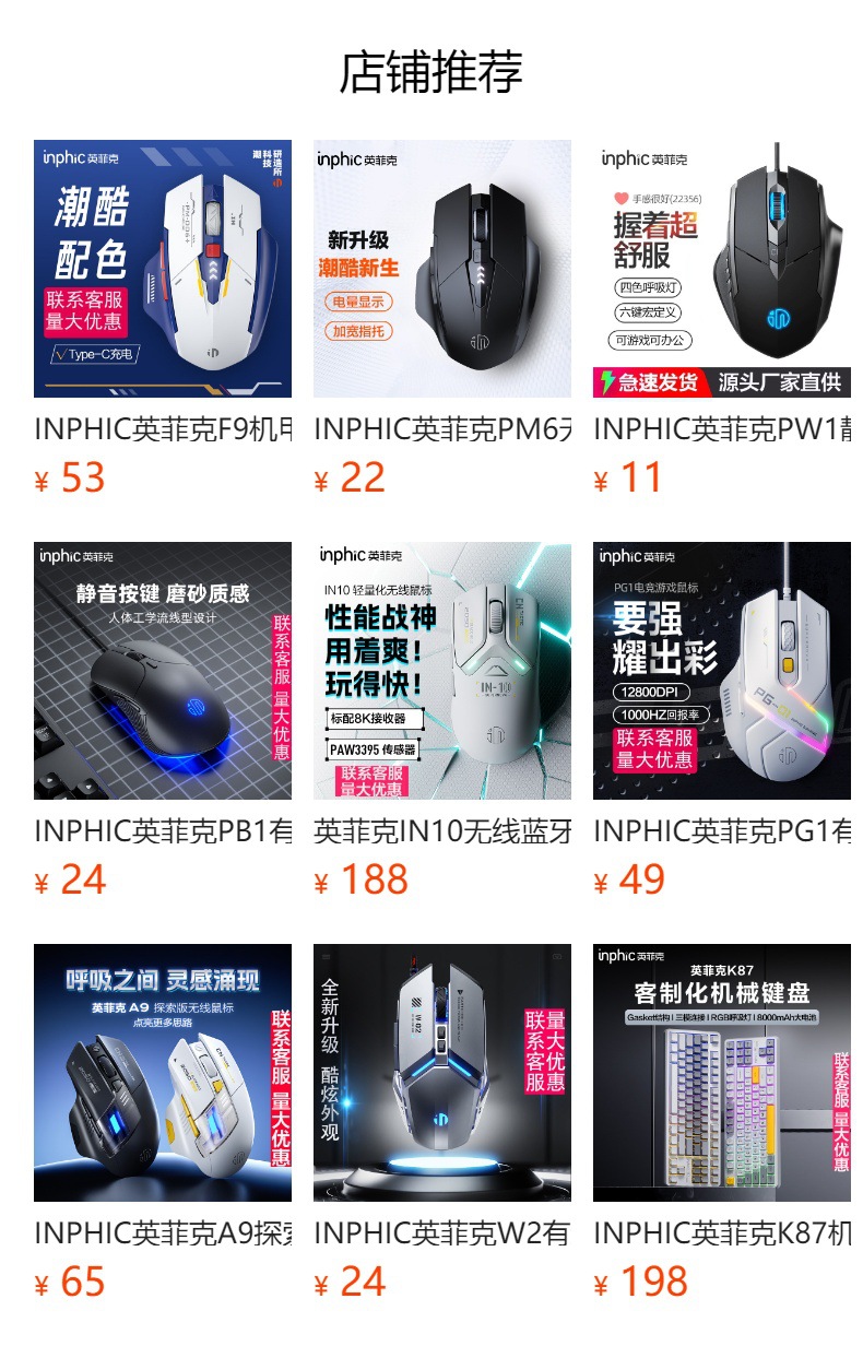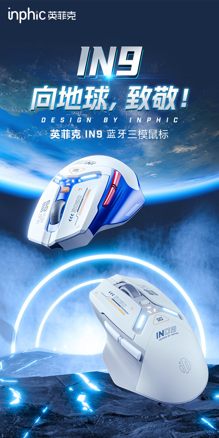INPHIC INFIK IN9 3 모드 무선 블루투스 마우스 유선 전자 스포츠 게임 사무실 충전 PAW3395스토어 가기