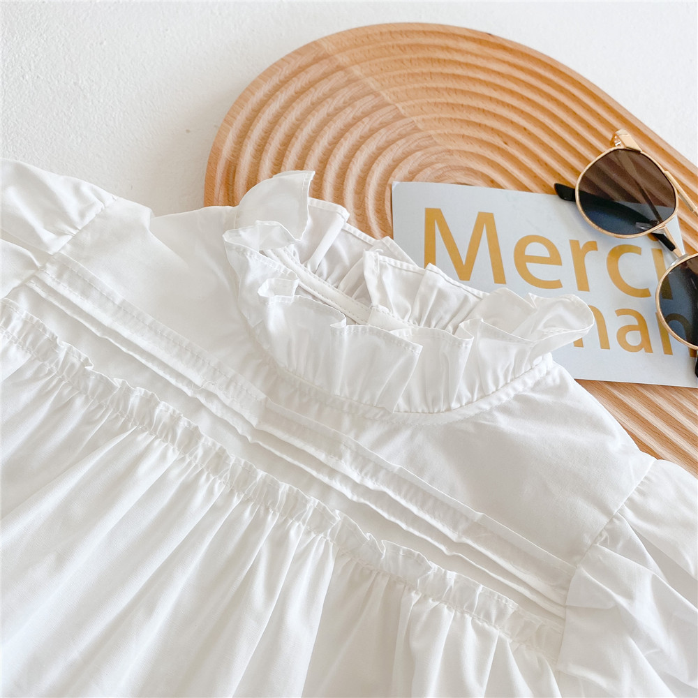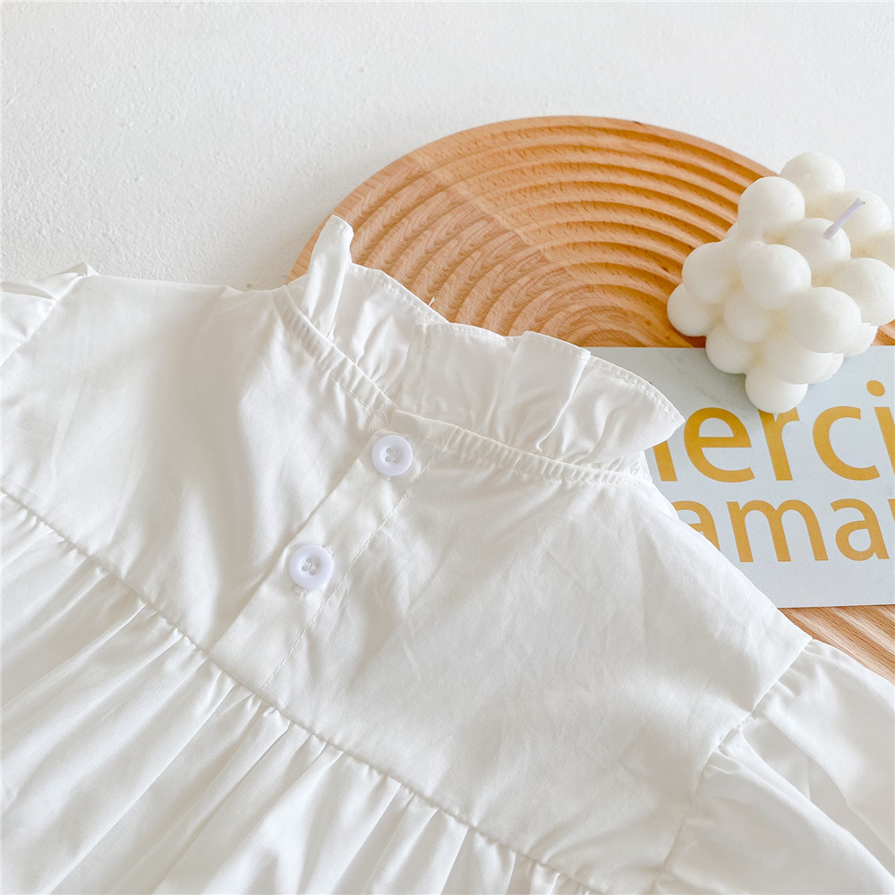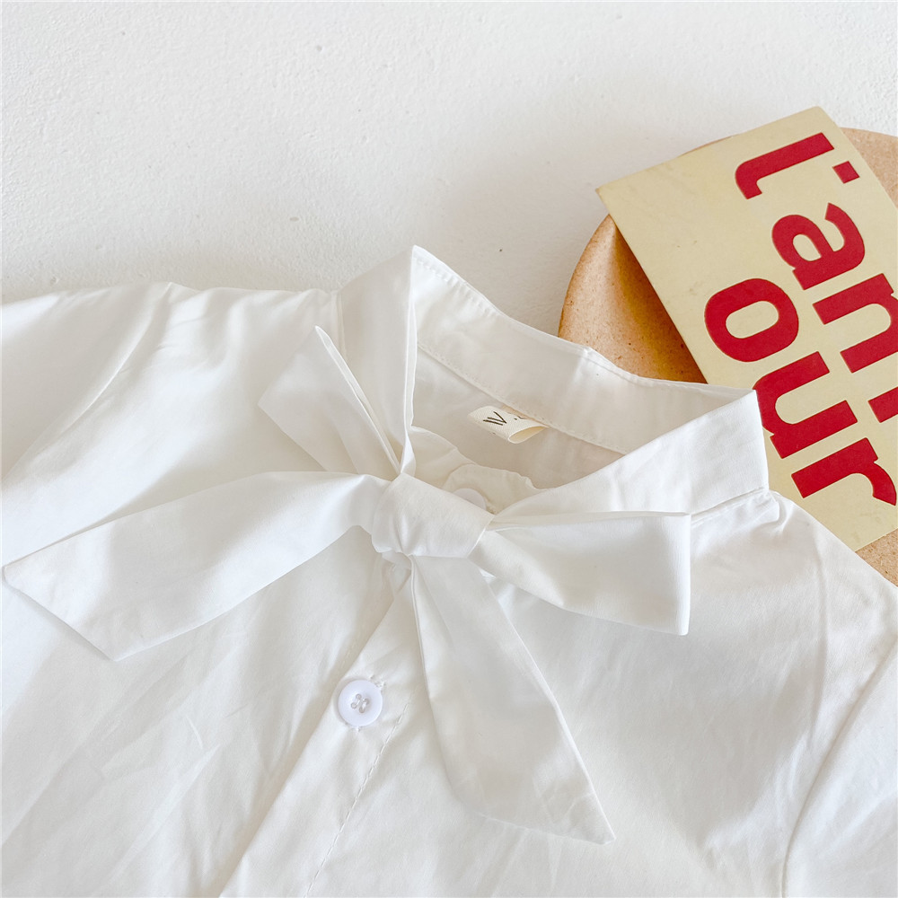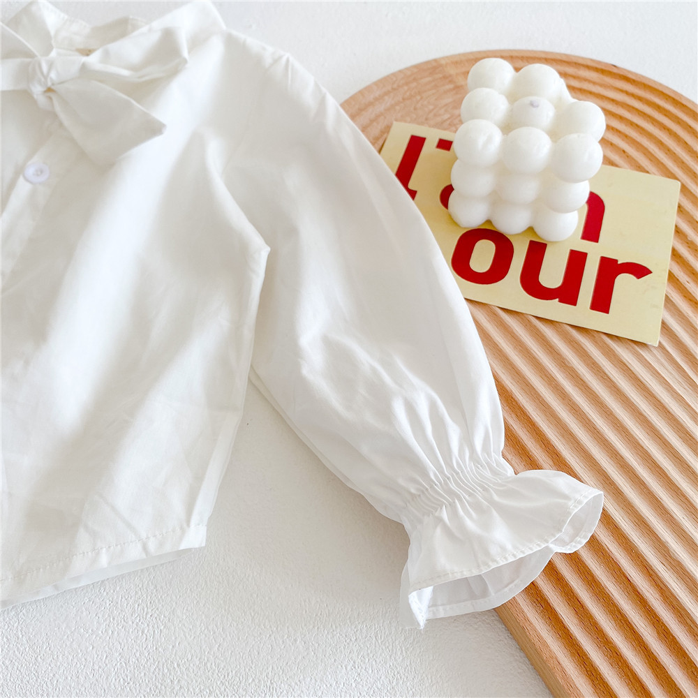 어린이 순수 코튼 나비 레이스 셔츠 2024 봄 소녀 탑 레이스 업 셔츠
