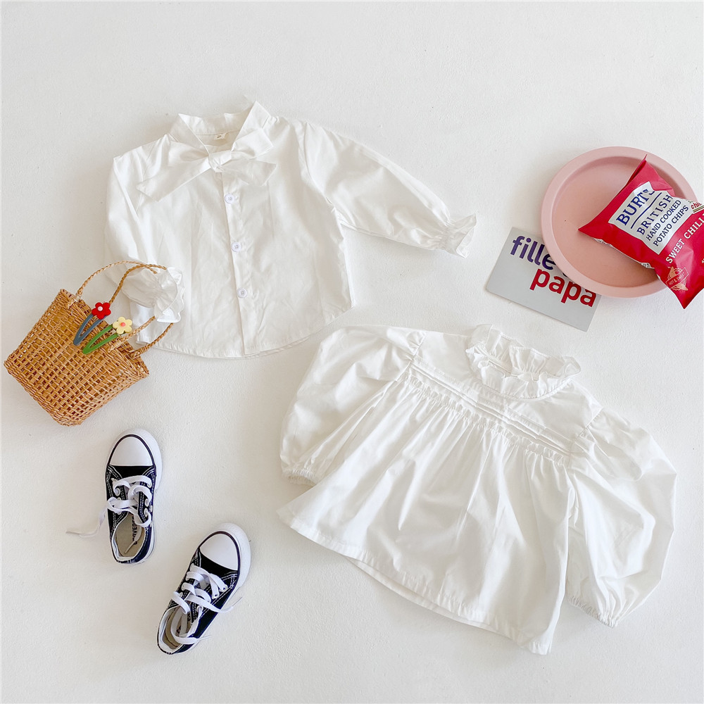 어린이 순수 코튼 나비 레이스 셔츠 2024 봄 소녀 탑 레이스 업 셔츠스토어 가기