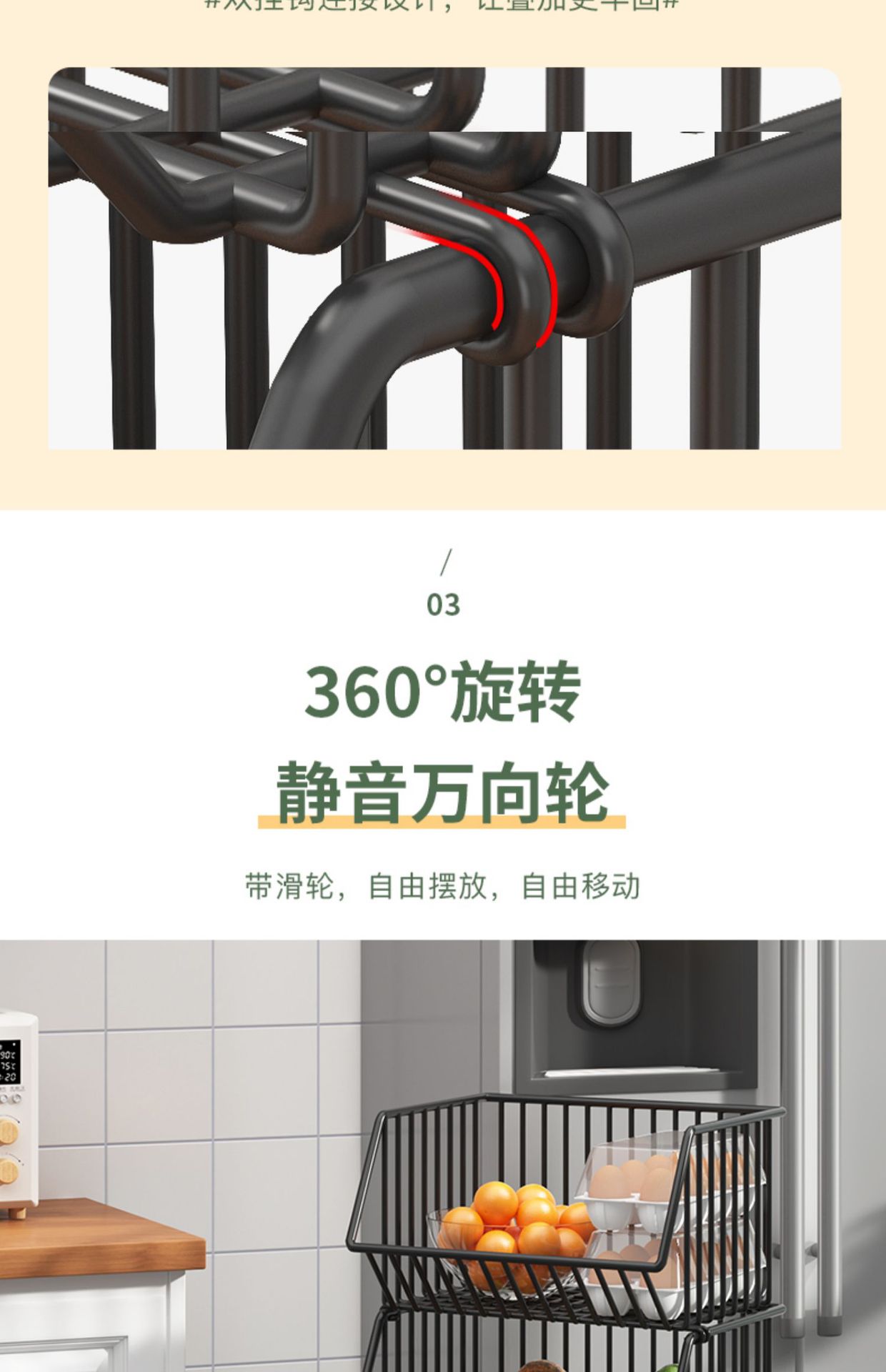 주방 수납 랙 야채 바구니 다기능 가정용 바닥 다층 트롤리 보관 선반 용품스토어 가기