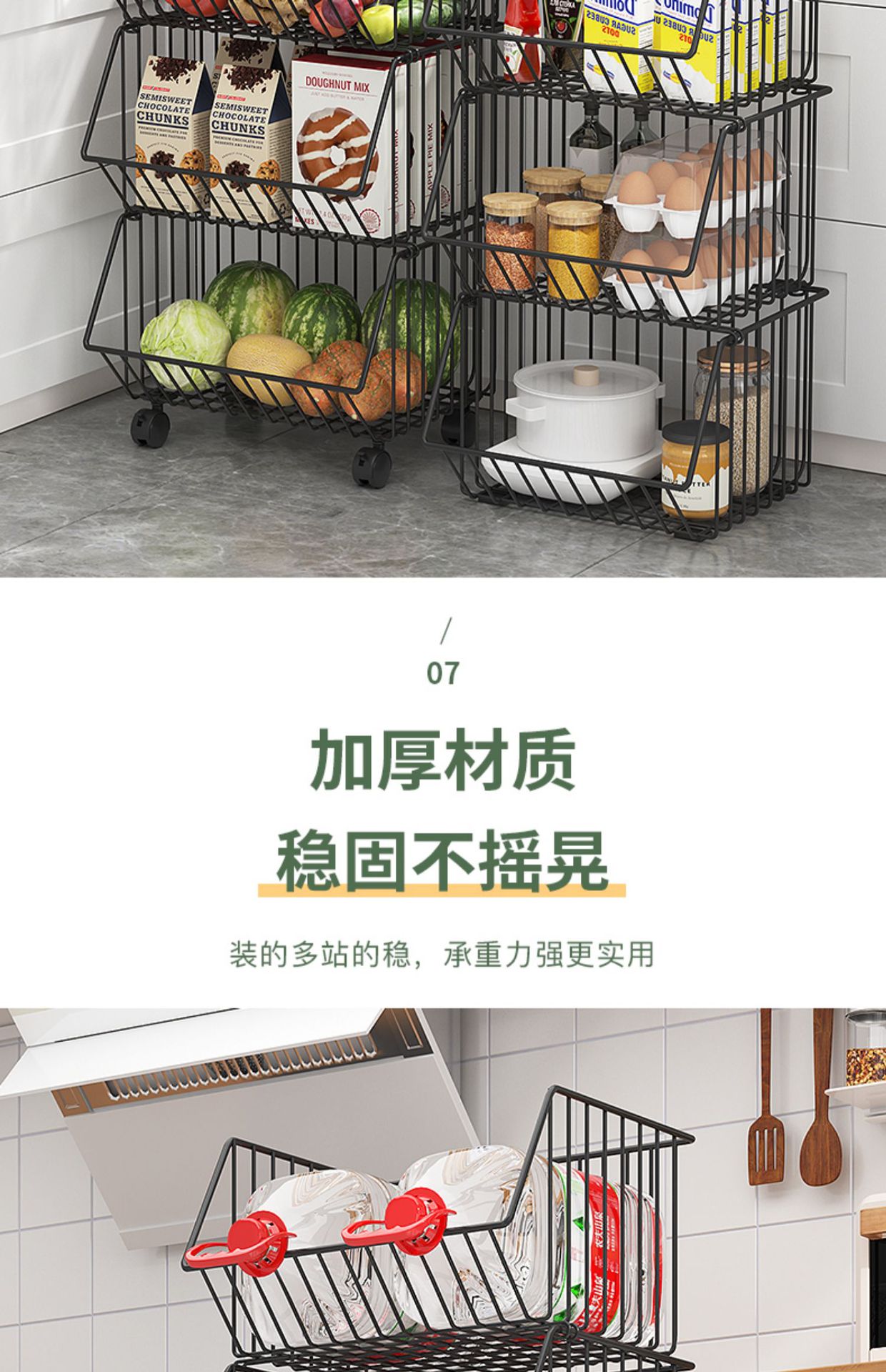 주방 수납 랙 야채 바구니 다기능 가정용 바닥 다층 트롤리 보관 선반 용품