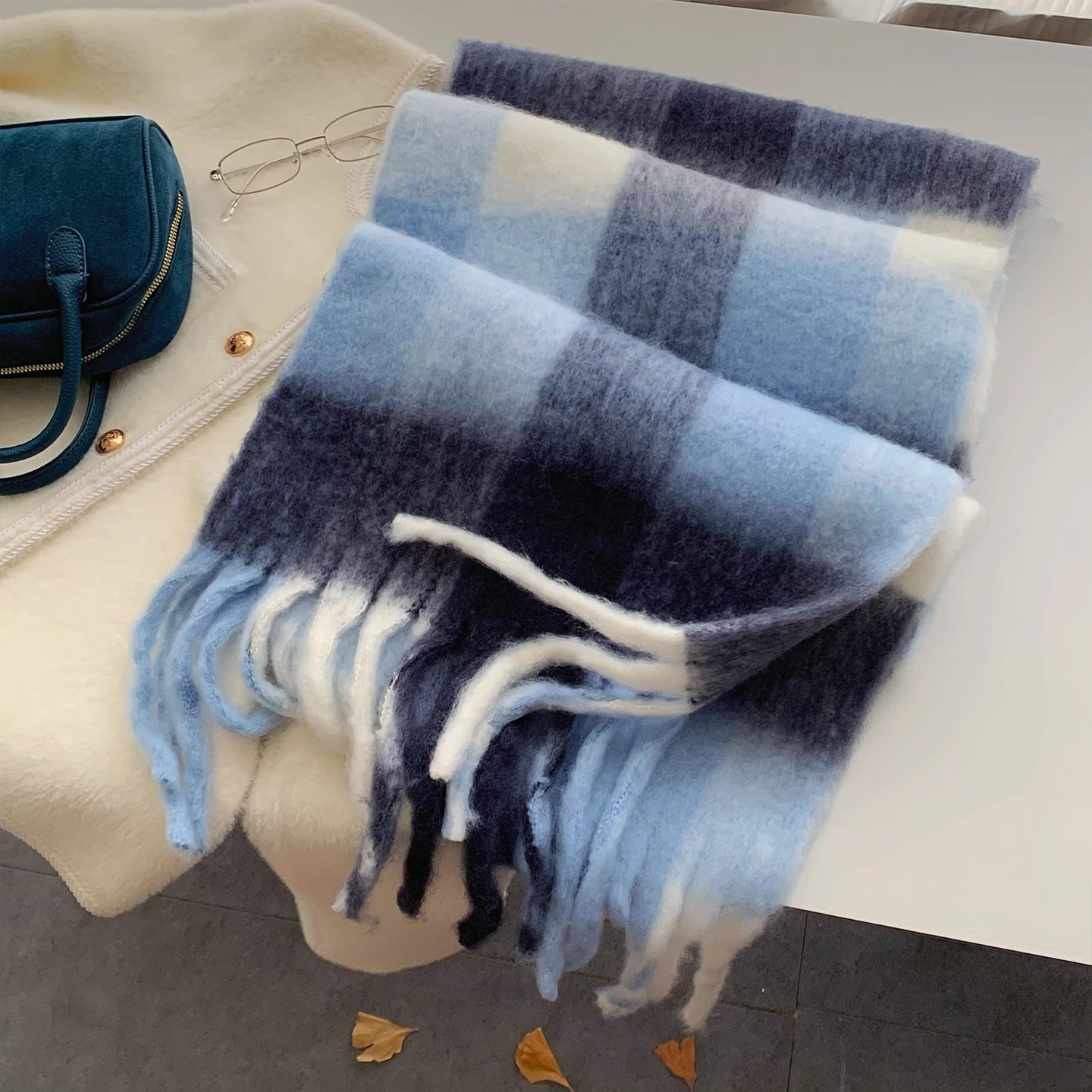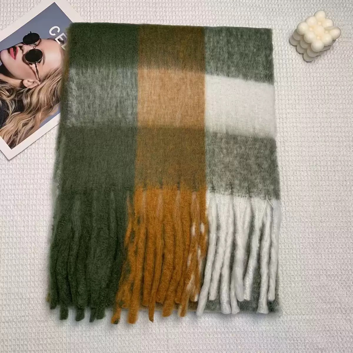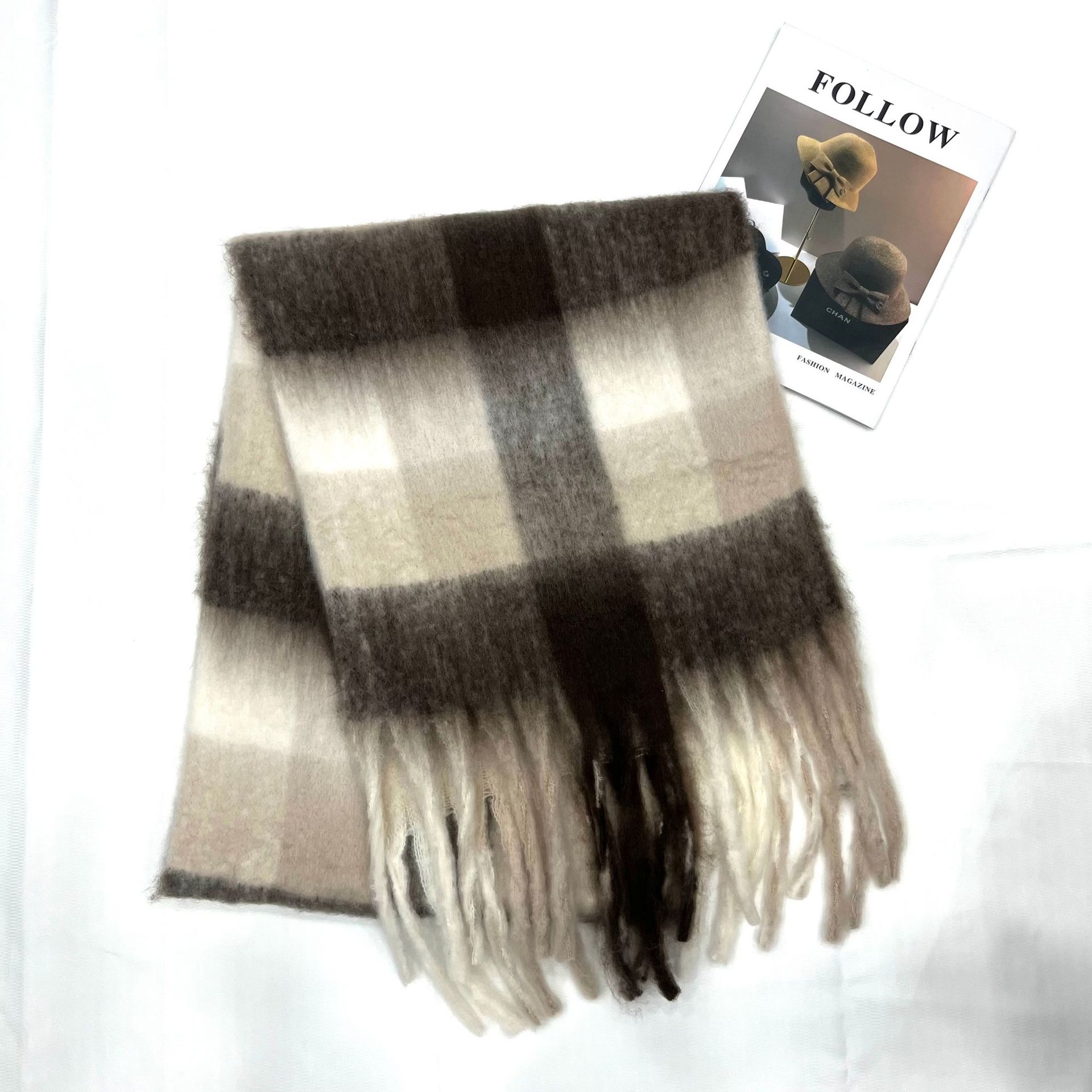 모헤어 컬러 매칭 격자 무늬 스카프 새로운 따뜻한 두꺼운 조커 술 가을과 겨울 대외 무역 국경 제조 업체 도매스토어 가기