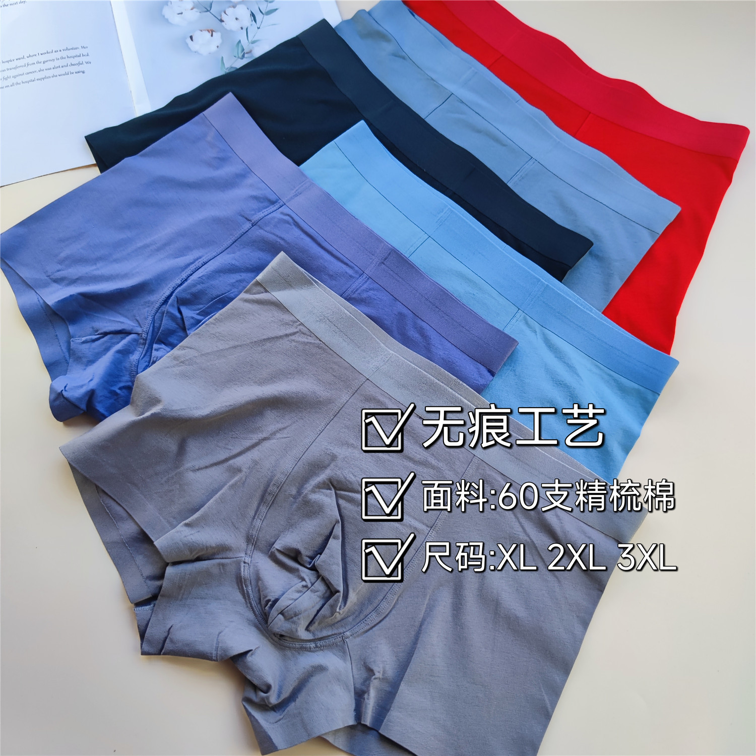 新货到 !!!60支精梳棉男士无痕内裤