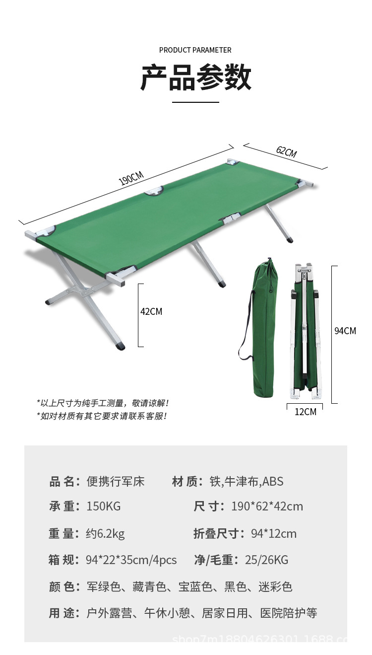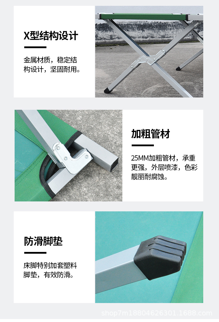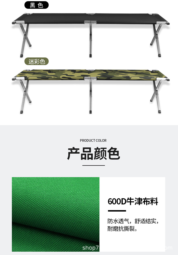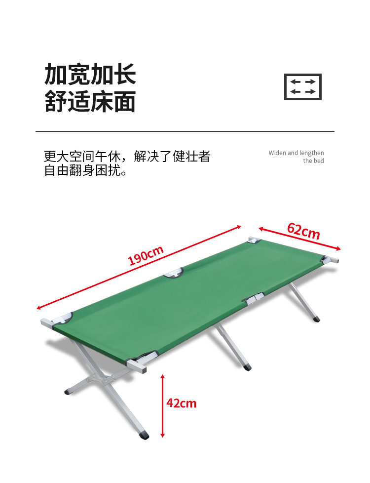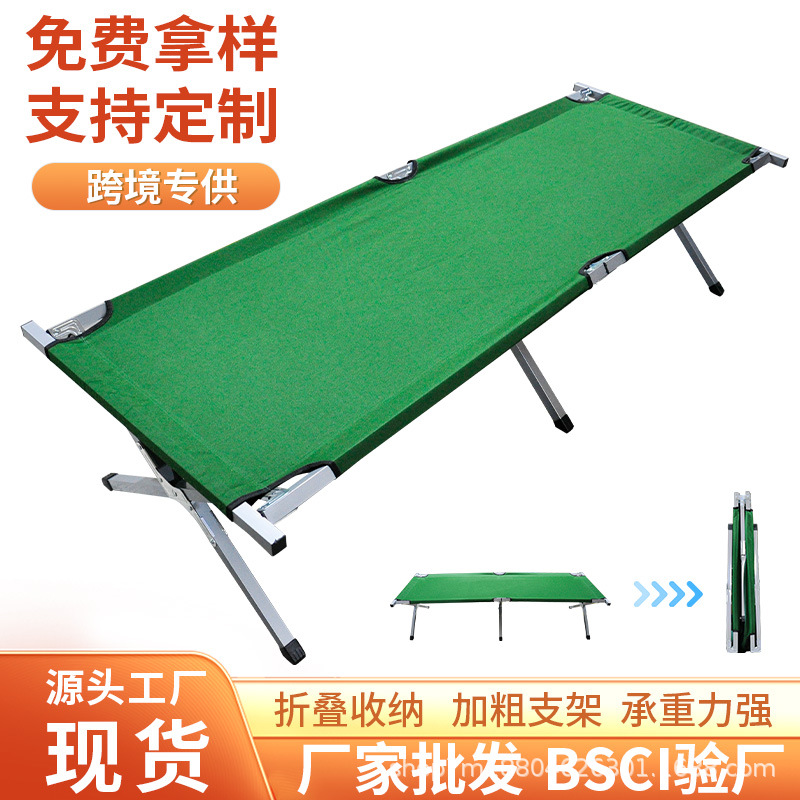 야외 편리한 넓어진 접이식 침대 카키 옥스포드 천 단일 간단한 캠핑 침대 두꺼운 강화 전술 캠프 침대스토어 가기