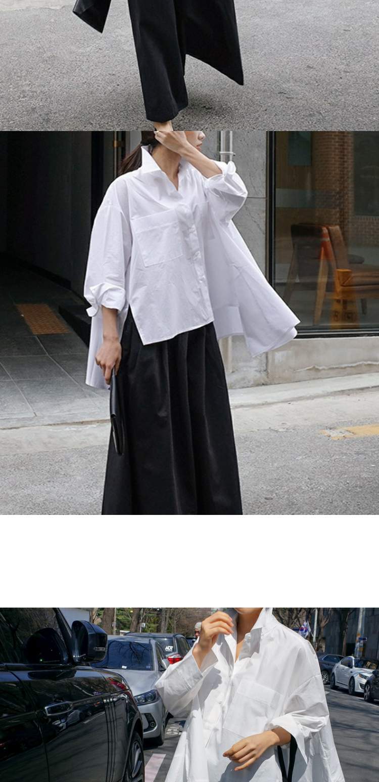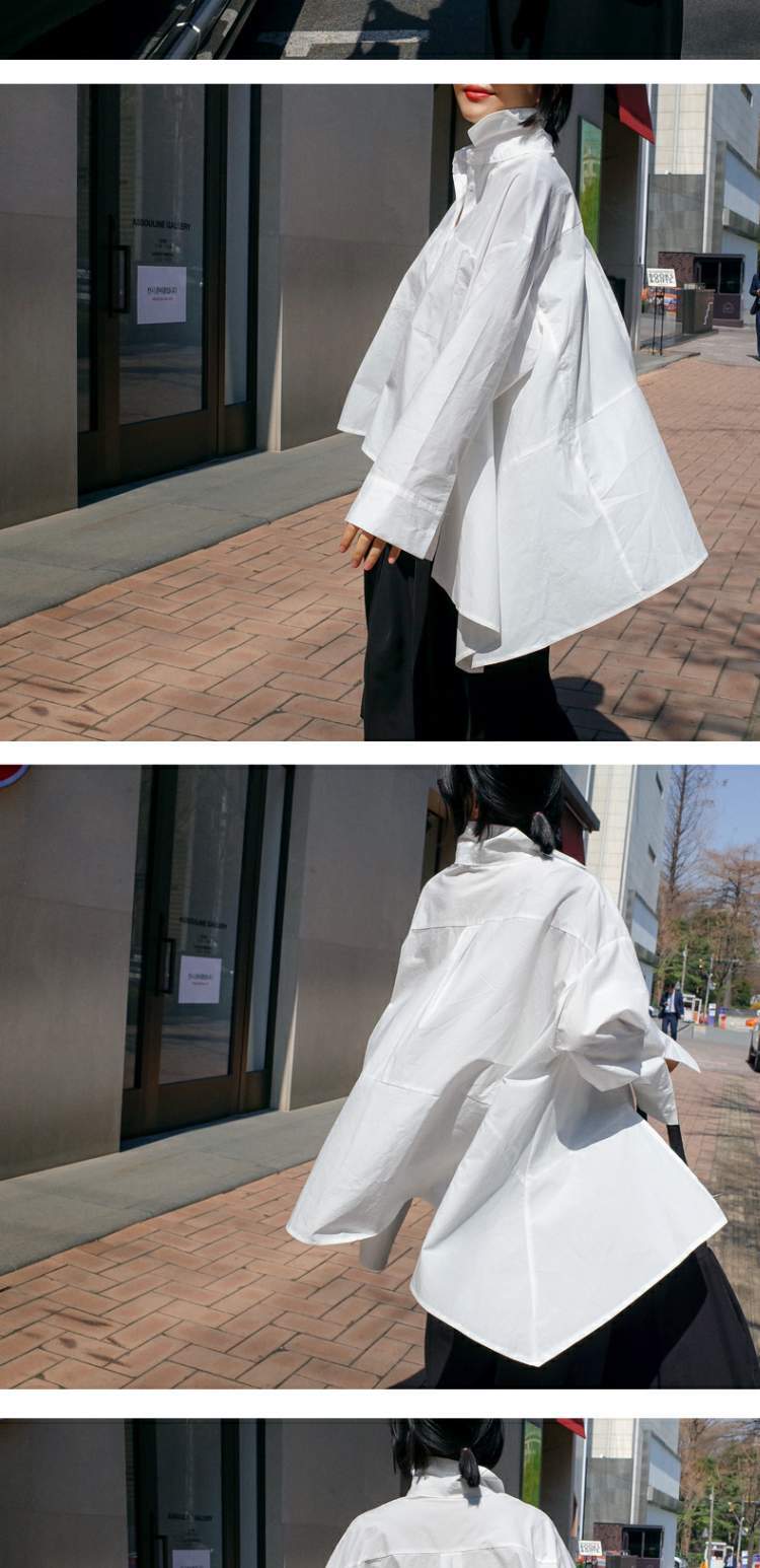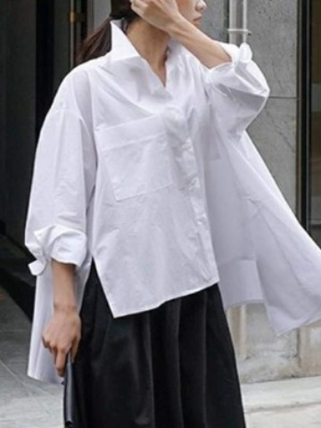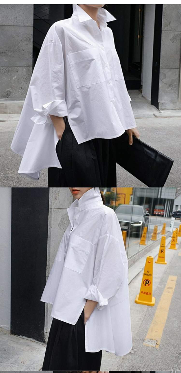 8986 봄과 가을 새로운 스타일의 흰색 셔츠 여성 한국 스타일 느슨한 대형 망토 유형 긴팔 불규칙한 셔츠 탑