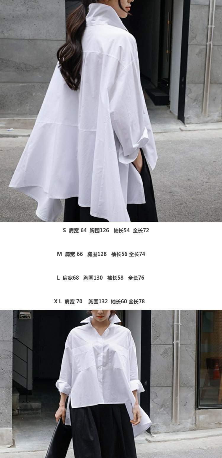 8986 봄과 가을 새로운 스타일의 흰색 셔츠 여성 한국 스타일 느슨한 대형 망토 유형 긴팔 불규칙한 셔츠 탑스토어 가기