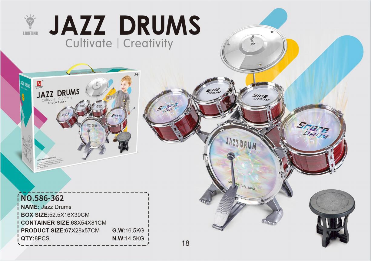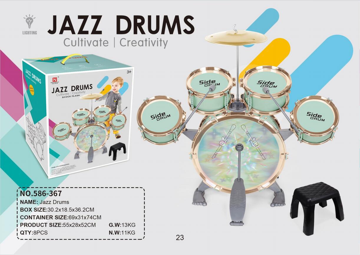 새로운 국경 간 어린이 드럼 세트 조명 재즈 드럼 초보자는 타악기 교육 악기 장난감 제조업체를 노크합니다.스토어 가기