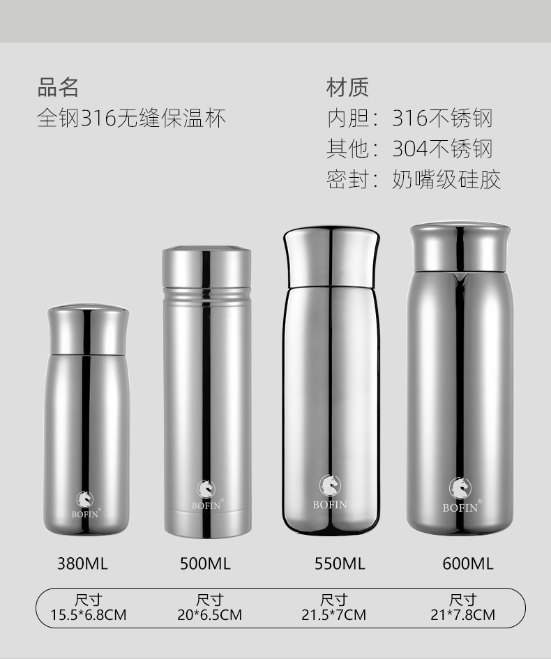 BOFIN 모든 스테인레스 스틸 316 완벽한 보온병 컵 만들기 차 마시는 컵 휴대용 자동차 사무실 레터링