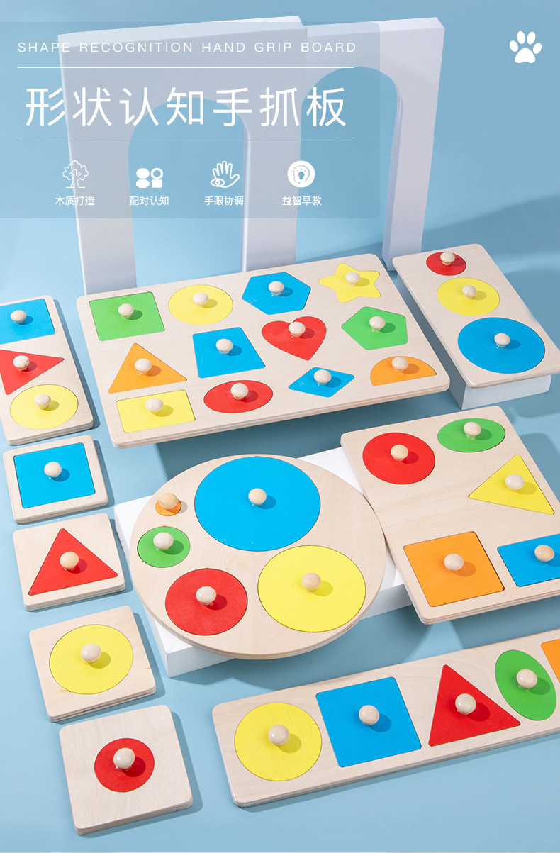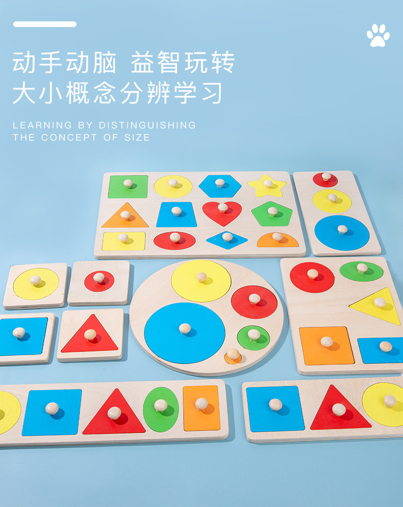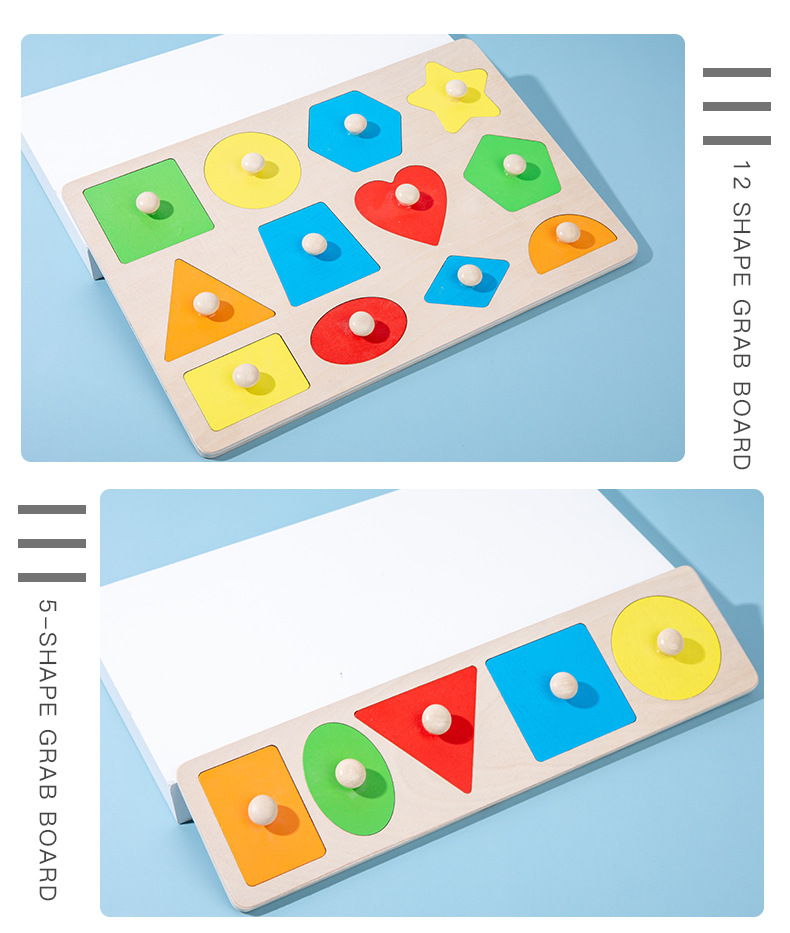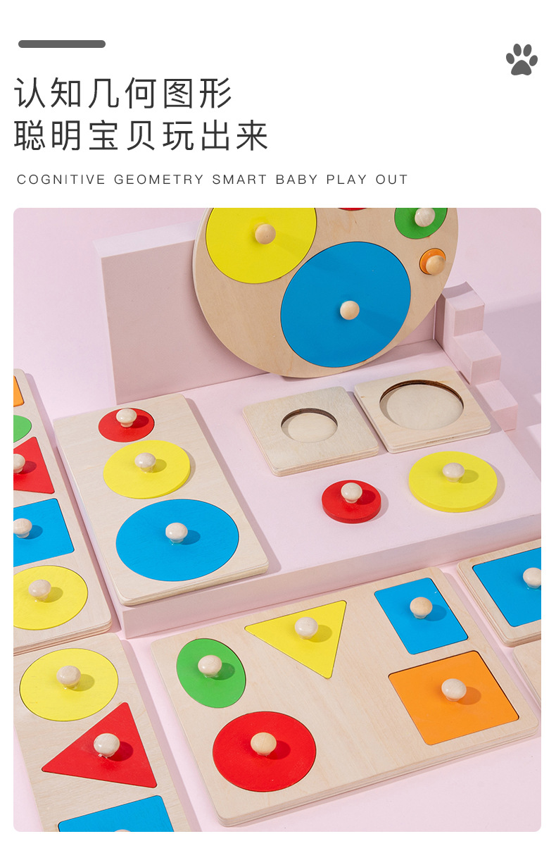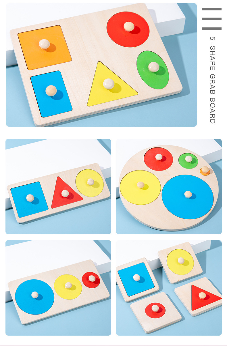 어린이 몬테소리 나무 못판 교구 기하학적 모양 퍼즐 색상 인지 블록 장난감 입체 퍼즐