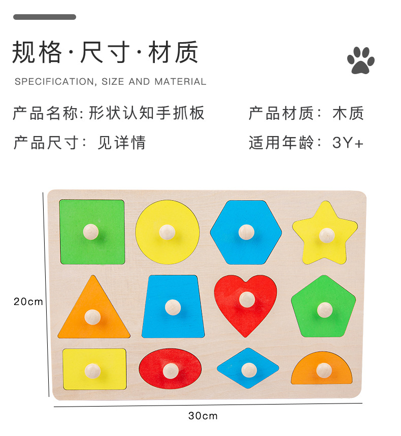 어린이 몬테소리 나무 못판 교구 기하학적 모양 퍼즐 색상 인지 블록 장난감 입체 퍼즐스토어 가기
