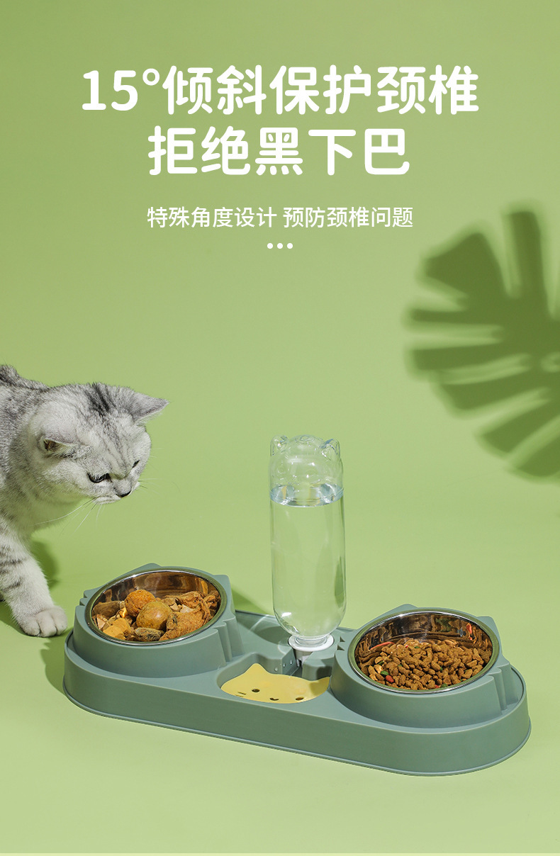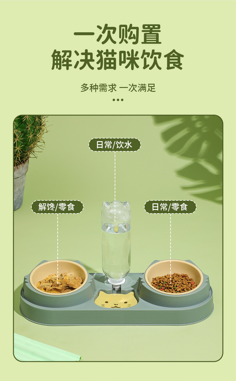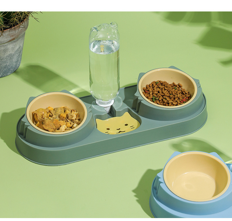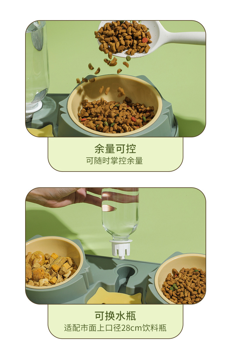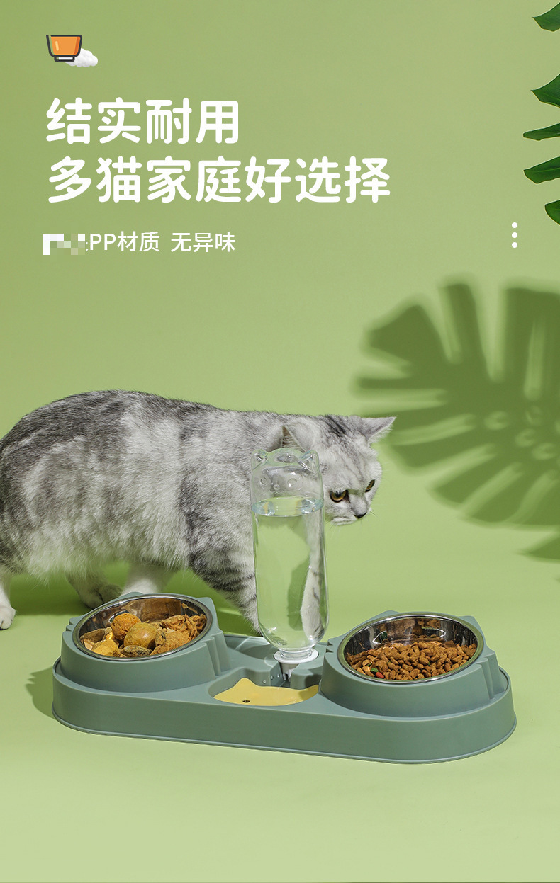쓰리인원 먹이 고양이 사발 다기능 애완동물 사료 사발 자동 음료수 디스펜서 건식 및 습식 사료 사발 기울기 목 보호 사발
