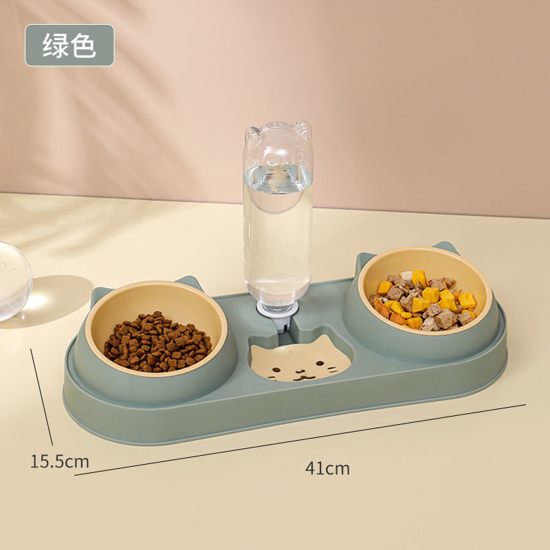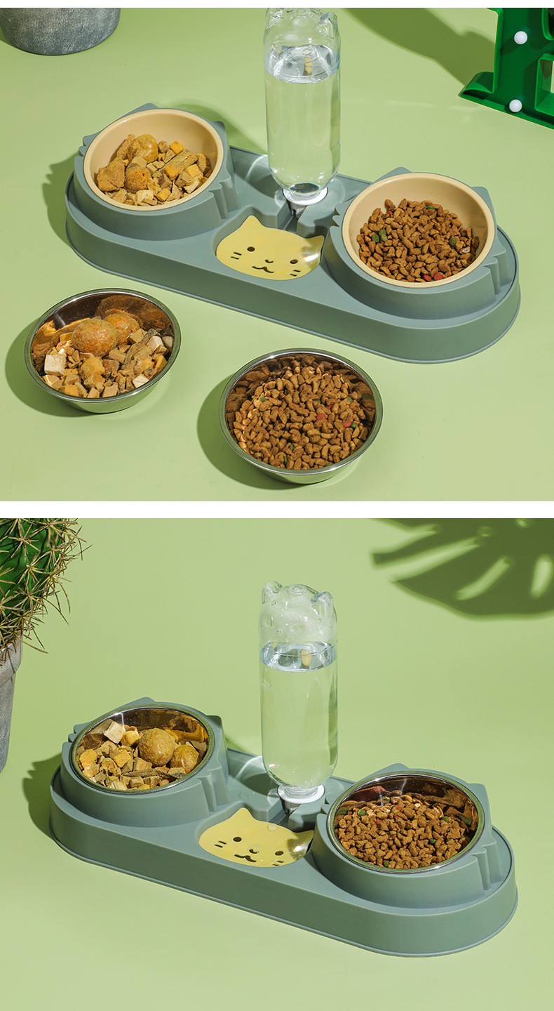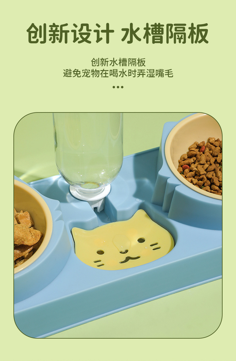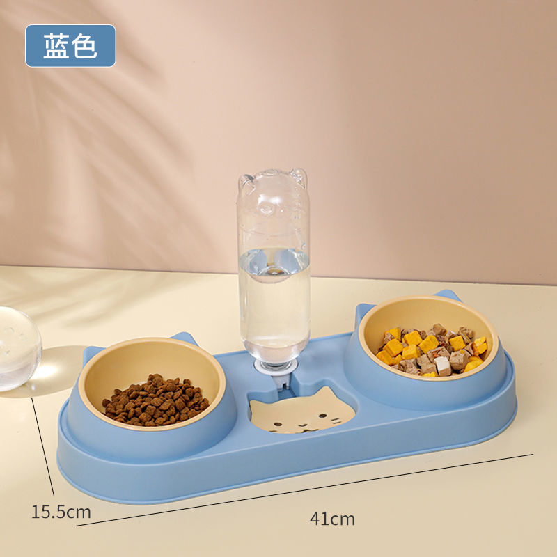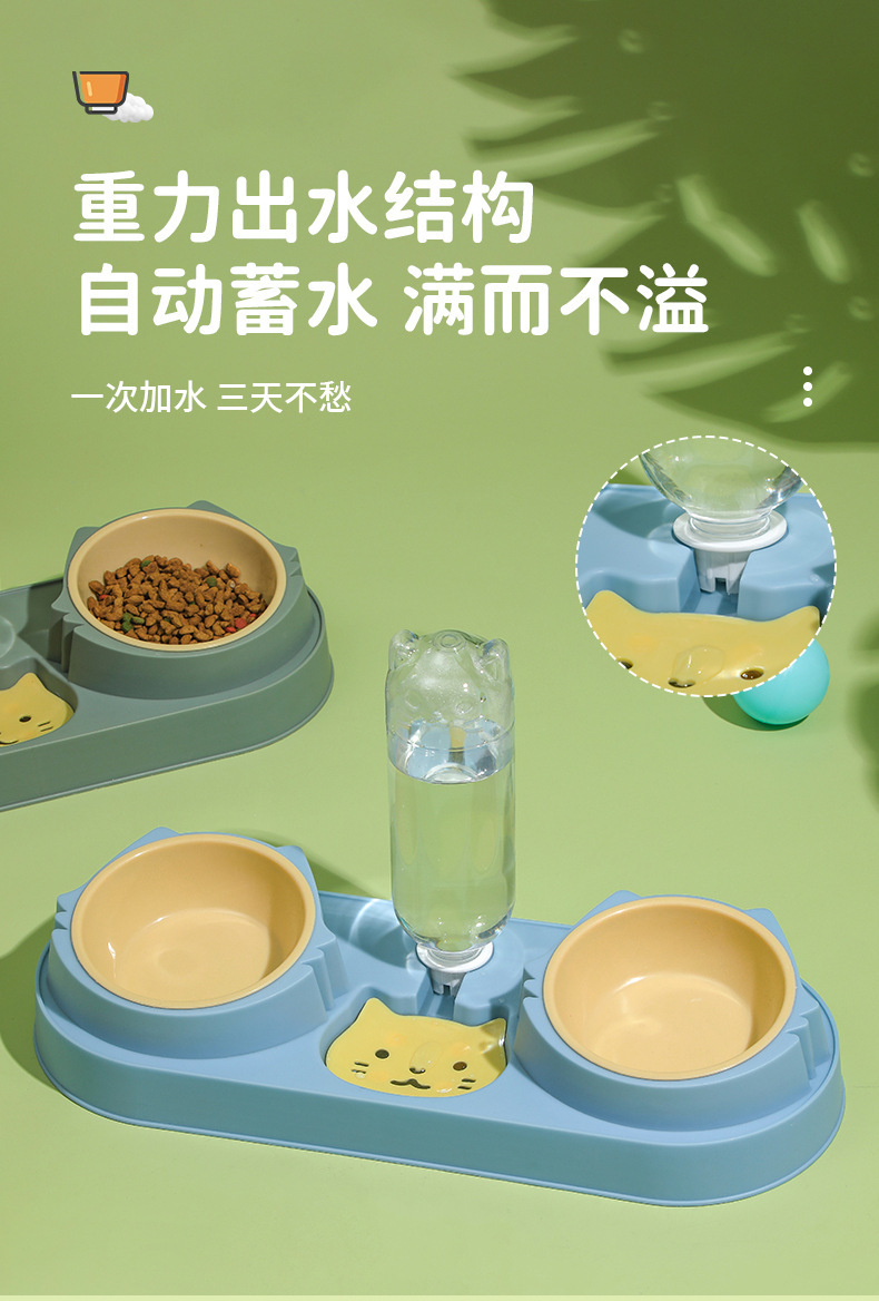 쓰리인원 먹이 고양이 사발 다기능 애완동물 사료 사발 자동 음료수 디스펜서 건식 및 습식 사료 사발 기울기 목 보호 사발