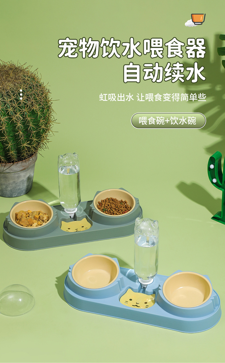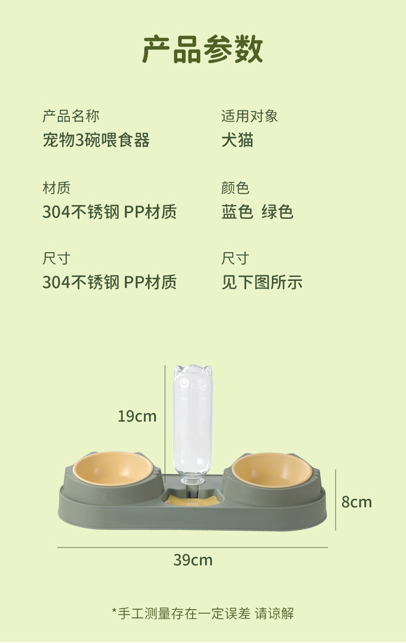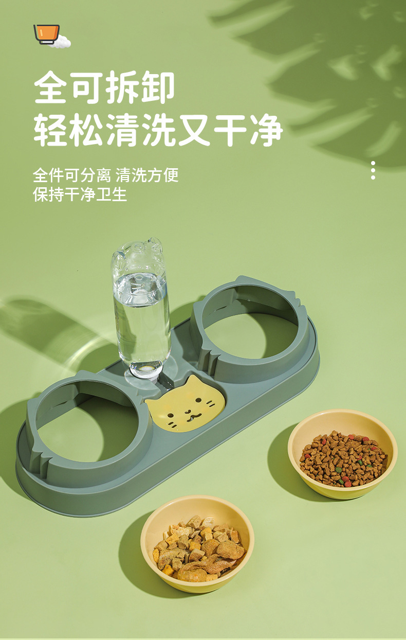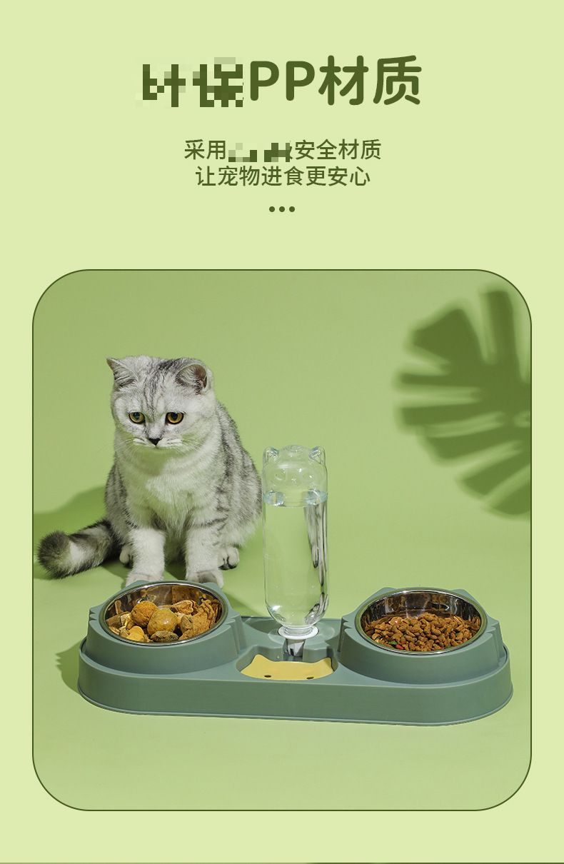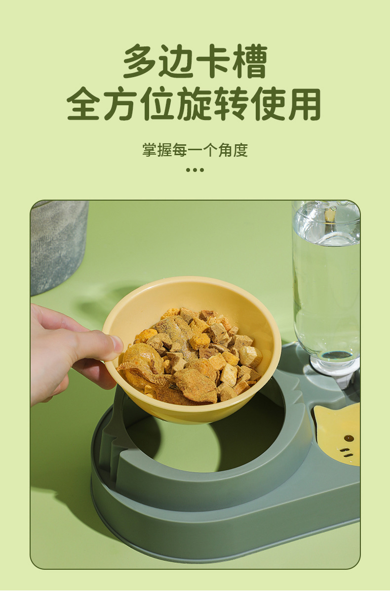 쓰리인원 먹이 고양이 사발 다기능 애완동물 사료 사발 자동 음료수 디스펜서 건식 및 습식 사료 사발 기울기 목 보호 사발