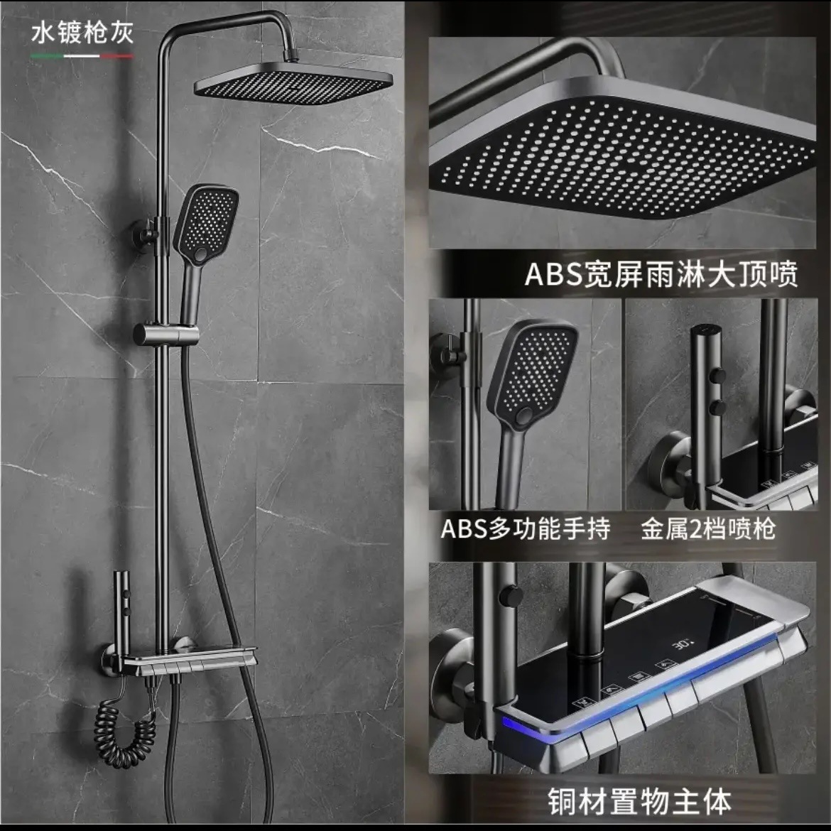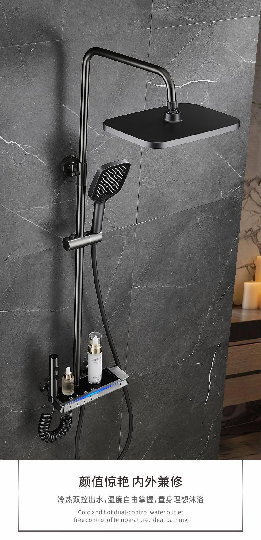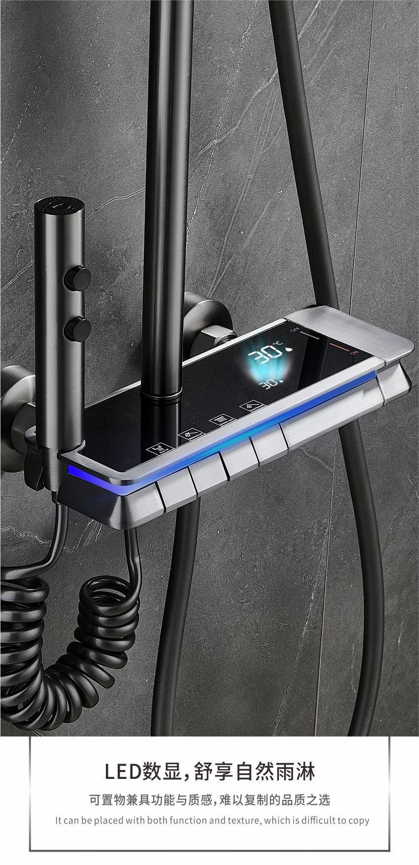 가압 샤워 헤드 세트 가정용 지능형 디지털 디스플레이 목욕 수도꼭지 욕실 비 목욕 가압 샤워 헤드