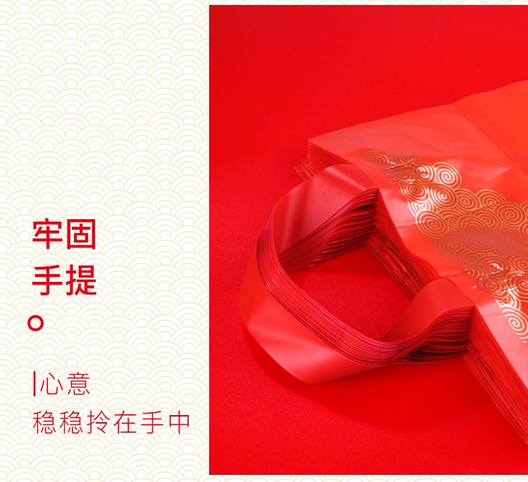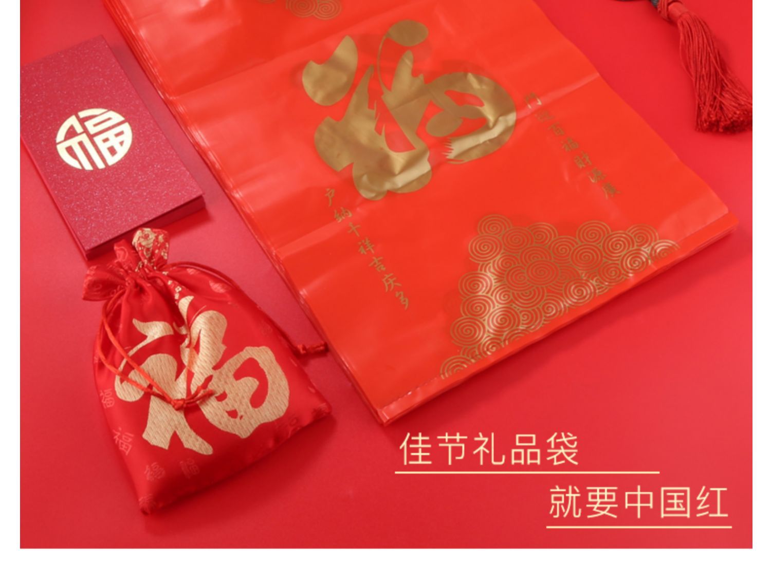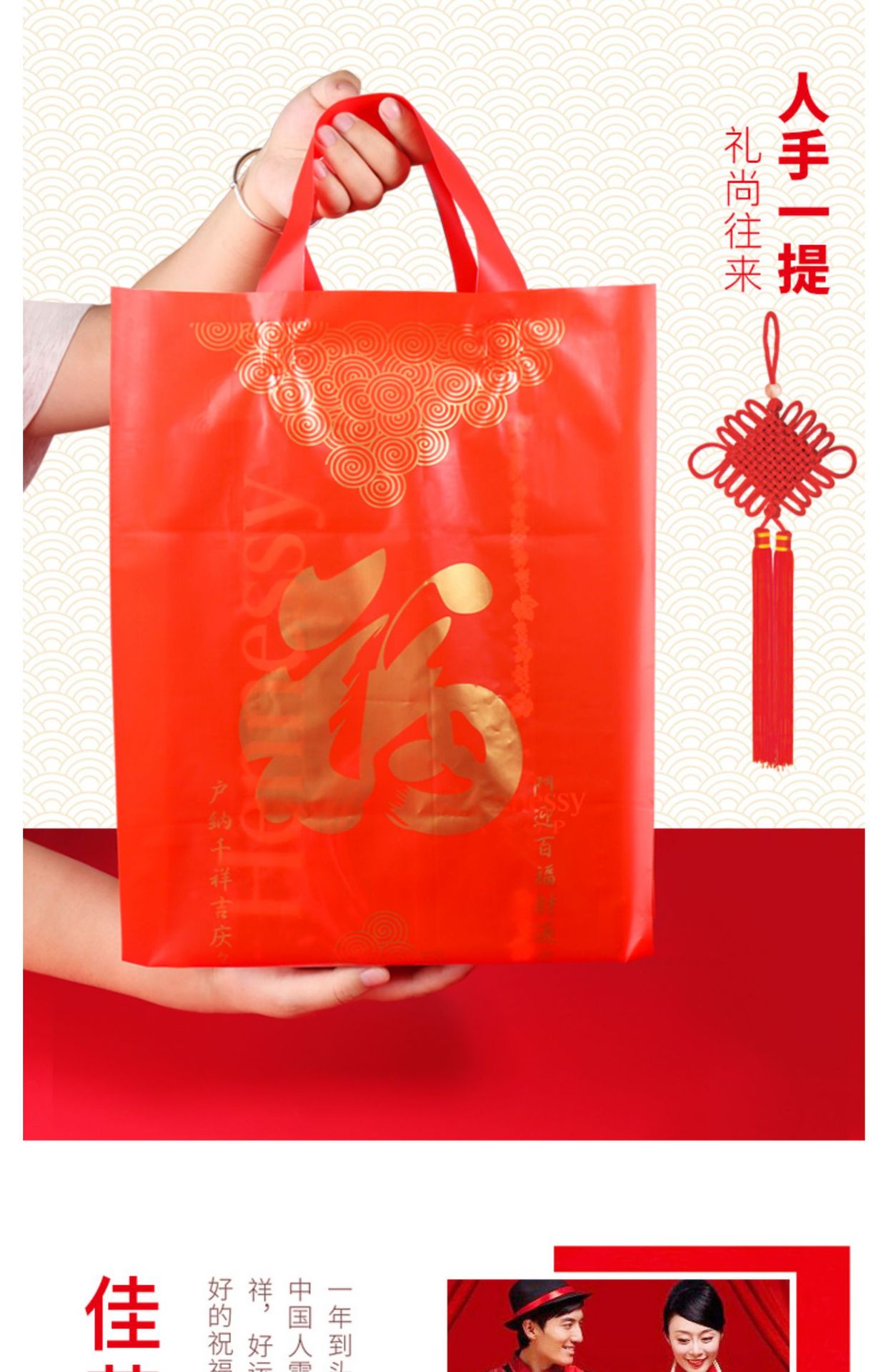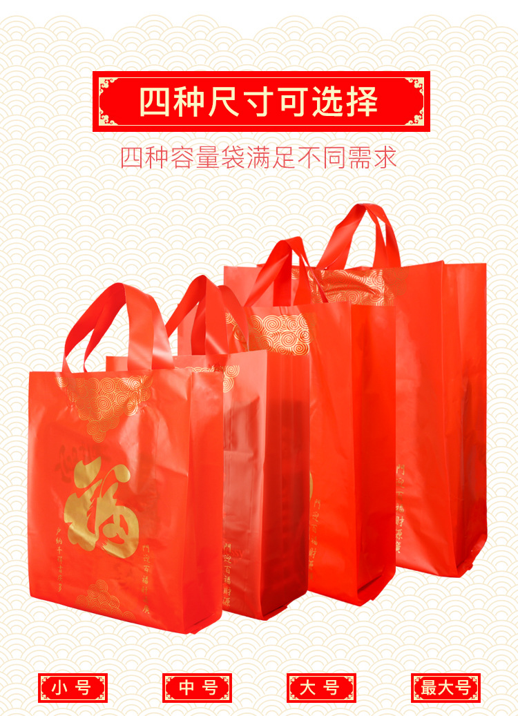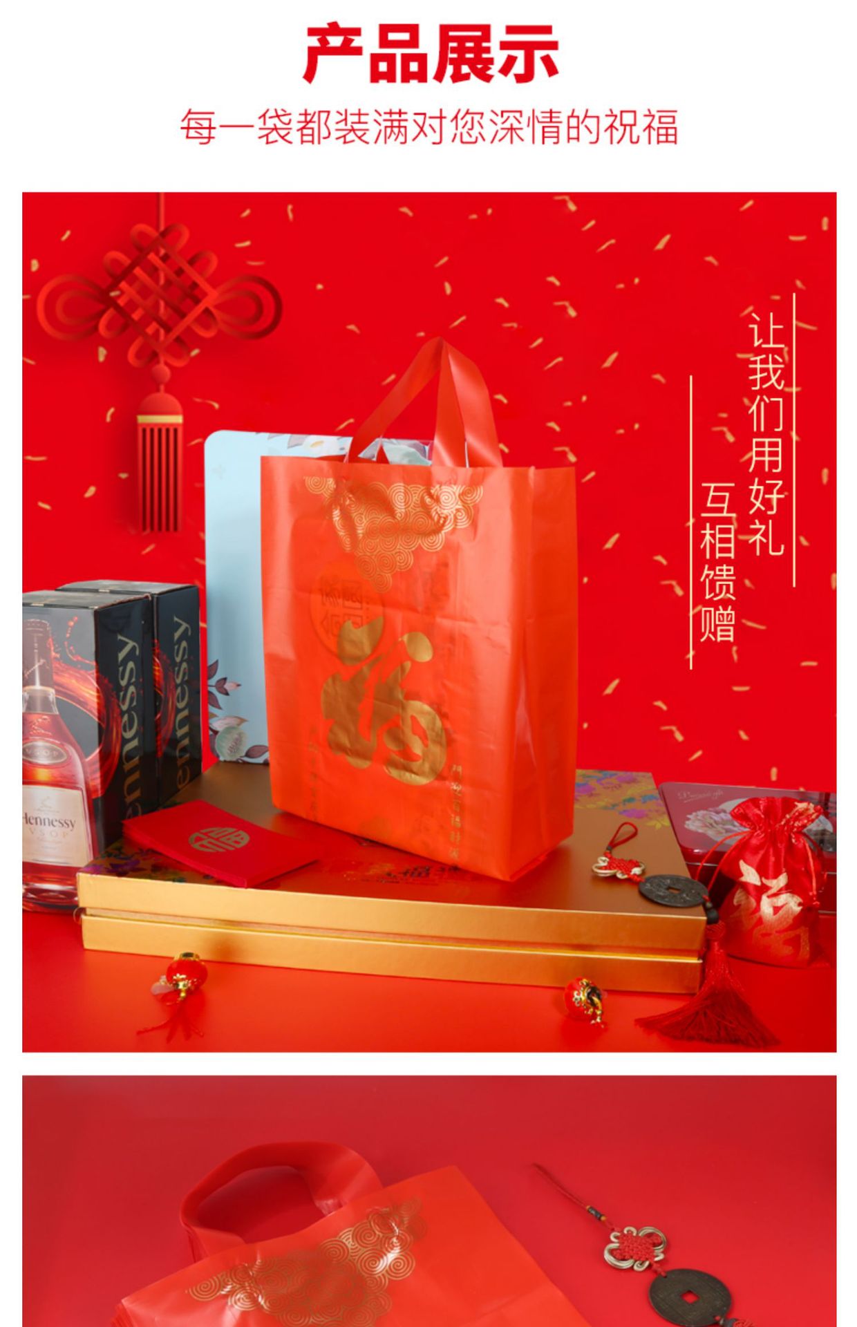 중국 스타일의 붉은색 축제 행운의 단어가 새겨진 명절 선물 가방, 슈퍼마켓 담배, 와인, 설탕 및 차 포장, 기념품 플라스틱 핸드백스토어 가기