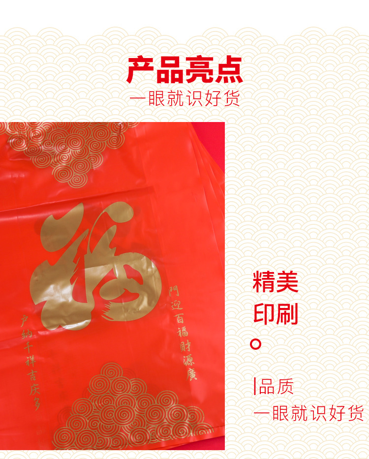 • 빨간색(새로운 푸 문자), 너비 40+ 측면 너비 12* 길이 50cm, 30개/팩