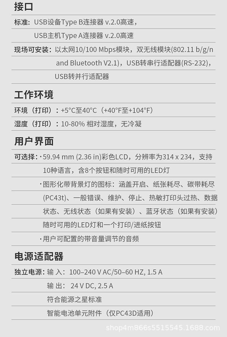 • PC43T 300DPI에는 USB 포트가 기본으로 제공되며 단종되었습니다.