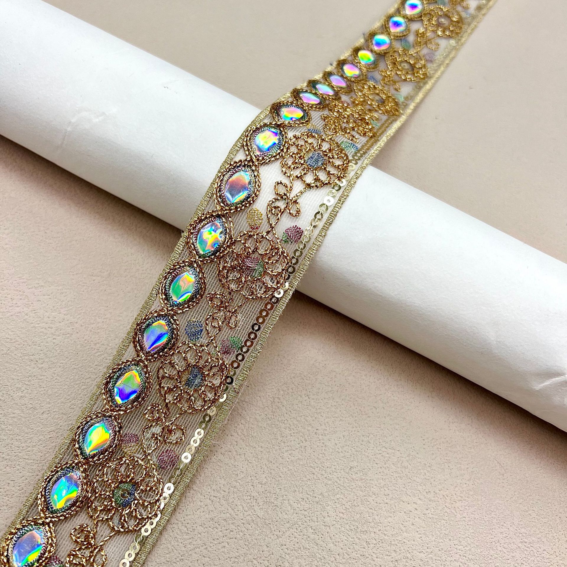 에스닉 스타일 컬러 실 렌즈 자수 레이스 4cm 골드 스트랜드 스팽글 내셔널 스타일 중국 의류 리본 의류 액세서리스토어 가기
