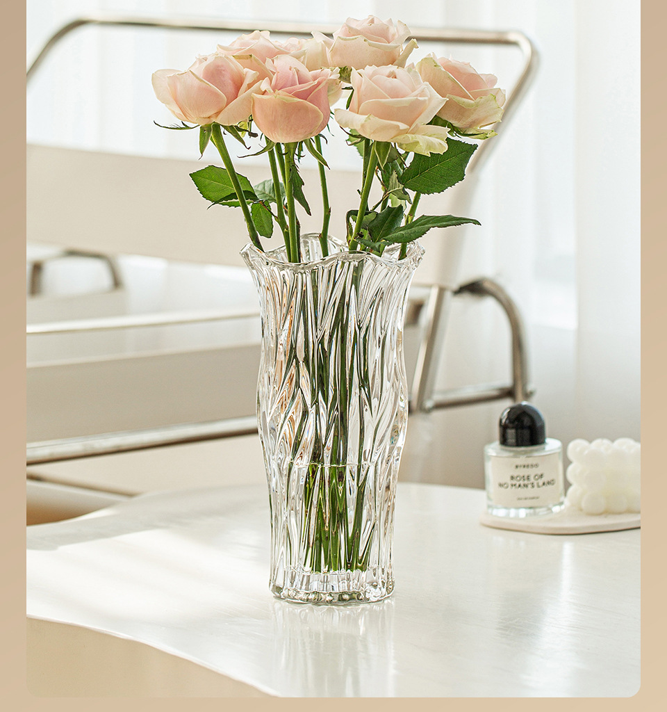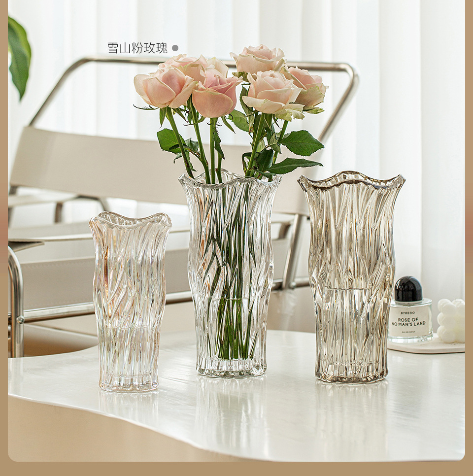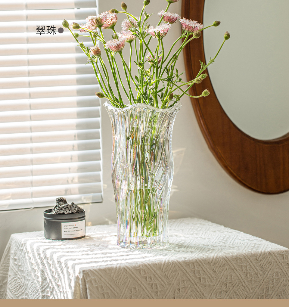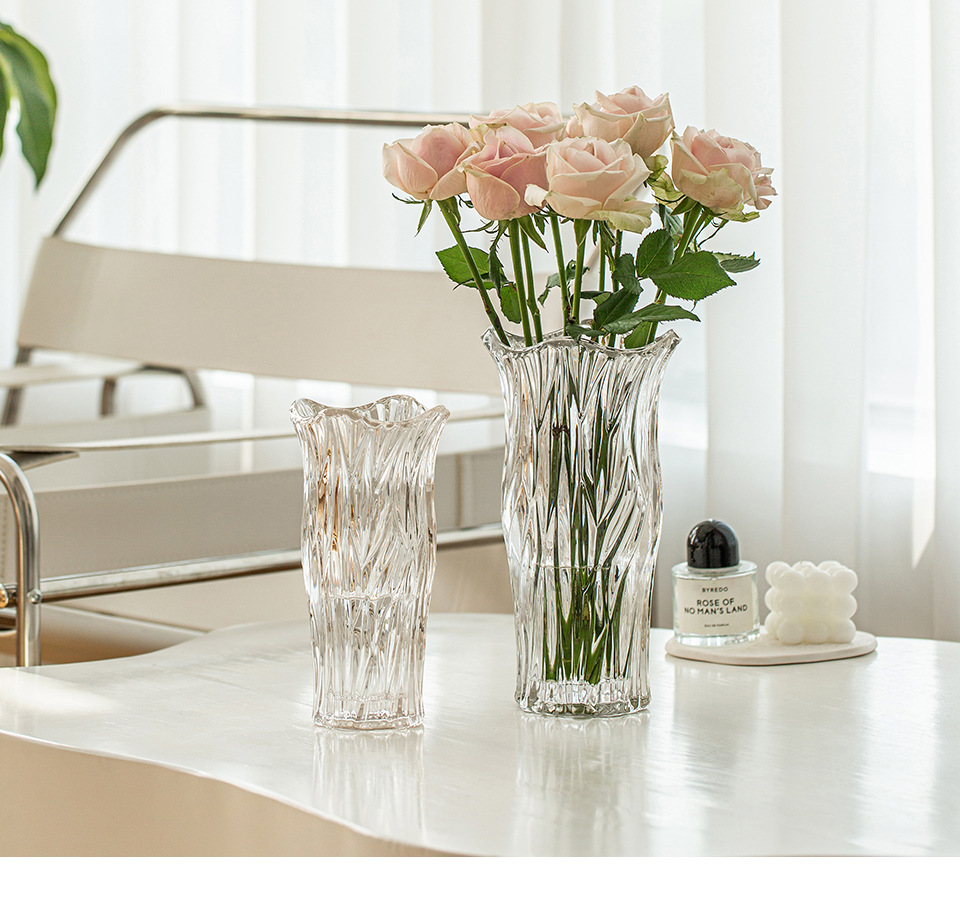 꽃병 장식품 거실 꽃꽂이 유리 투명 물 높이기 장미 백합 고급 감각 꽃 빛 럭셔리 틈새 크리스탈 대형