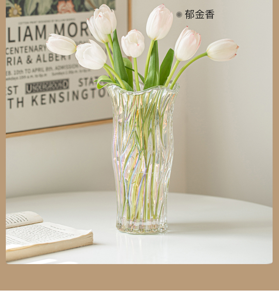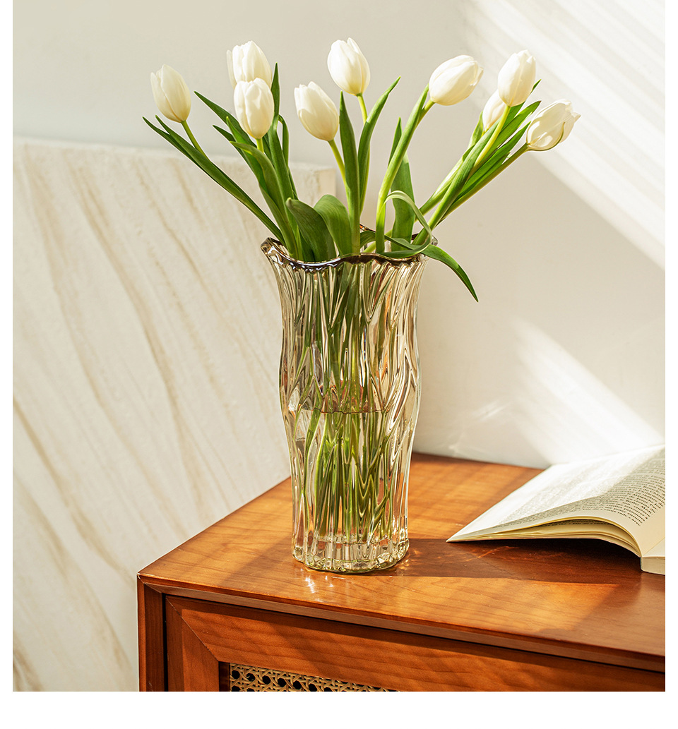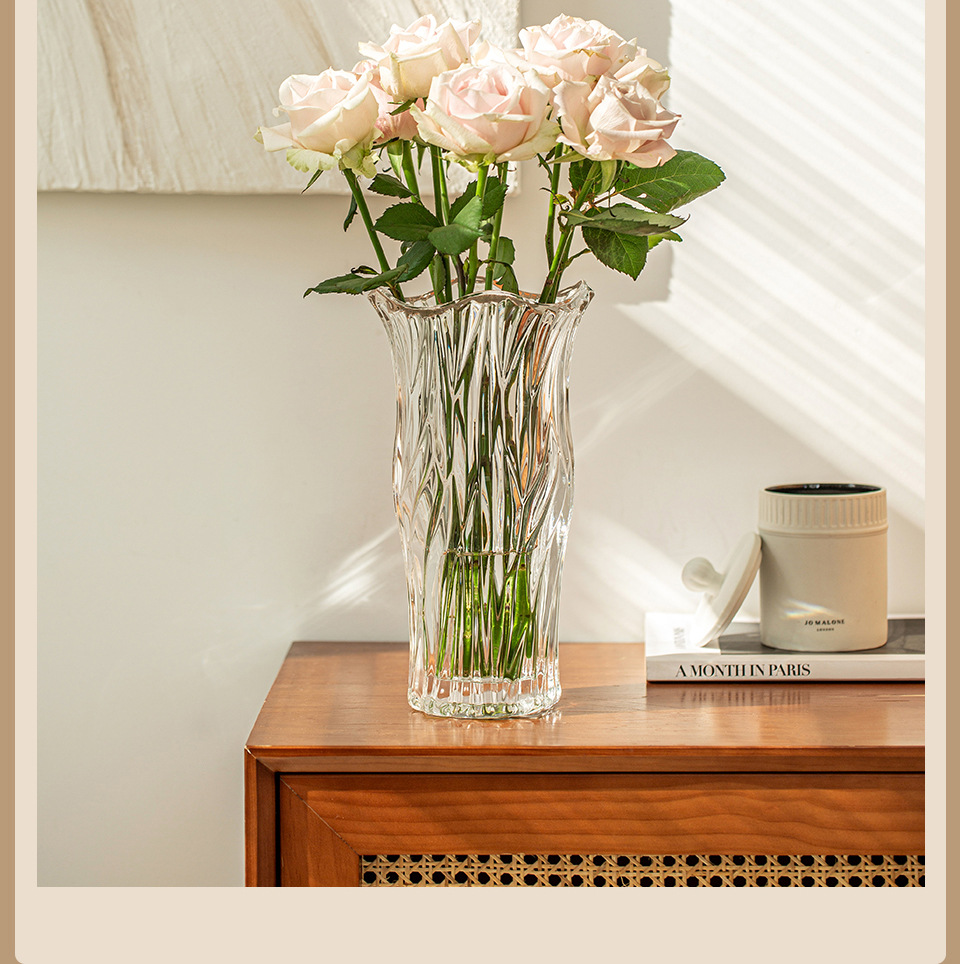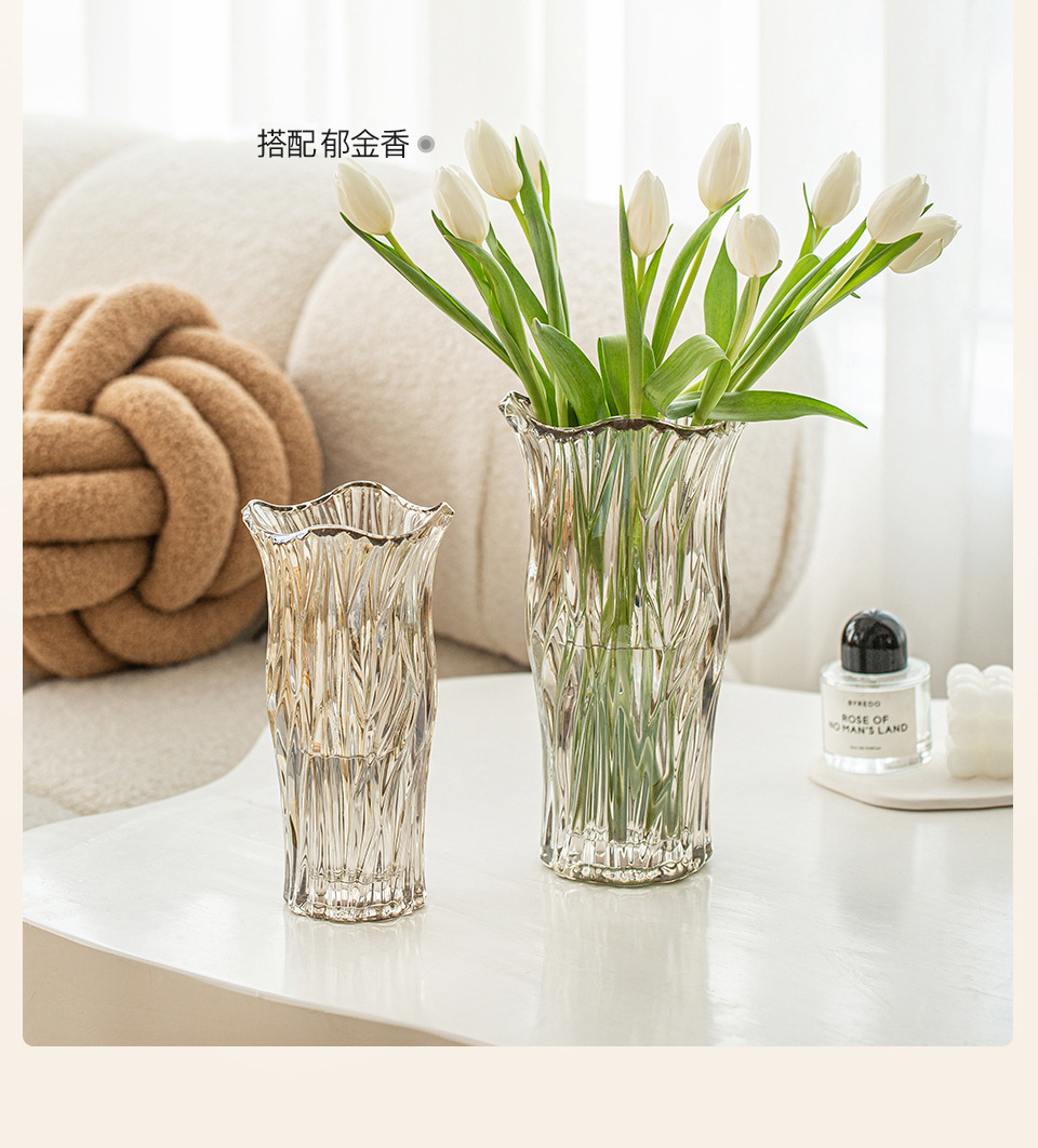 꽃병 장식품 거실 꽃꽂이 유리 투명 물 높이기 장미 백합 고급 감각 꽃 빛 럭셔리 틈새 크리스탈 대형
