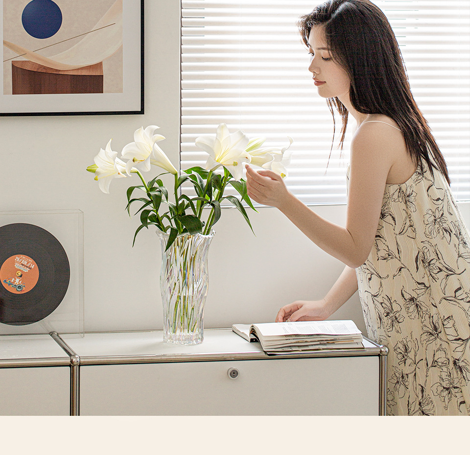 꽃병 장식품 거실 꽃꽂이 유리 투명 물 높이기 장미 백합 고급 감각 꽃 빛 럭셔리 틈새 크리스탈 대형스토어 가기