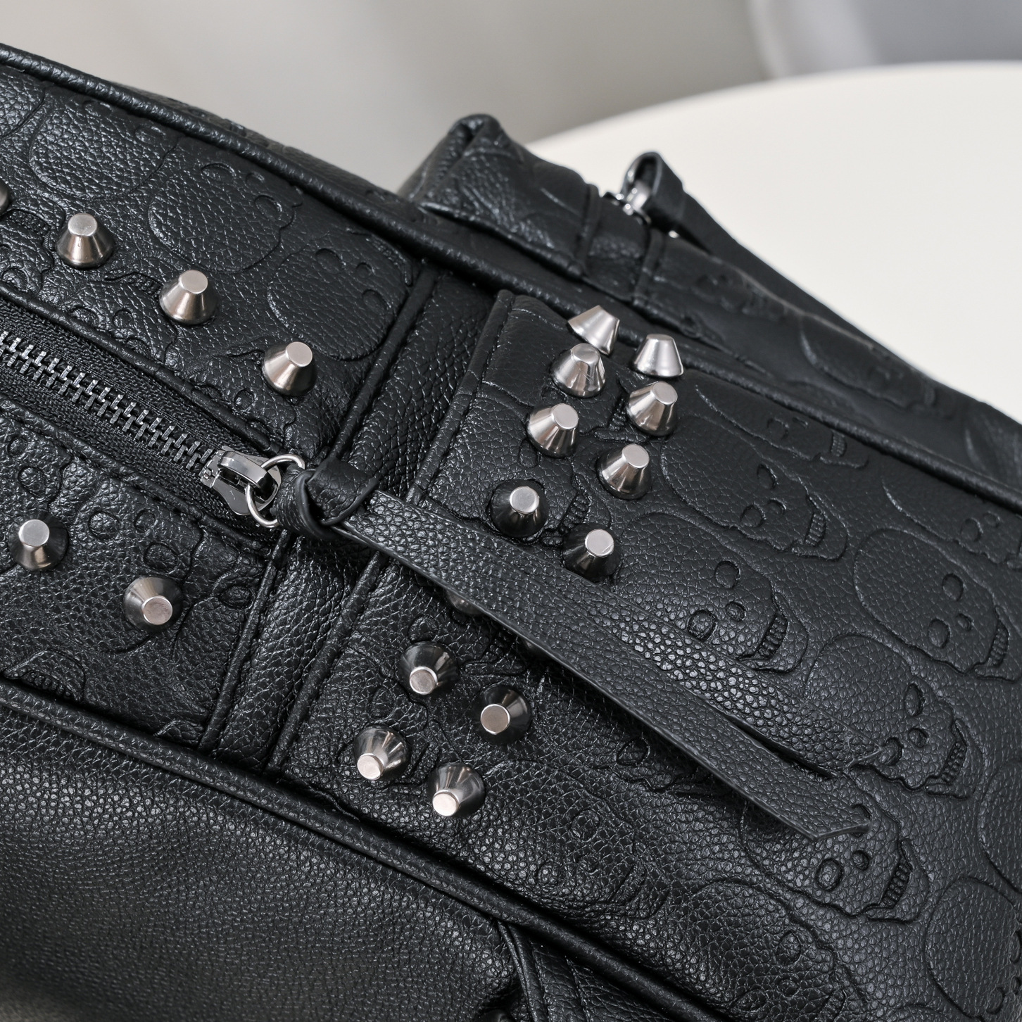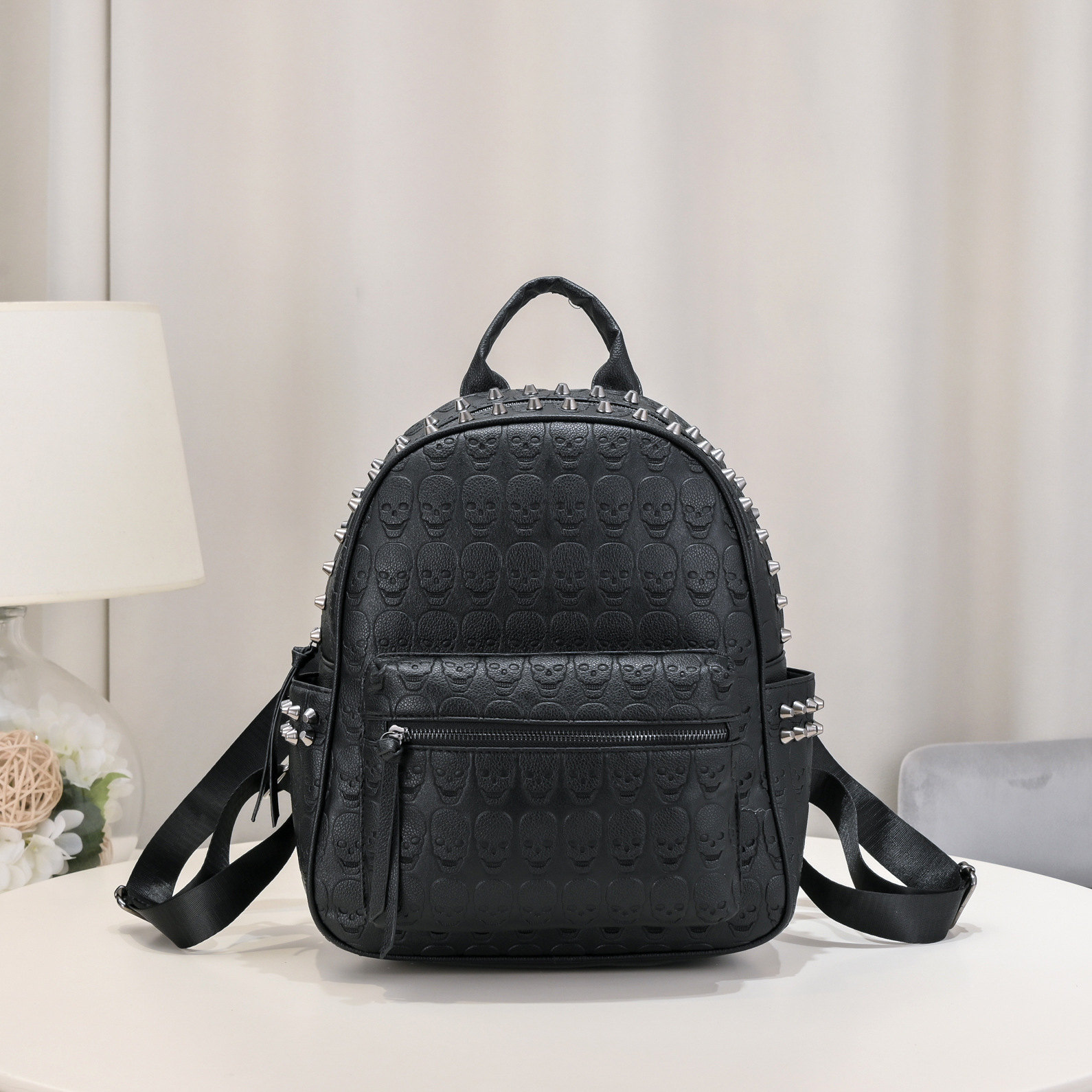 2023 배낭 대용량 남여 공용 유행 가방 해골 리벳 부드러운 가죽 캐주얼 통근 배낭