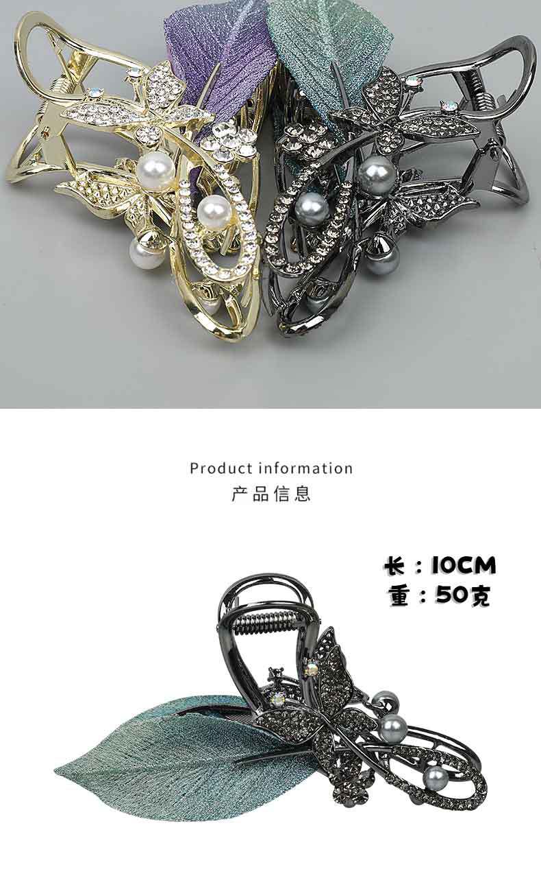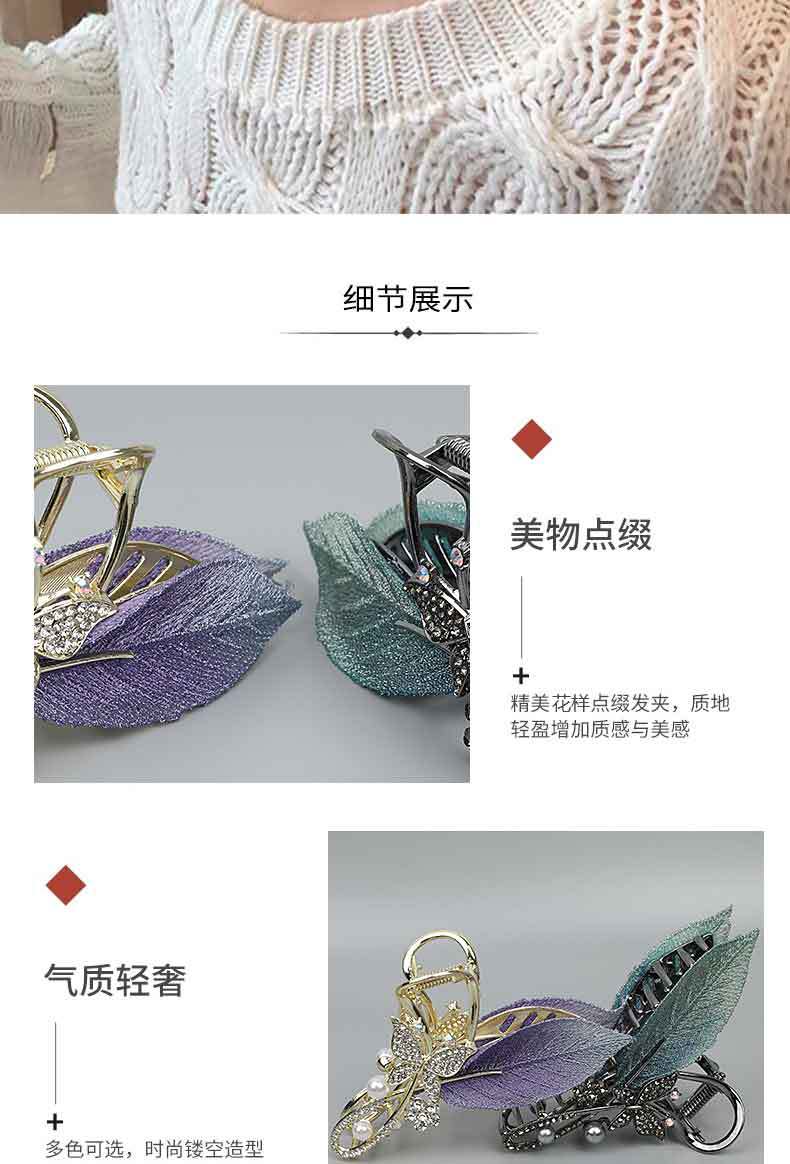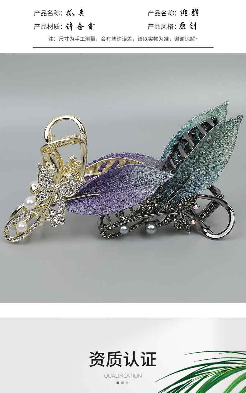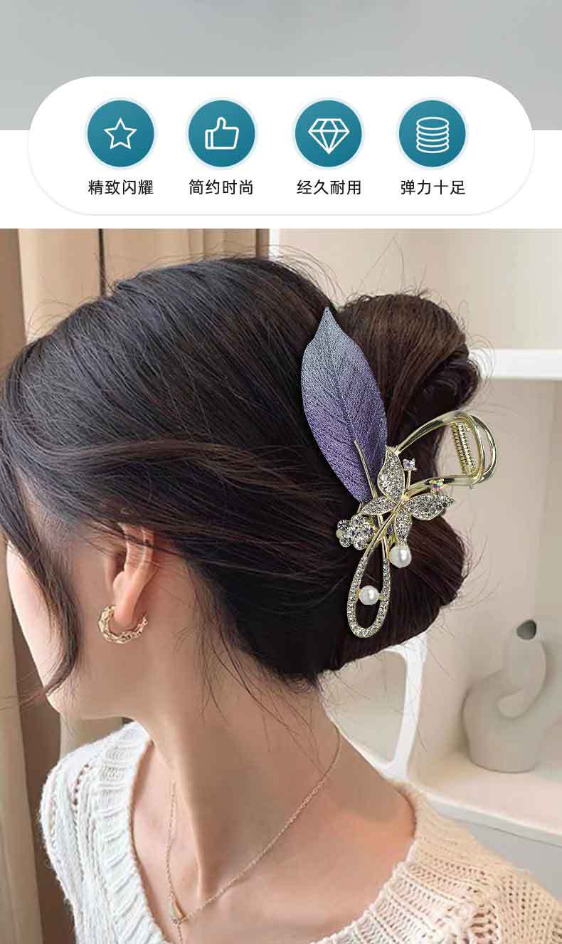 자수 잎 대형 클립, 고급 새로운 중국 스타일 다이아몬드가 박힌 진주 잎 머리핀, 여성용 머리핀, 상어 클립 헤어 액세서리스토어 가기