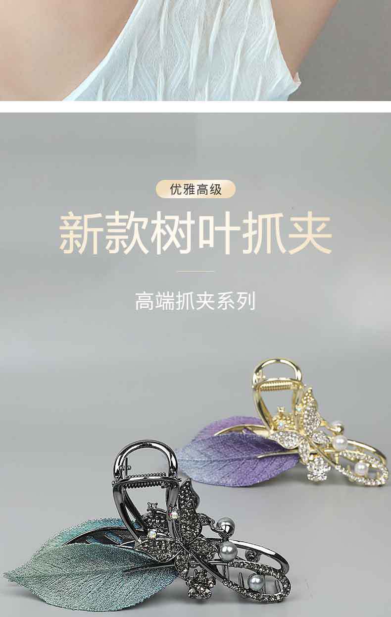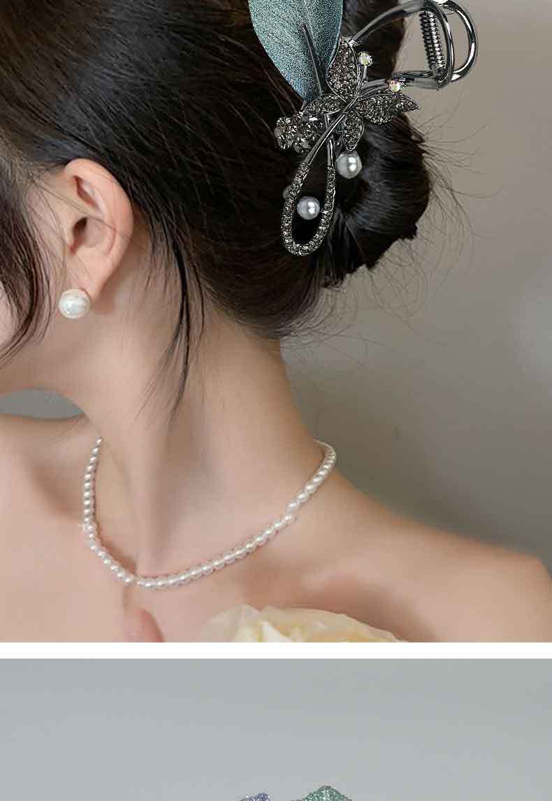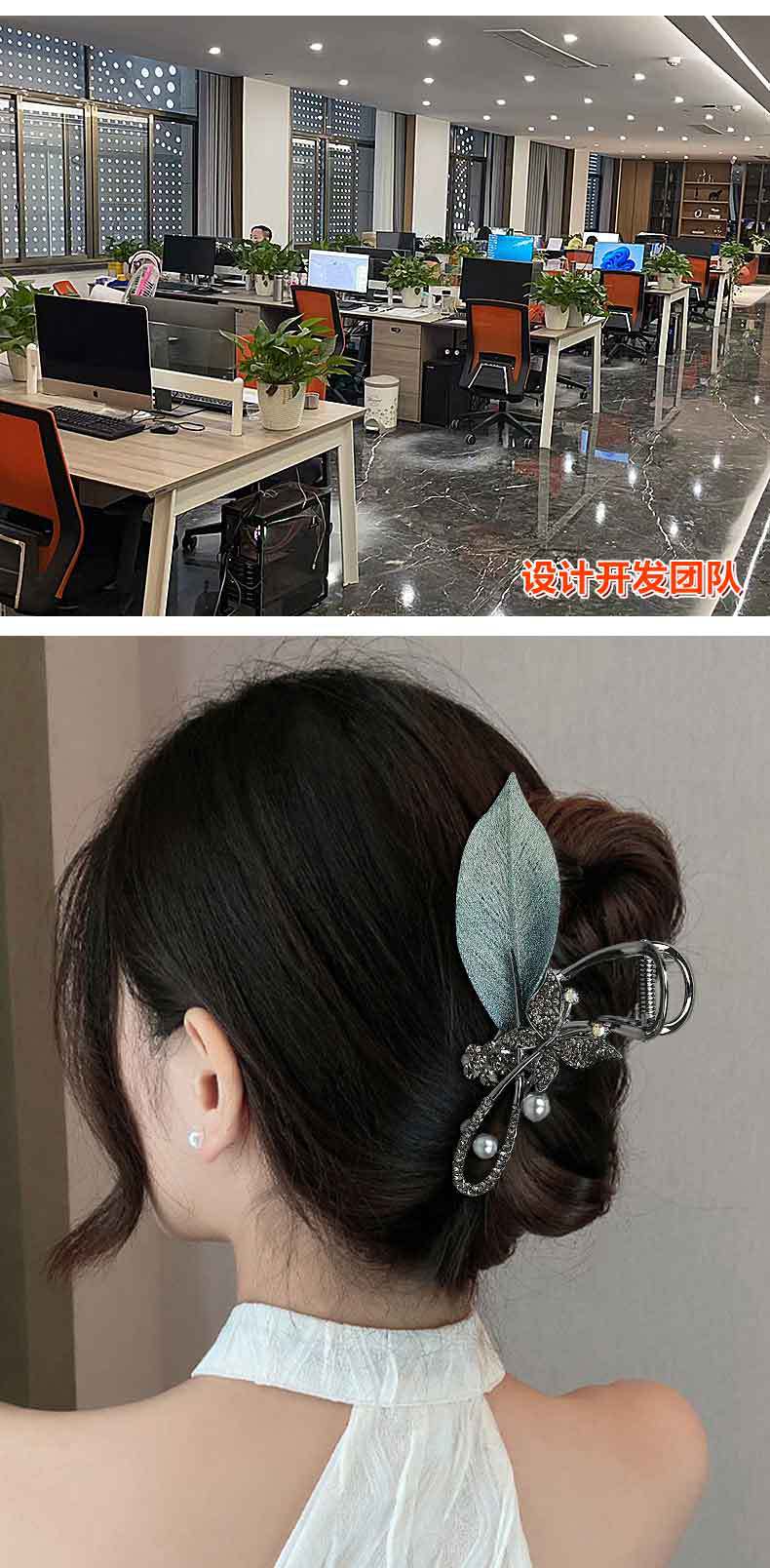 자수 잎 대형 클립, 고급 새로운 중국 스타일 다이아몬드가 박힌 진주 잎 머리핀, 여성용 머리핀, 상어 클립 헤어 액세서리스토어 가기