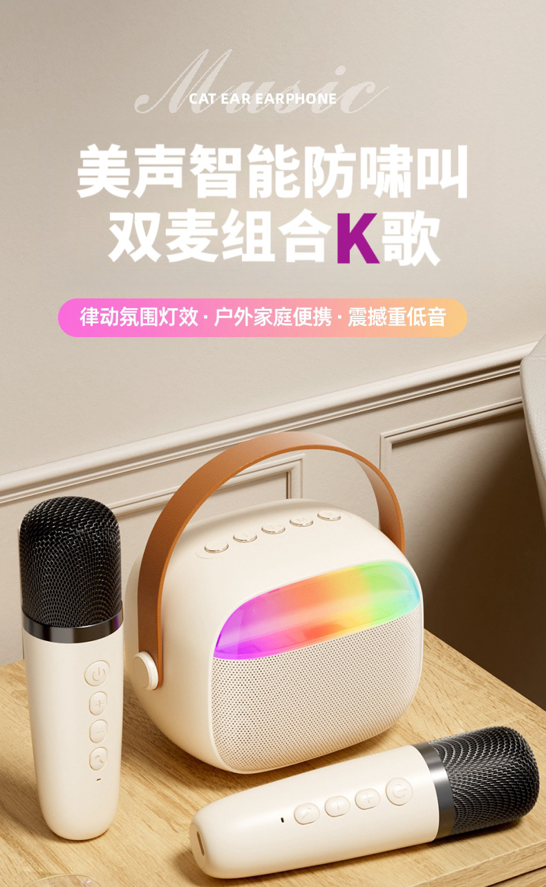 K30 무선 블루투스 스피커 다채로운 분위기 조명 듀얼 마이크 K 노래 오디오 마이크 올인원 야외 휴대용스토어 가기