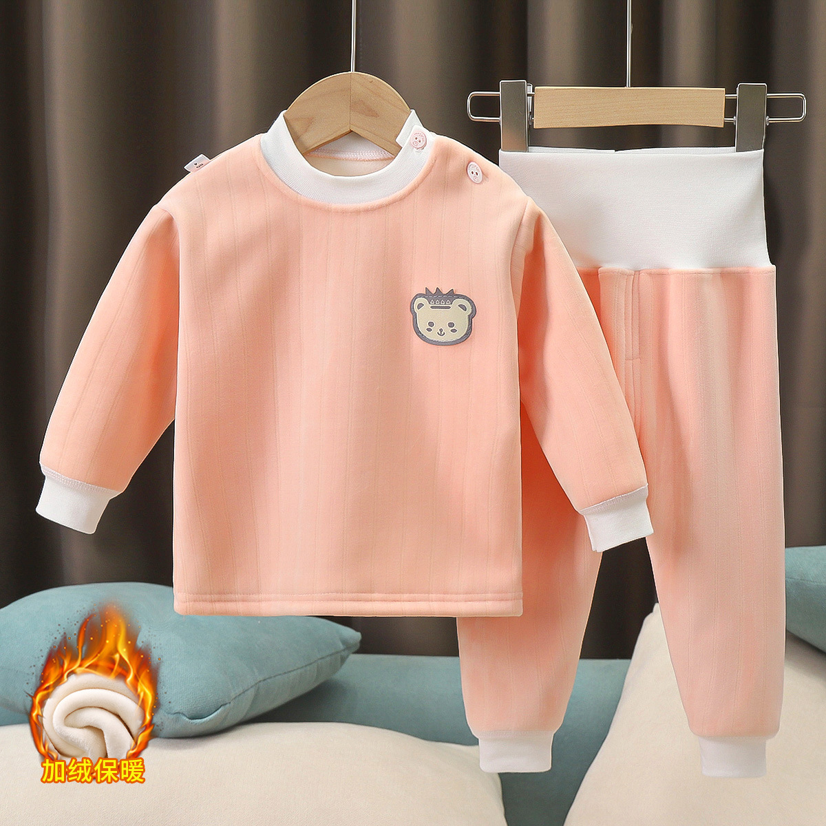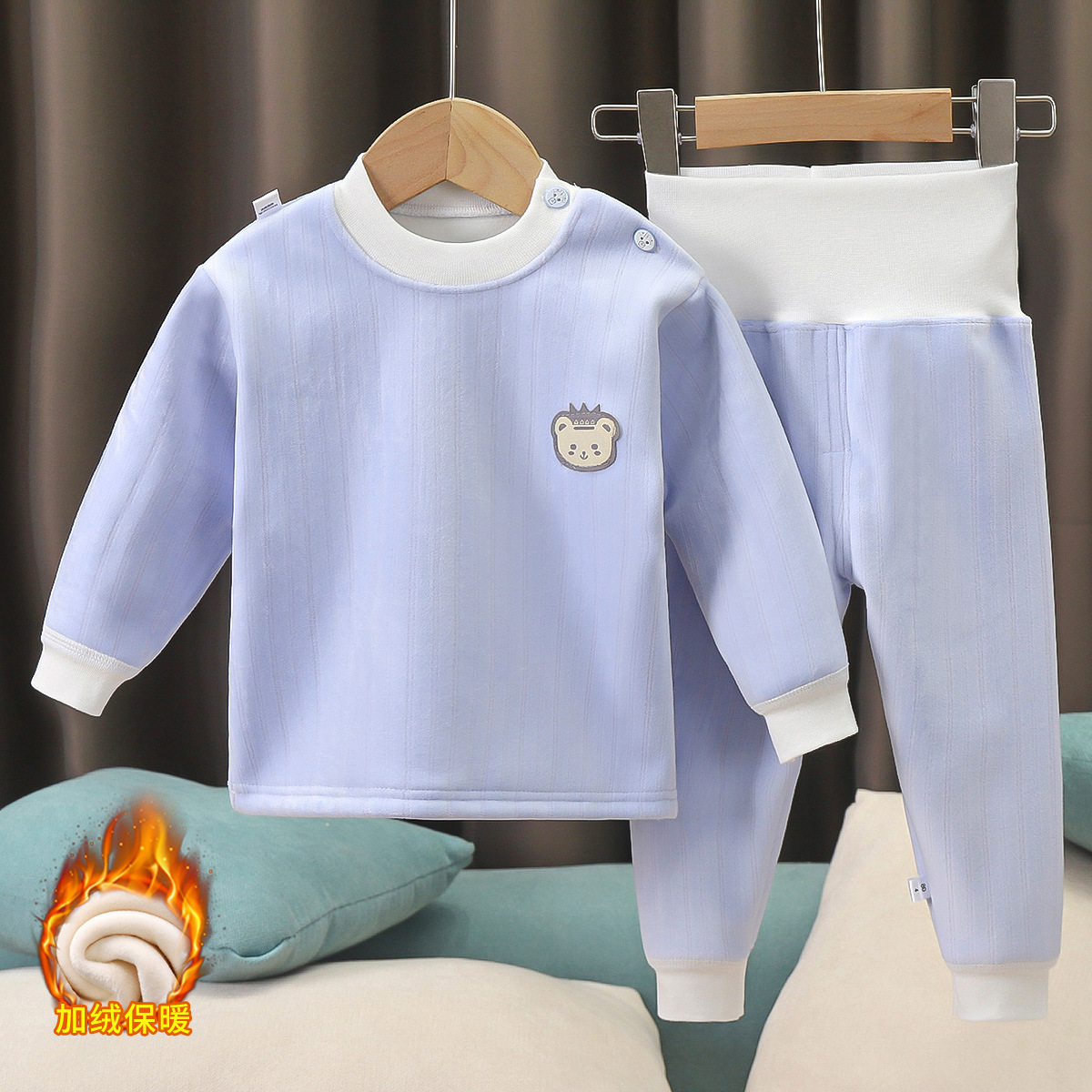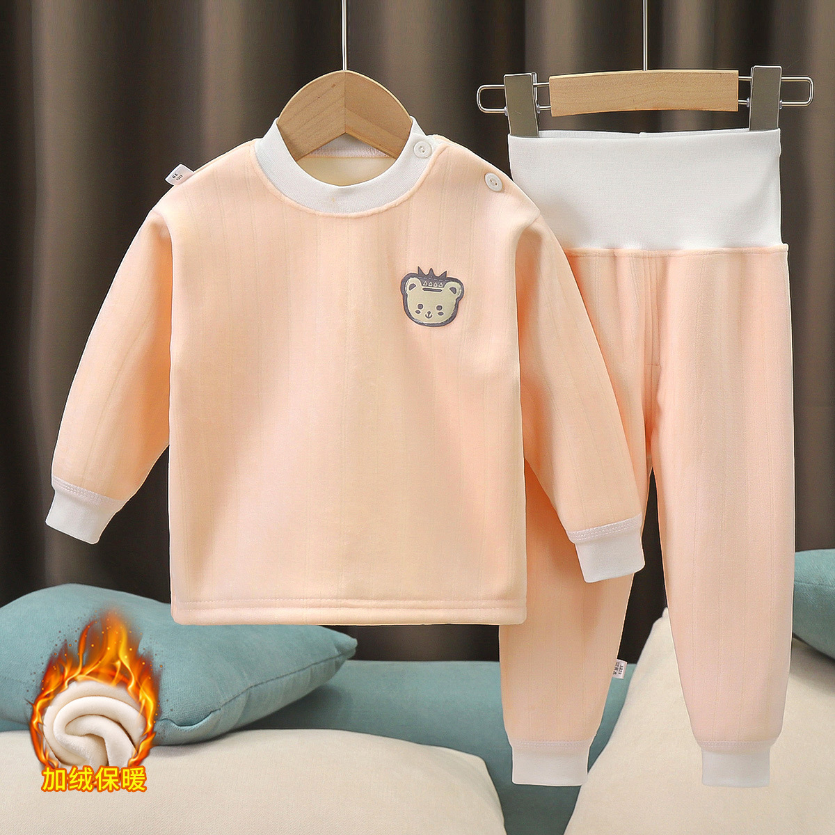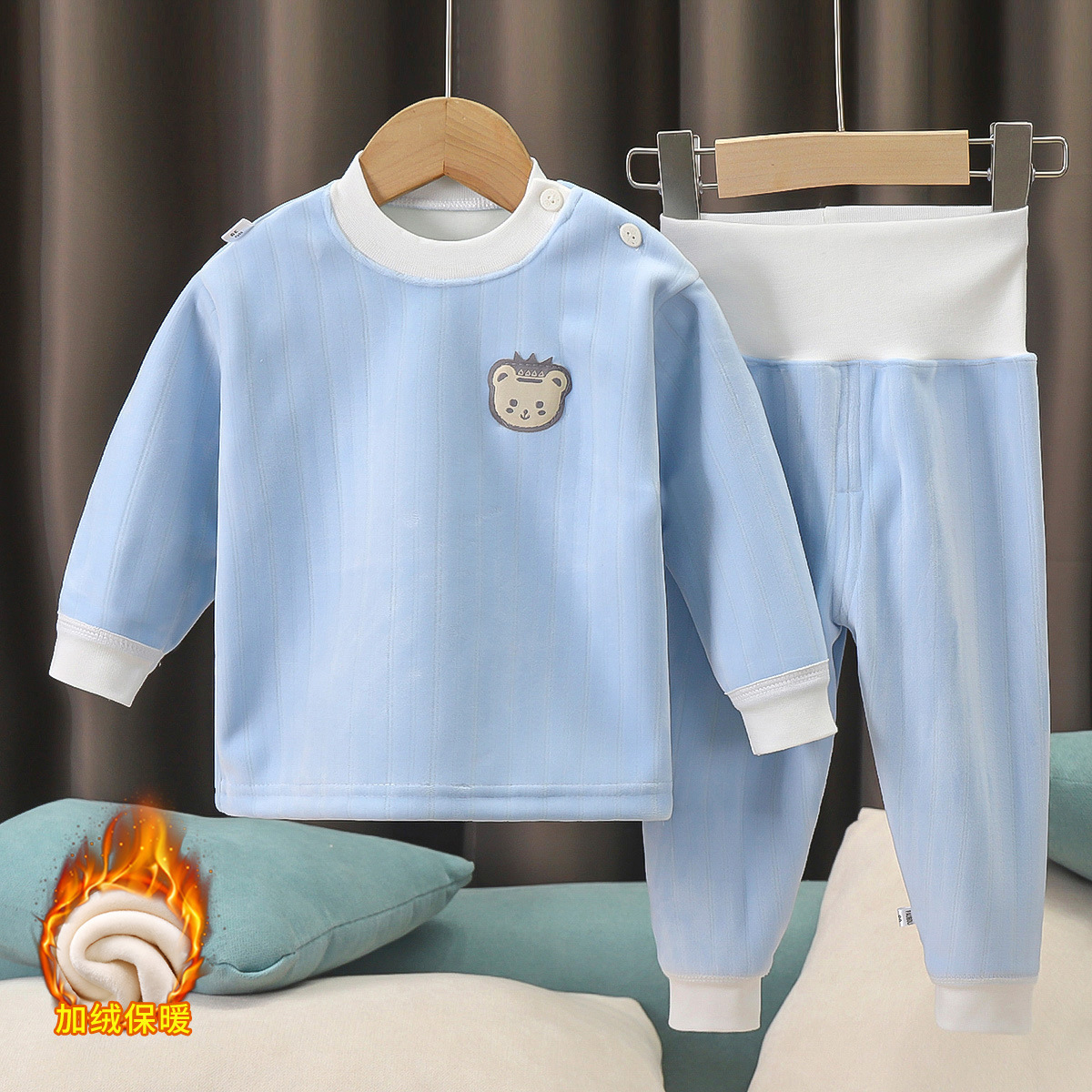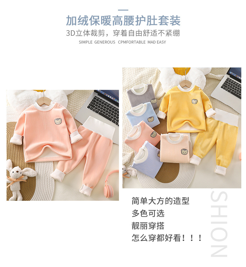 아기 플러스 벨벳 세트 어린이 높은 허리 열 속옷 아기 가을 옷 가을 바지 봄과 가을 남성과 여성의 잠옷 가을과 겨울