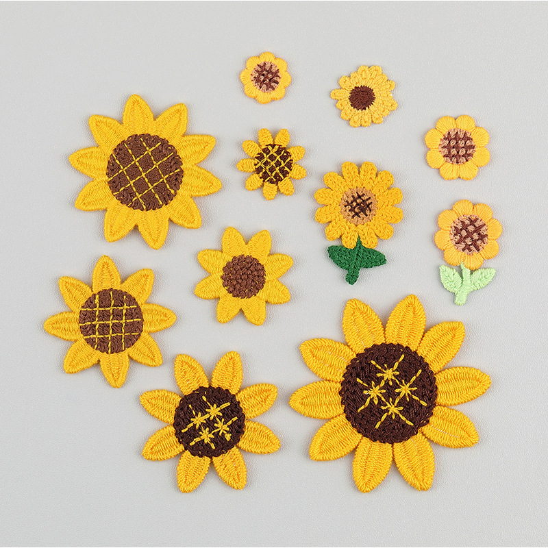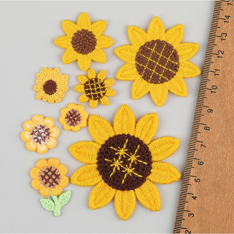 해바라기 자수 패치, 침대 시트, 이불 커버, 커튼, 꽃무늬 가방, 의류, 모자, 바지, 양말, 휴대폰 케이스 장식 패치