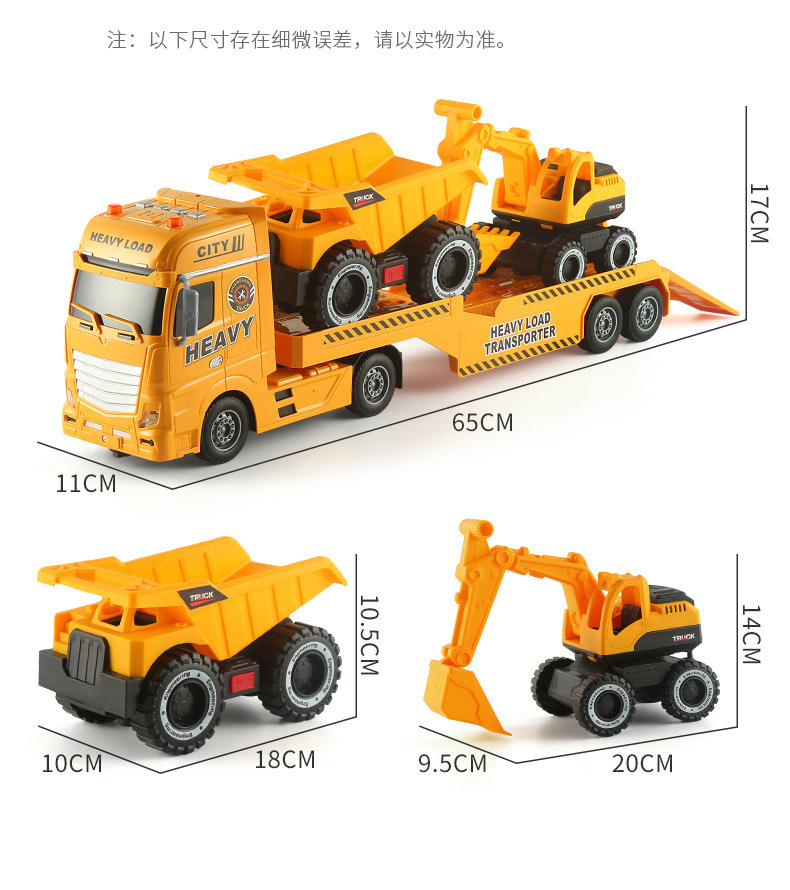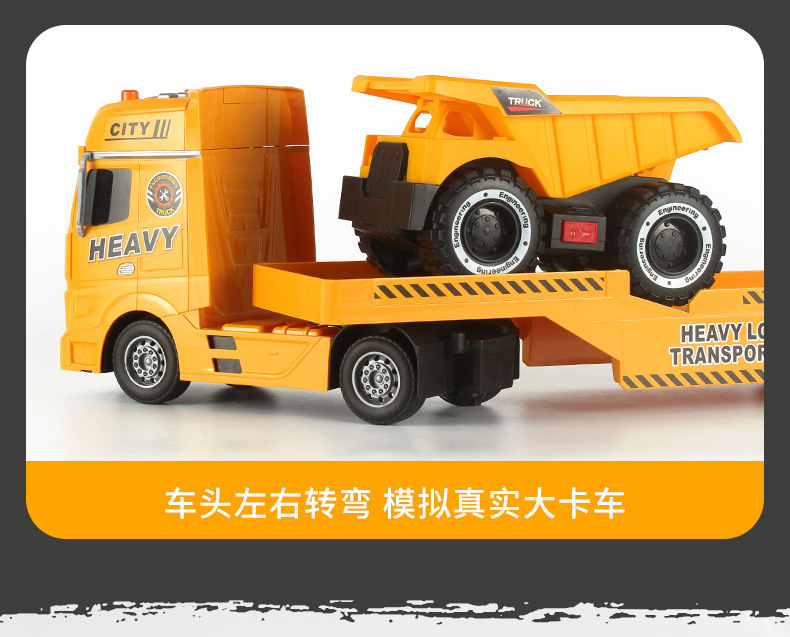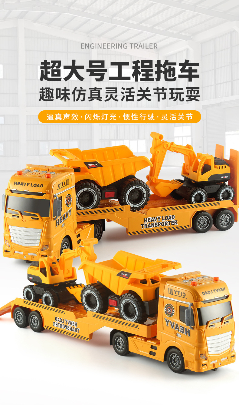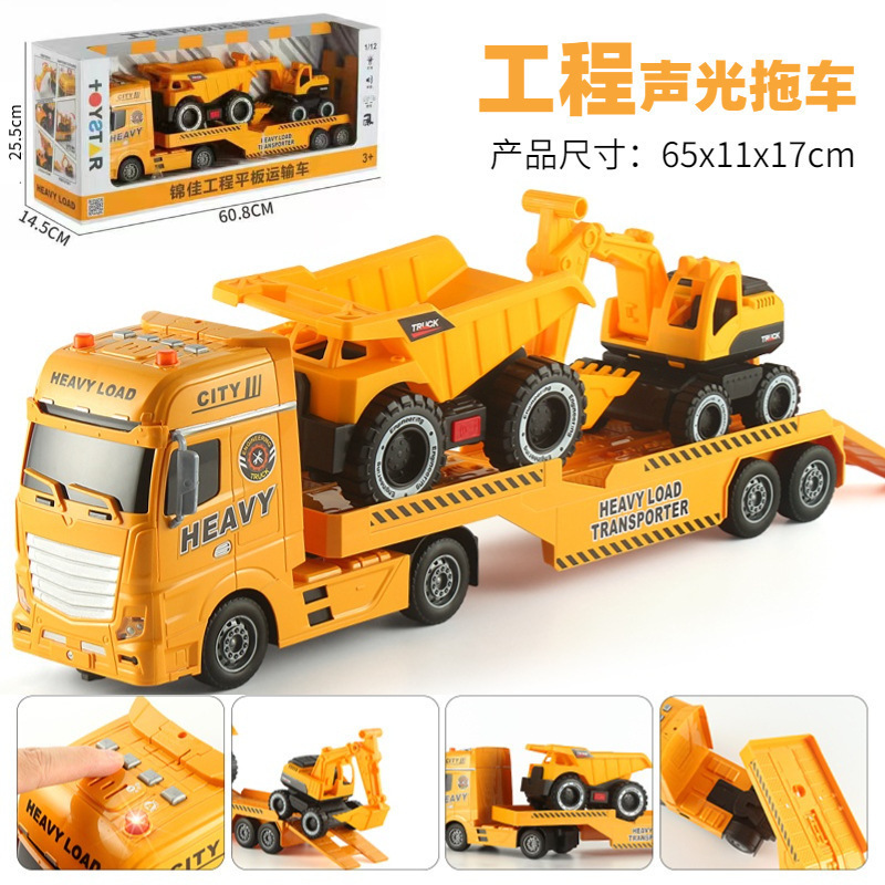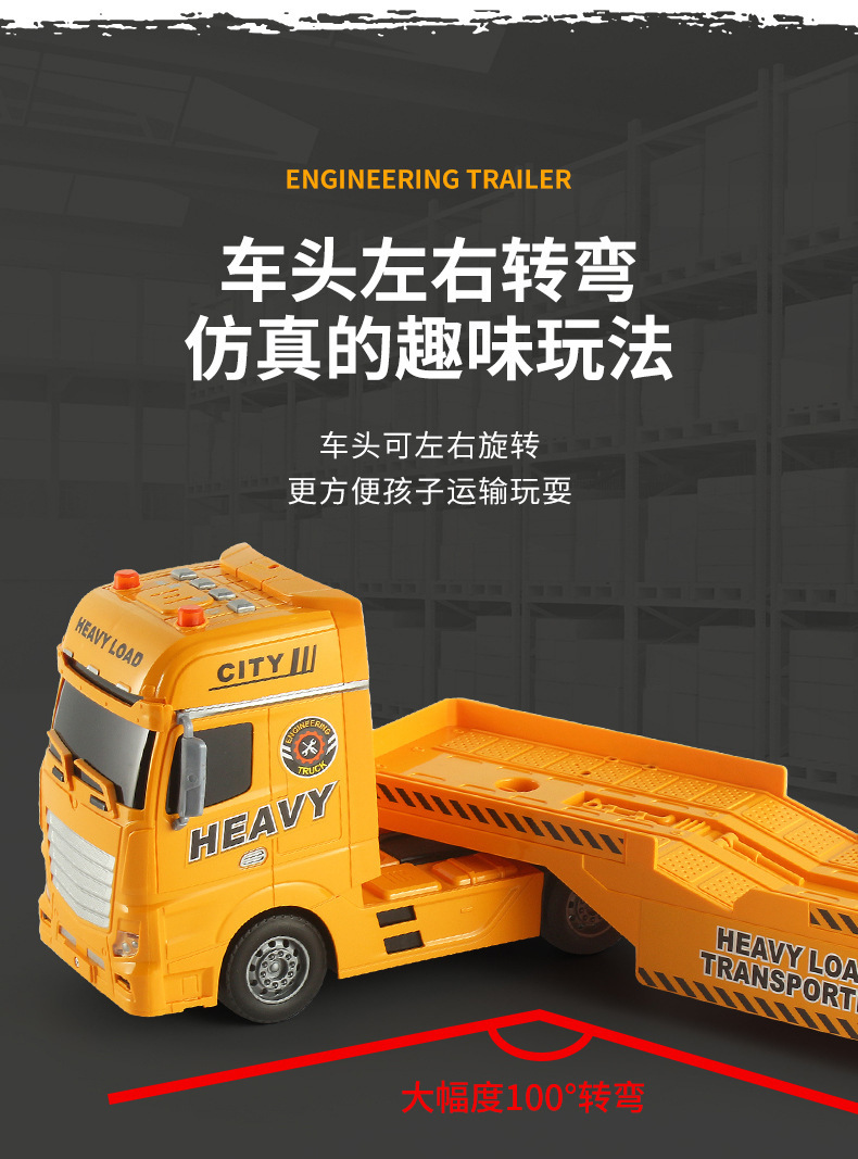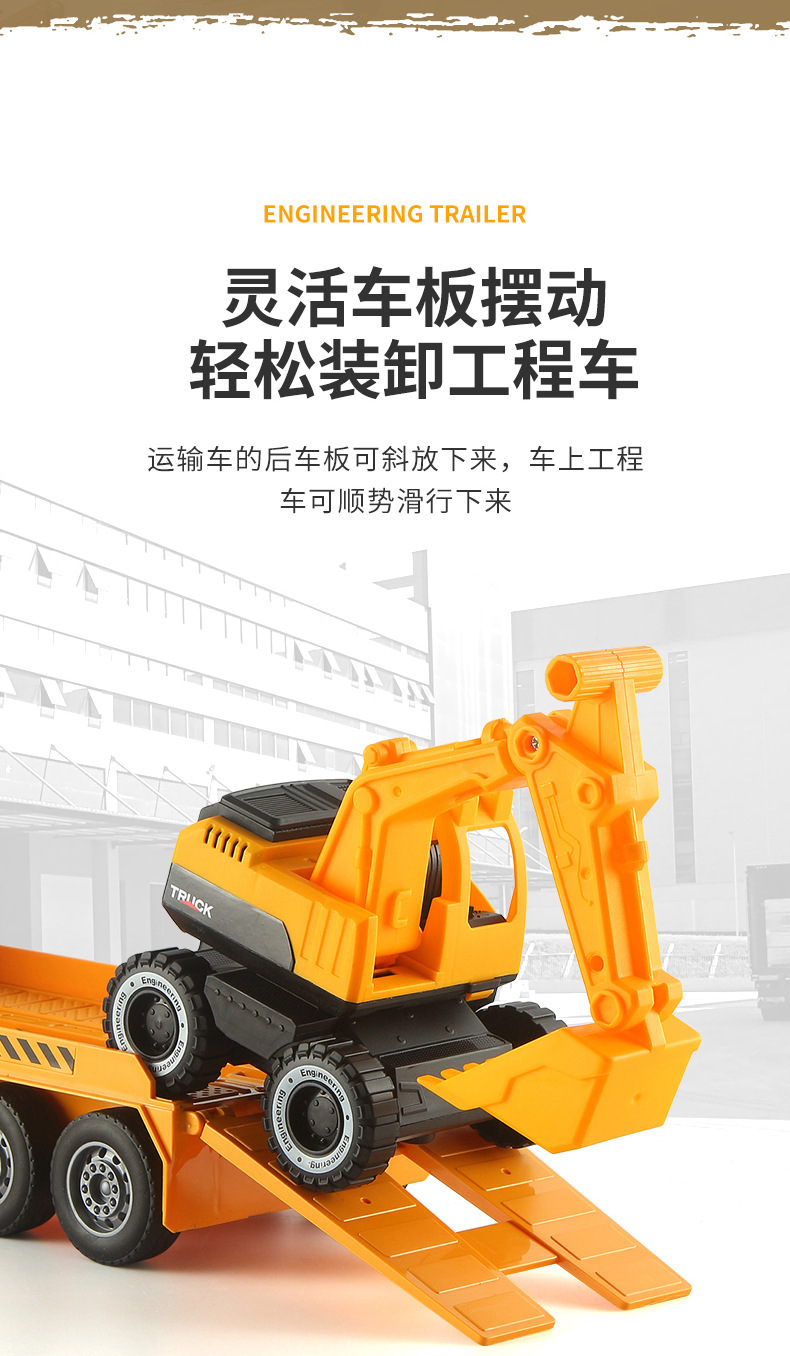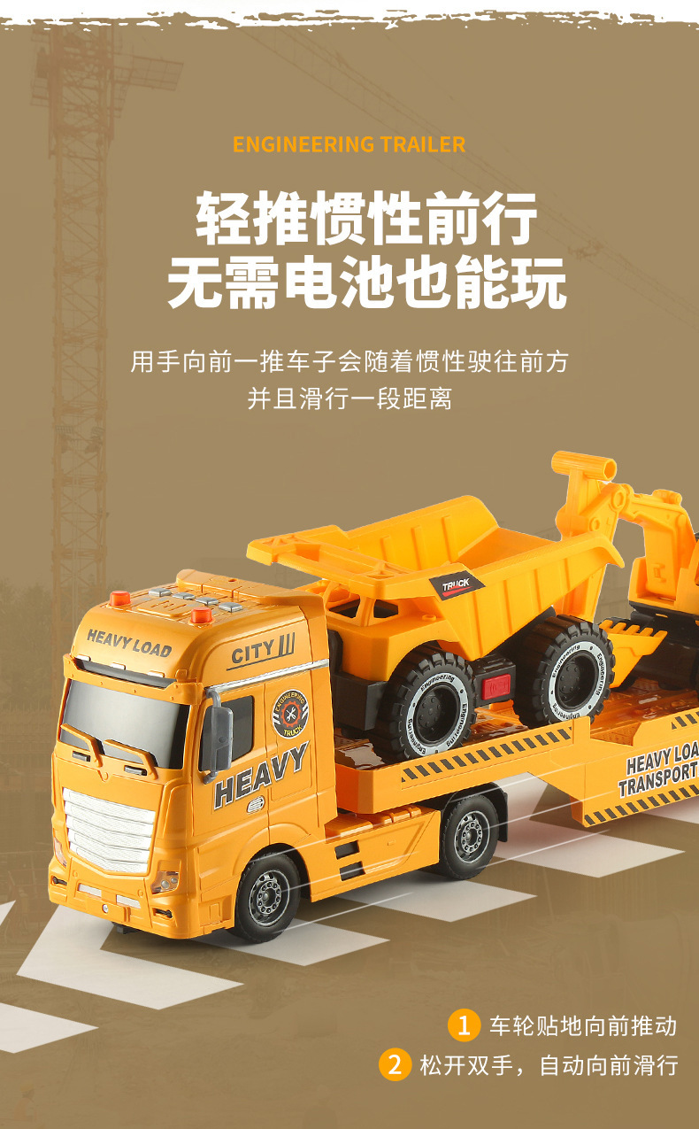 대형 엔지니어링 운송 트레일러 장난감 어린이 관성 공학 차량 어린이 시뮬레이션 평판 트레일러 굴삭기스토어 가기