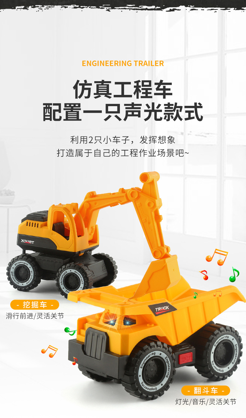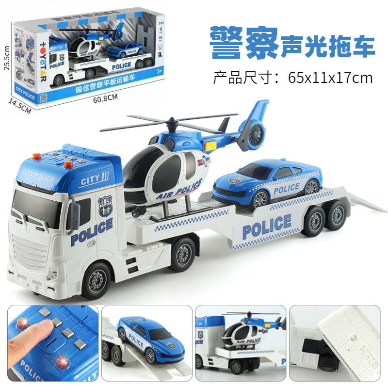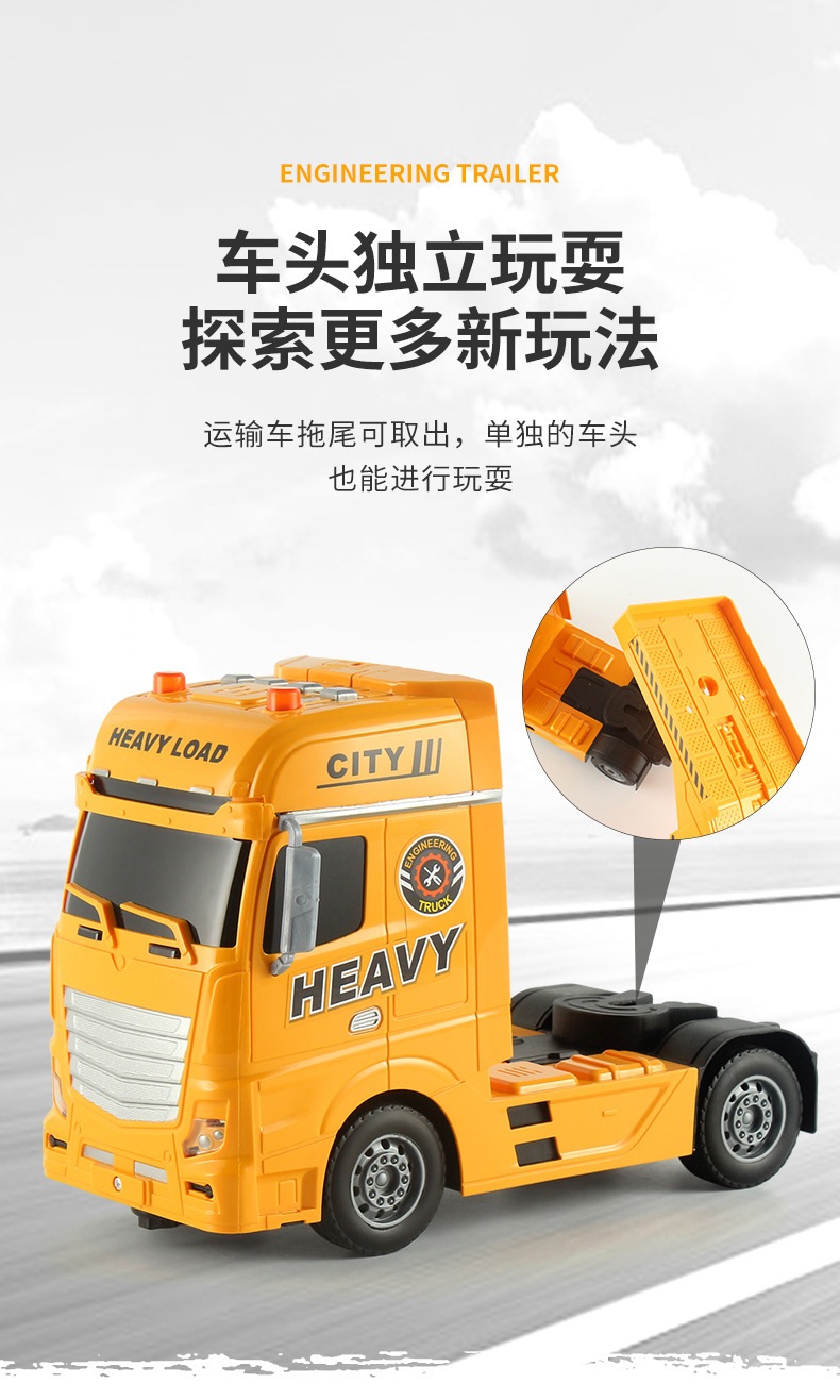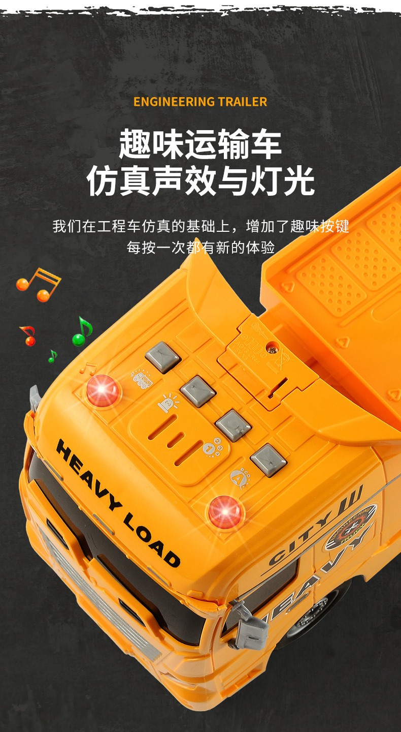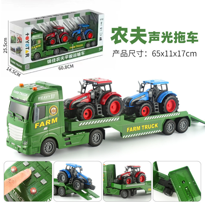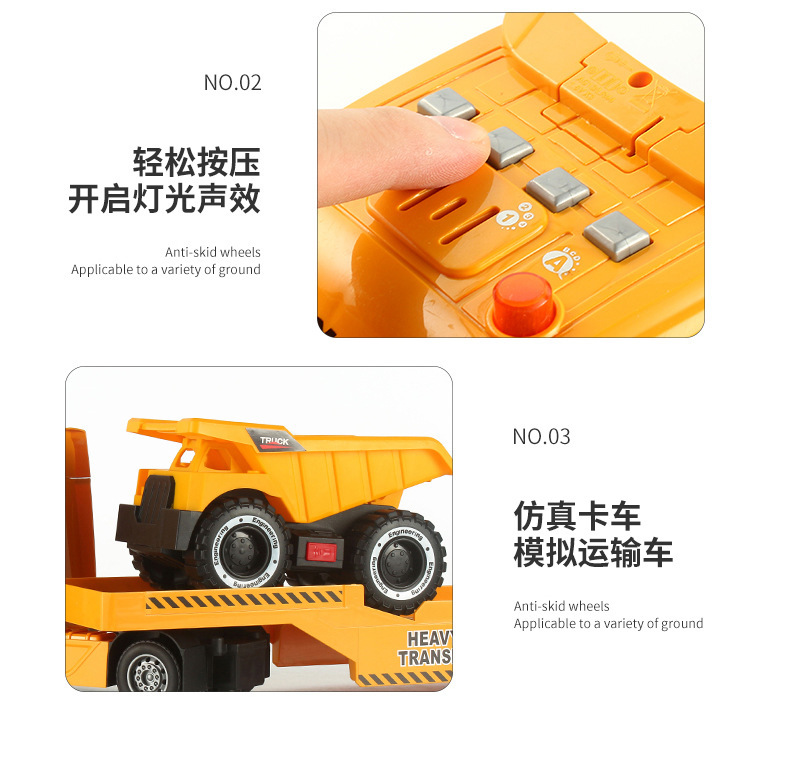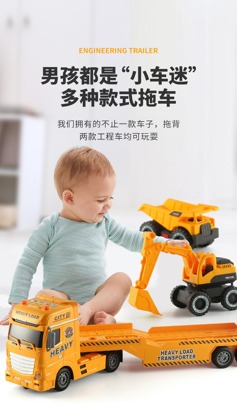 대형 엔지니어링 운송 트레일러 장난감 어린이 관성 공학 차량 어린이 시뮬레이션 평판 트레일러 굴삭기스토어 가기