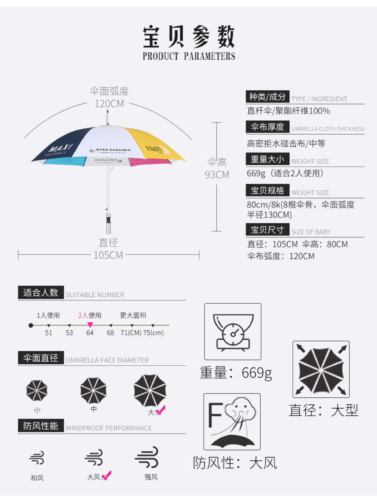 초대형 두꺼운 알루미늄 합금 긴 손잡이 우산 섬유 뼈 중간 스틱 광고 스트레이트 우산 비즈니스 우산 공장 직접 판매
