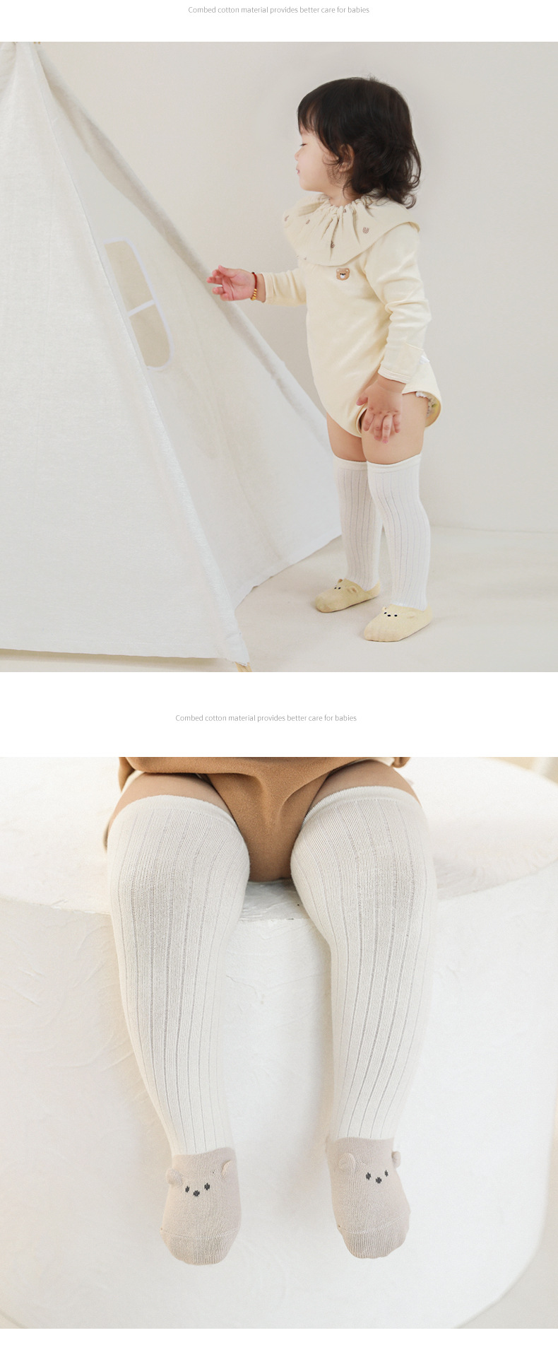 귀여운 입체 곰 신생아 스타킹 봄과 가을 무릎 패드 아기 양말 다리없는 뼈없는 아기 면 양말