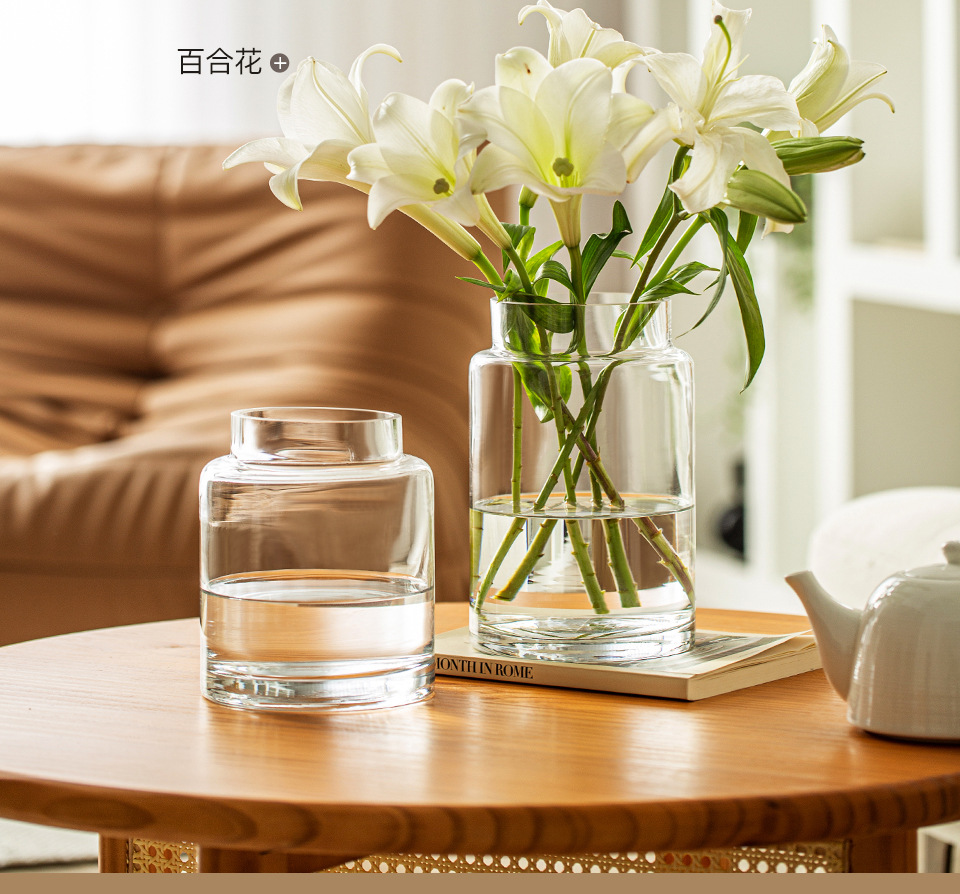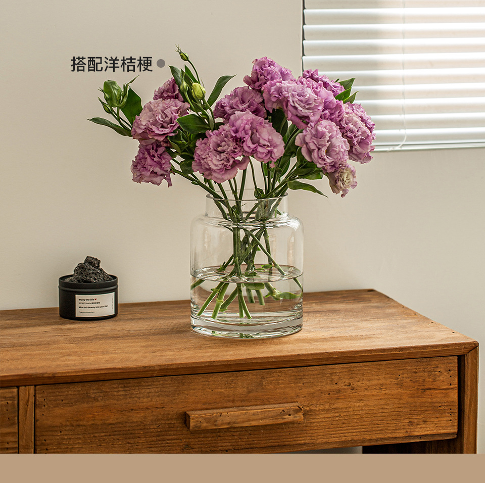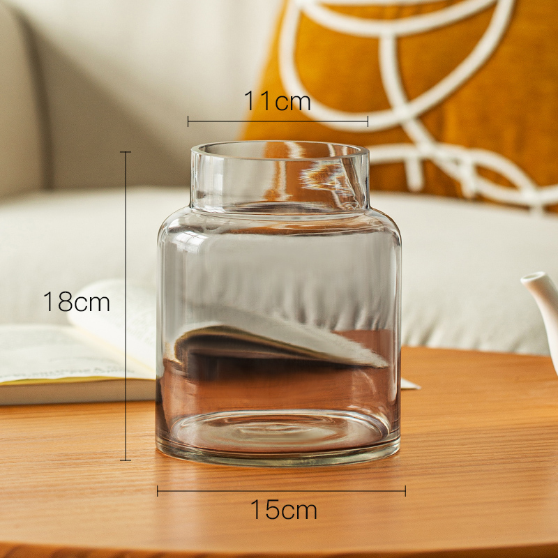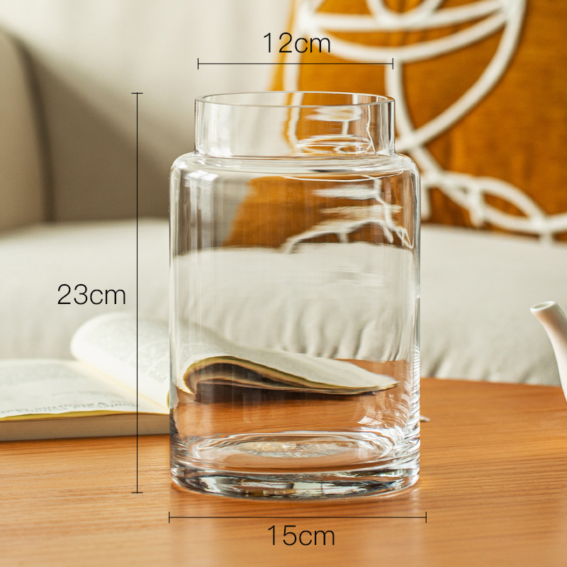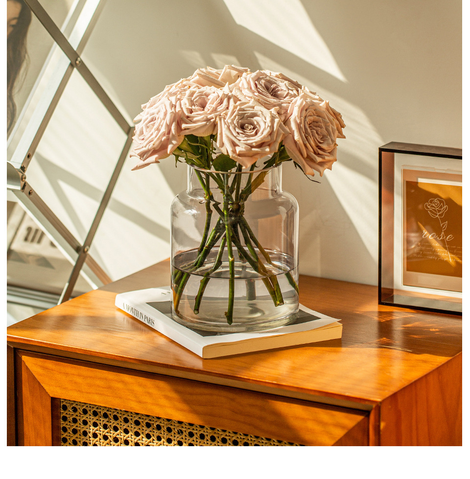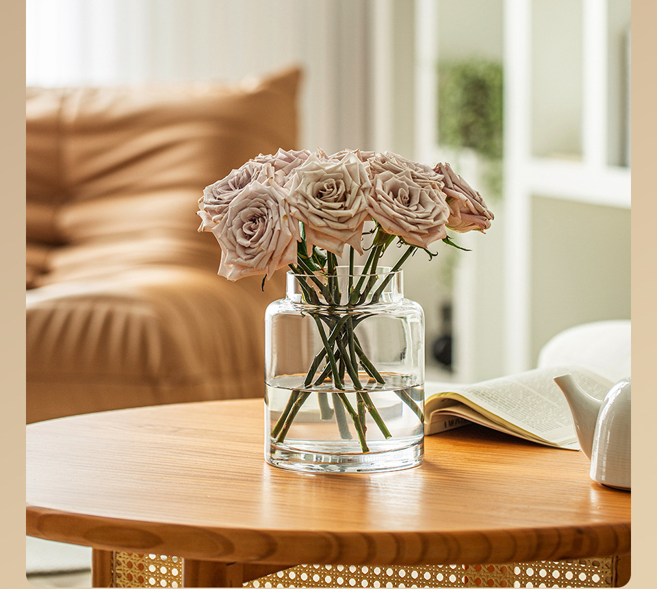 꽃병 장식품 거실 꽃 배열 유리 고급 감각 투명 수경 빈티지 식탁 짧은 수경 장미 큰 직경 와이드