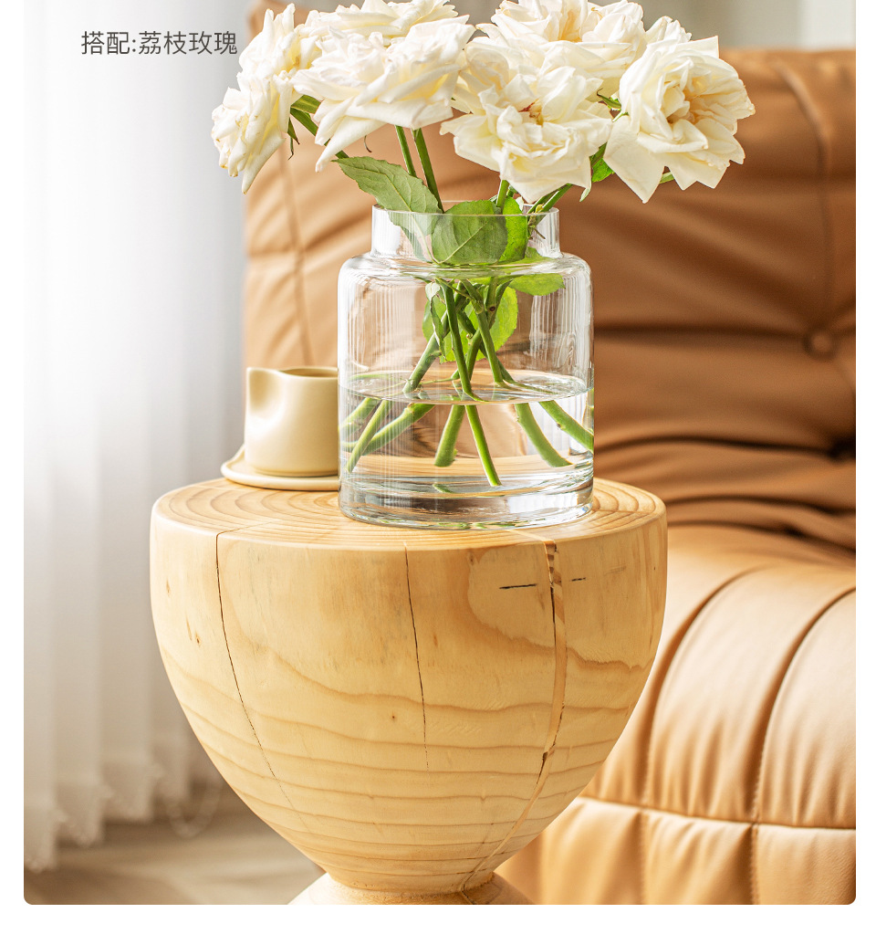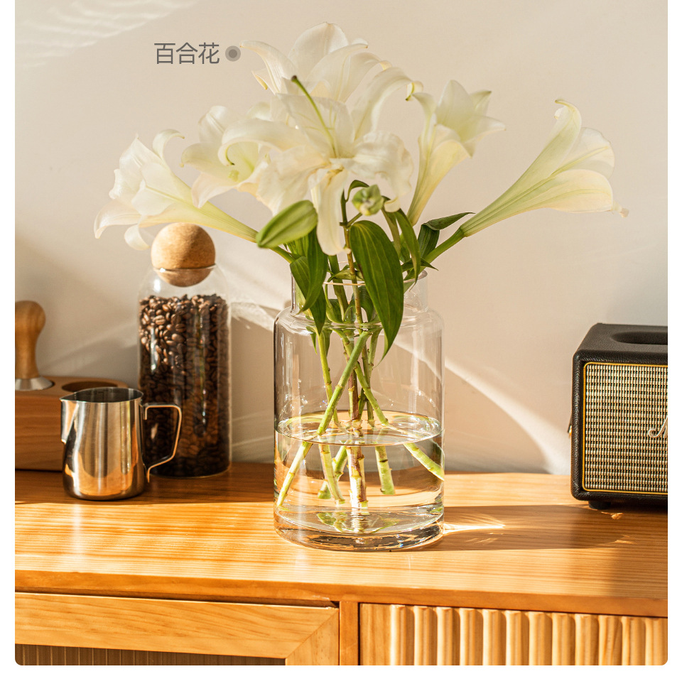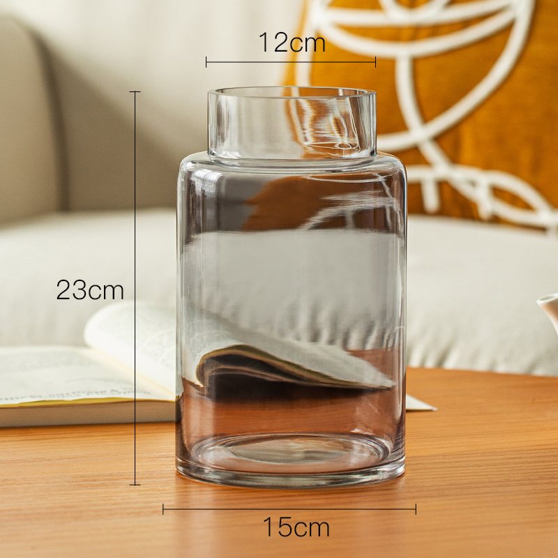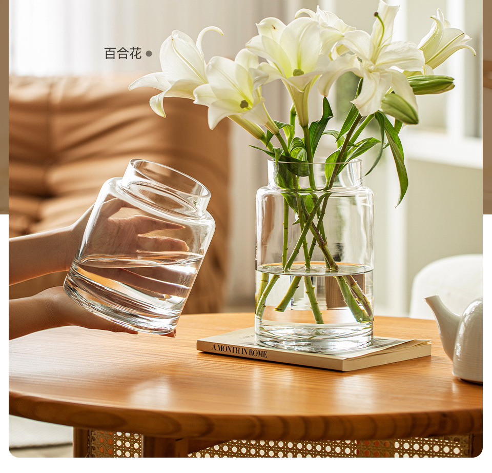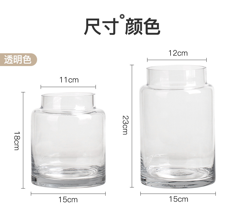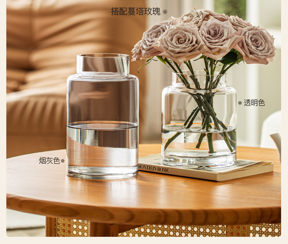 꽃병 장식품 거실 꽃 배열 유리 고급 감각 투명 수경 빈티지 식탁 짧은 수경 장미 큰 직경 와이드
