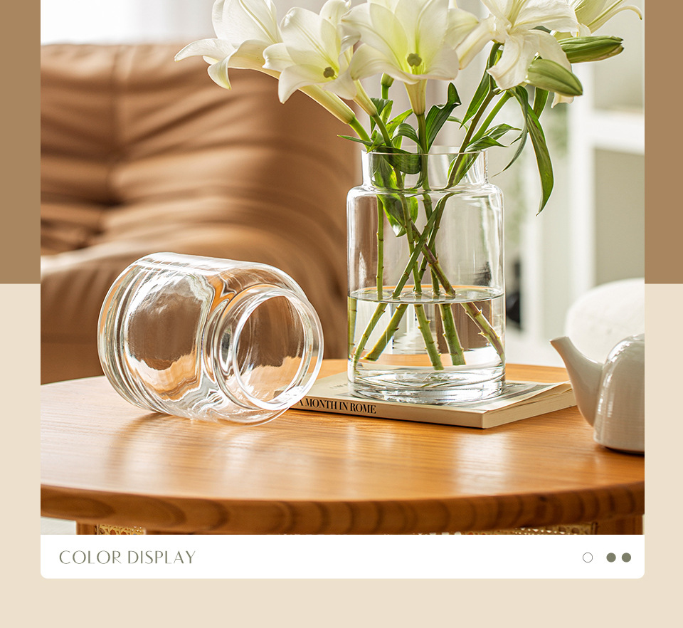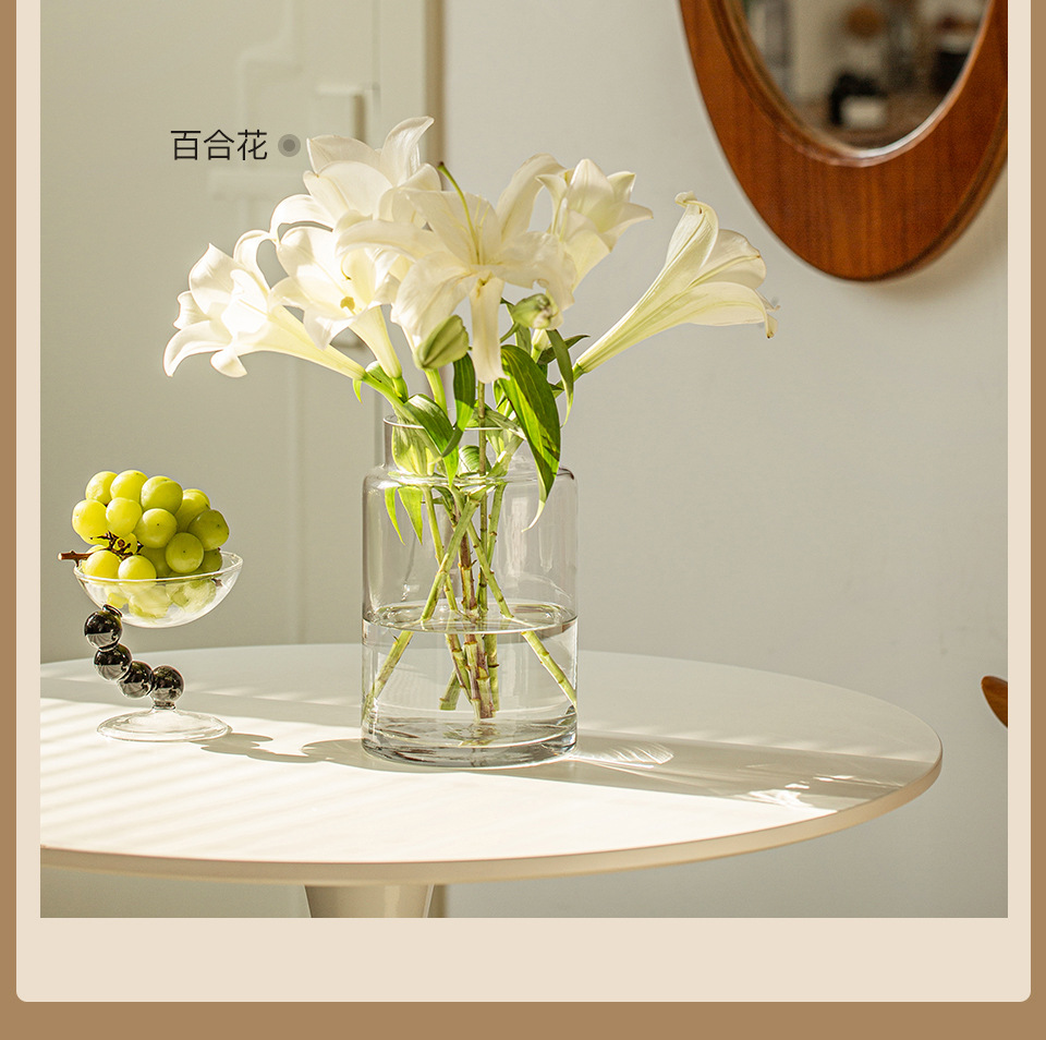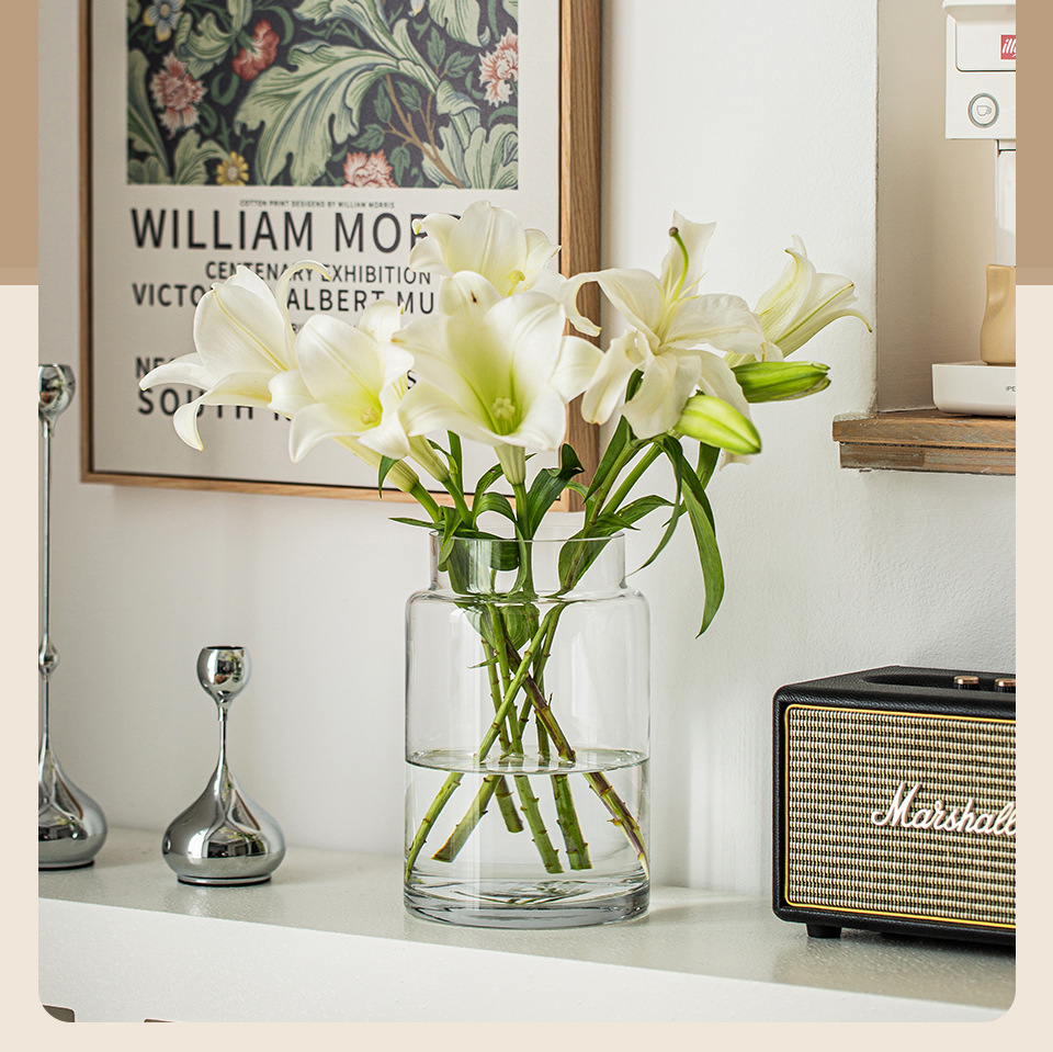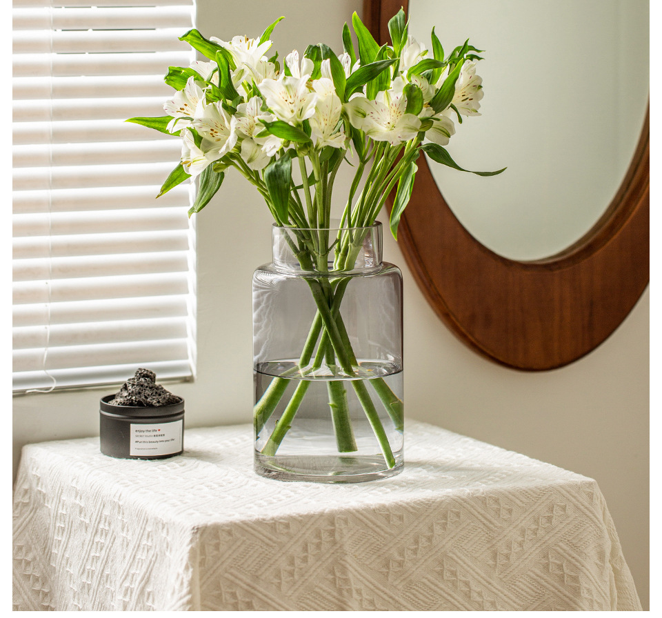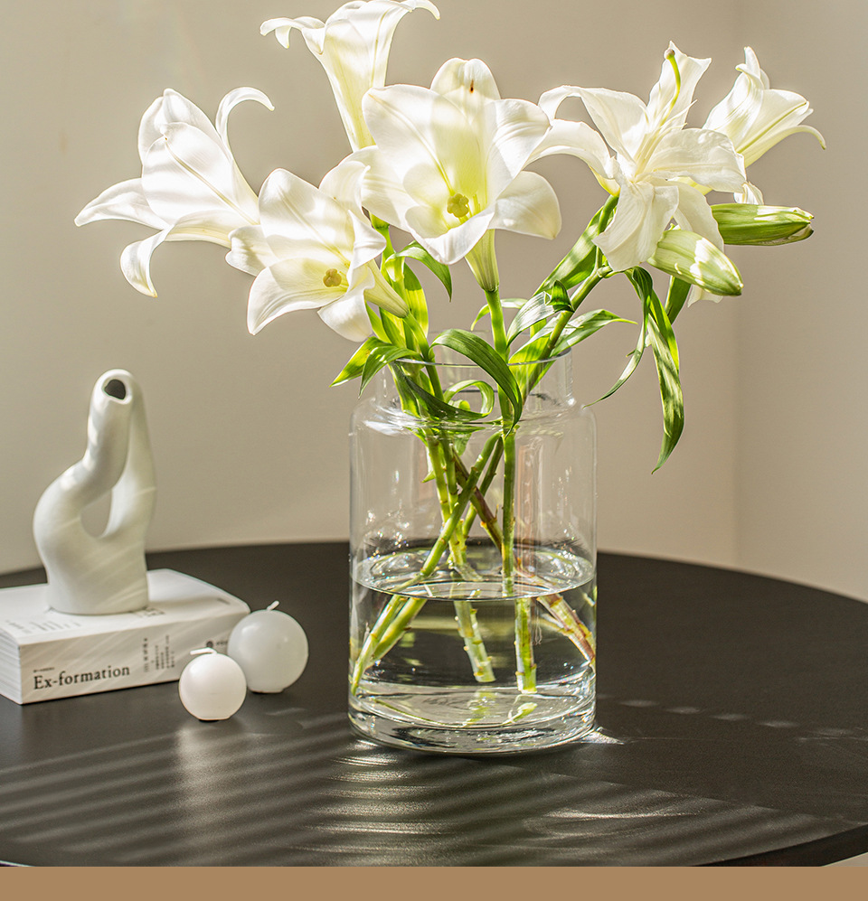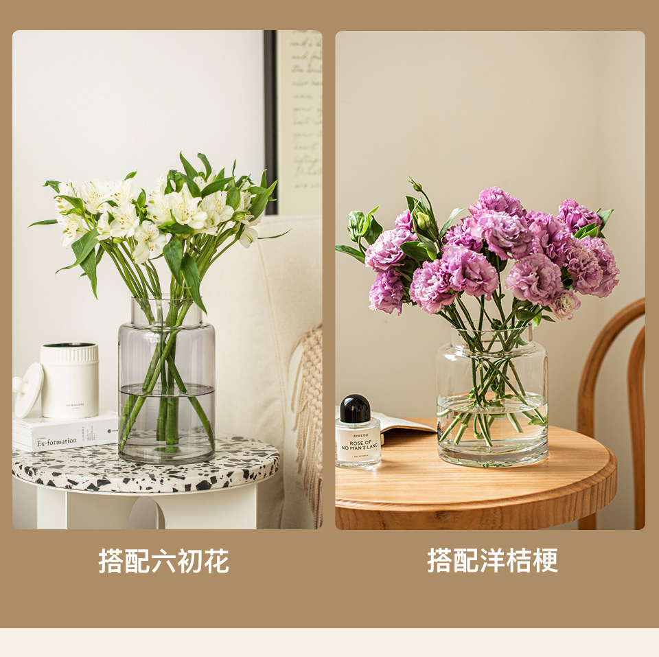 꽃병 장식품 거실 꽃 배열 유리 고급 감각 투명 수경 빈티지 식탁 짧은 수경 장미 큰 직경 와이드