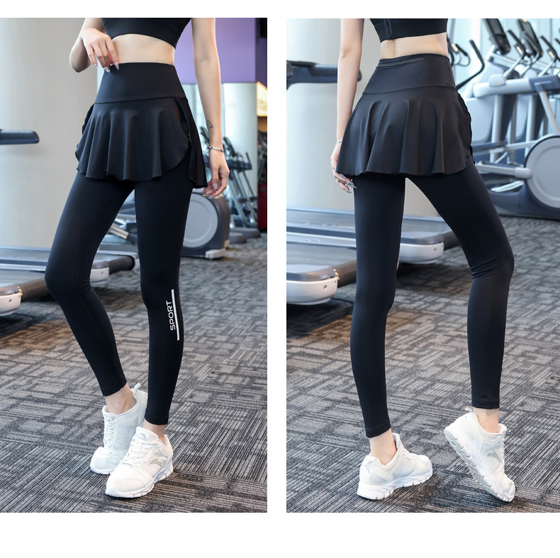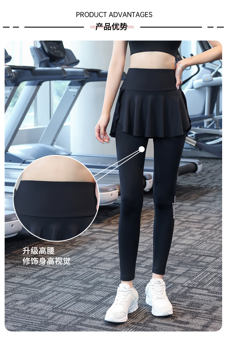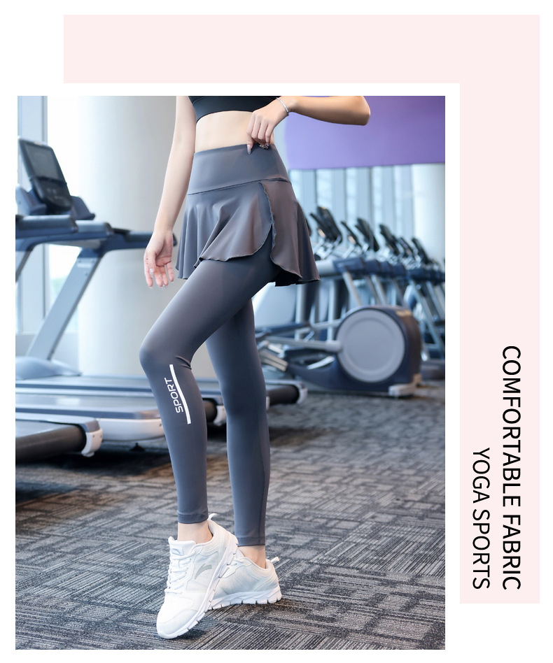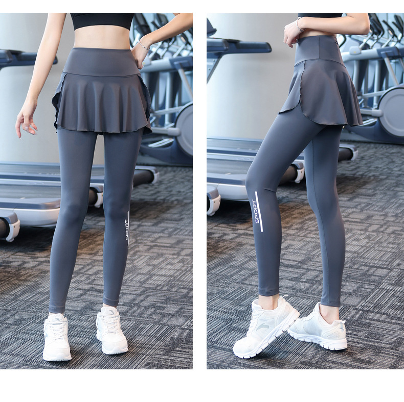 플러스 사이즈 요가 가짜 투피스 퀼로트 여성용 느슨한 슬리밍 하이 웨이스트 커버 와이드 땀 속건 스포츠 훈련 피트니스 바지스토어 가기
