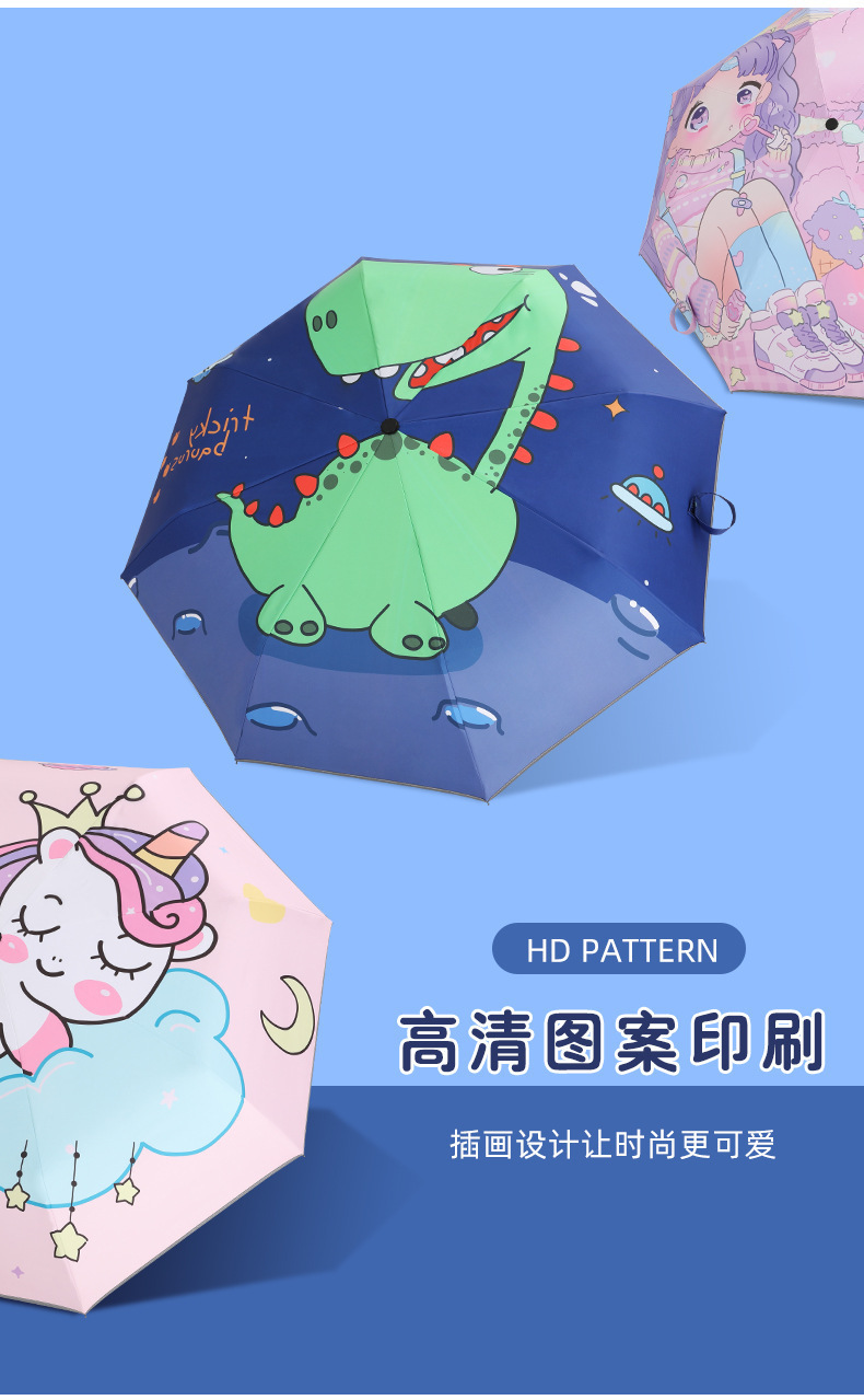 어린이 우산 6-12세용 만화 캐릭터 풀컬러 햇빛과 비를 겸용하는 양산우산, 대형 두꺼운 접이식 양산우산 도매스토어 가기