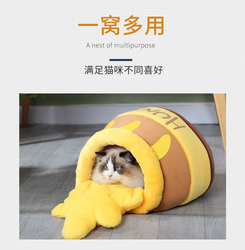 꿀 항아리 고양이 개집 고양이 겨울 따뜻한 고양이 개집 인터넷 연예인 귀여운 만화 사계절 개집 배달스토어 가기