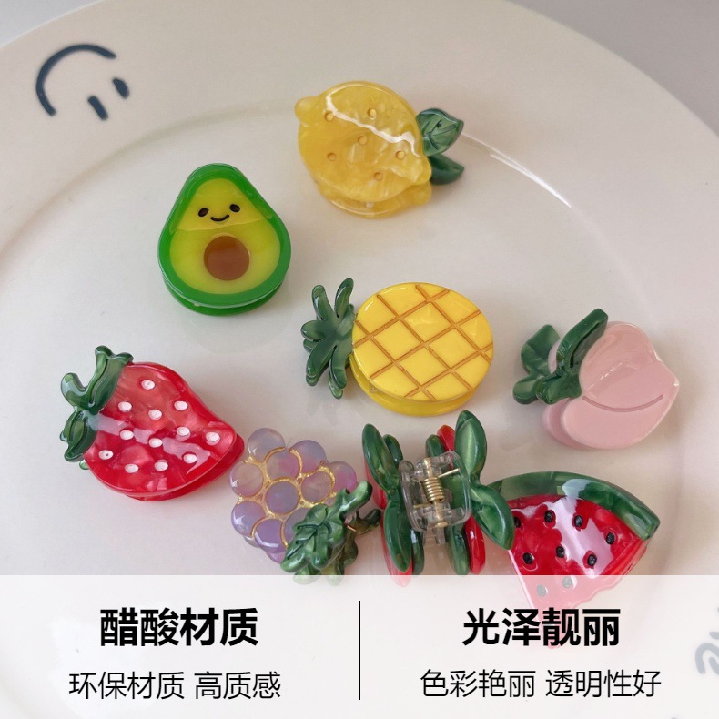 만화 과일 작은 클립 귀여운 딸기 레몬 체리 아세테이트 머리핀 포도 앞머리 머리핀 탑 클립 헤어 액세서리
