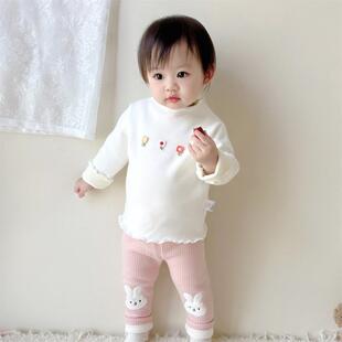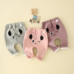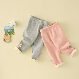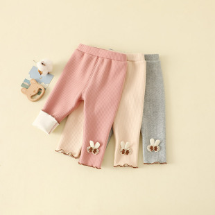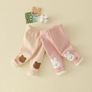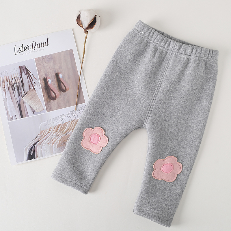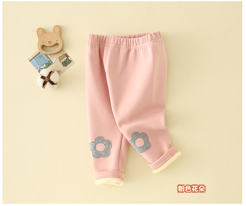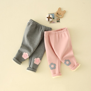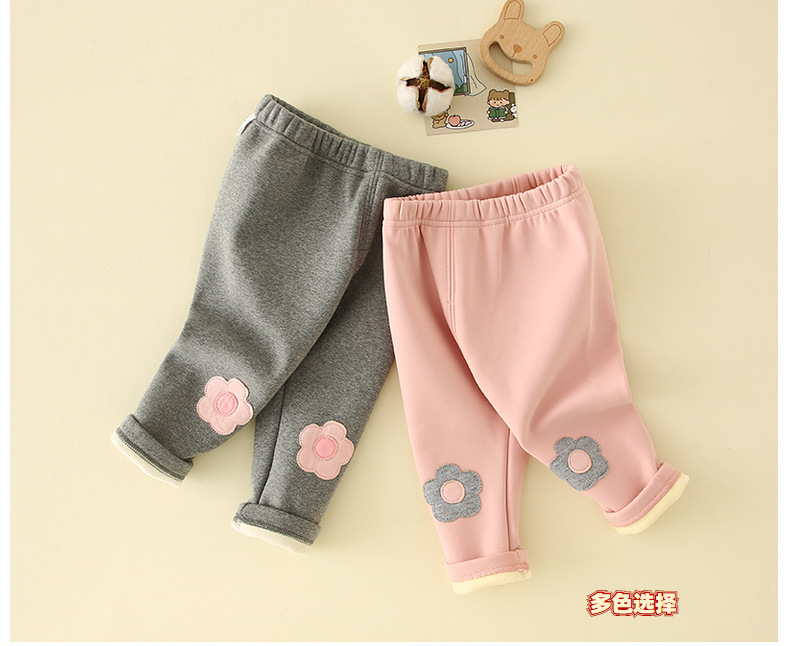 여아 양털 바지 2025 새로운 스타일 아기 소녀 0-3 세 한국 스타일 꽃 레깅스 두꺼운 어린이 바지스토어 가기