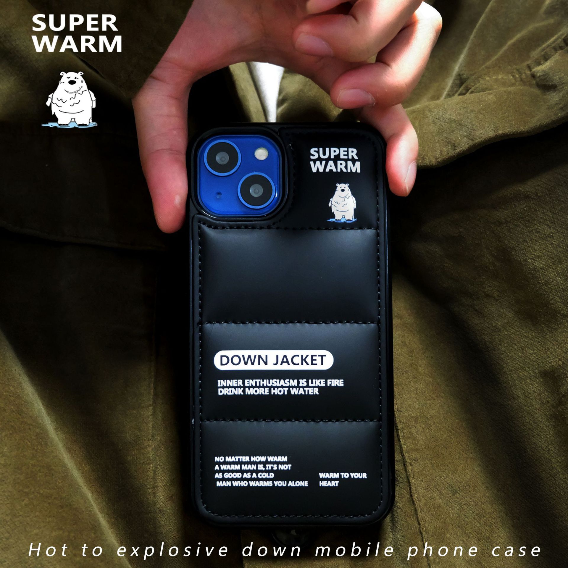 Apple 13p 휴대폰 케이스 15Pro 커플 11 낙하 방지 XR 대외 무역 지문 방지에 적합한 대형 구멍 면 충전 다운 재킷스토어 가기