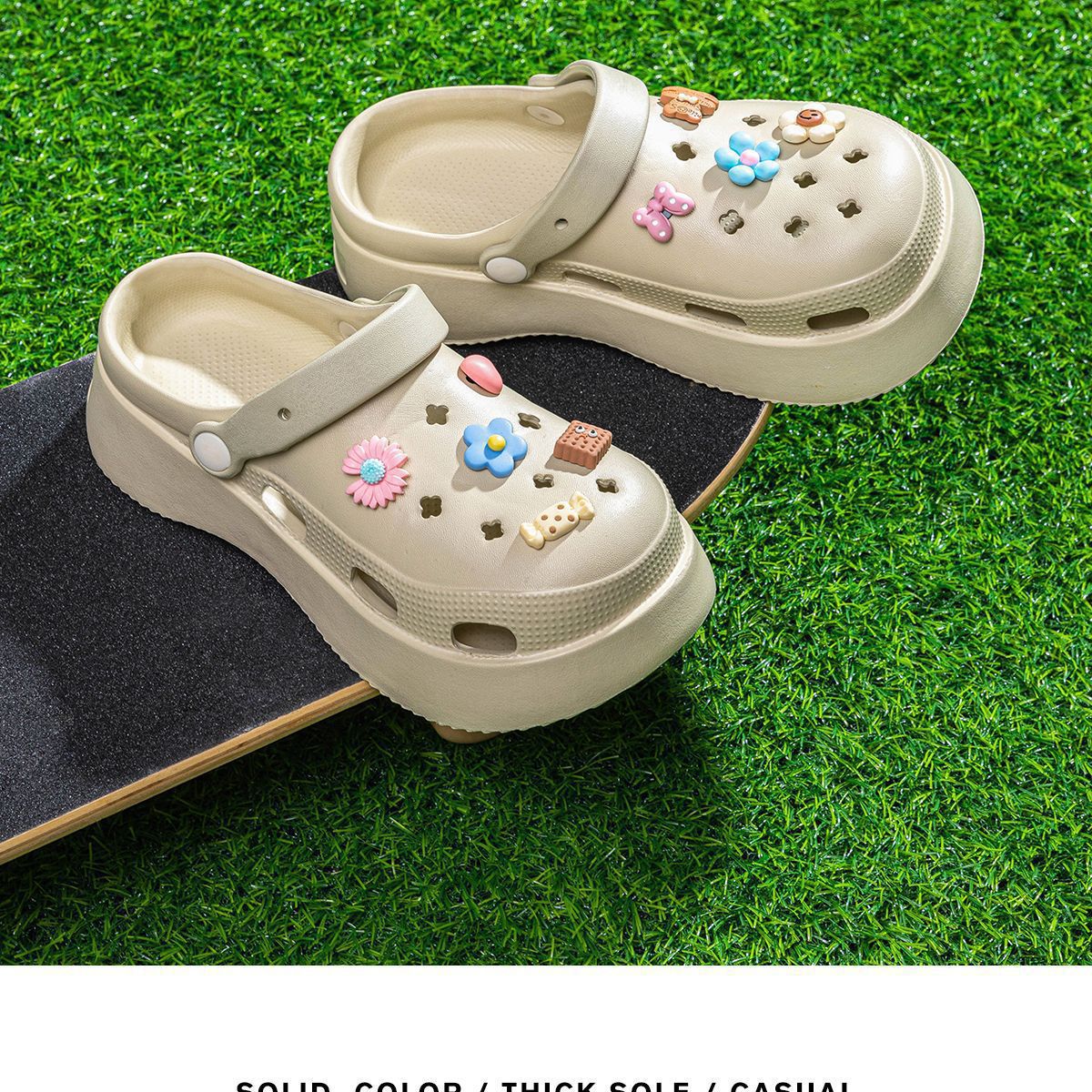 구멍 신발 슬리퍼 여성의 여름 유행 인터넷 축하 높이 증가 두꺼운 밑창 실내 홈 미끄럼 방지 DIY 샌들스토어 가기