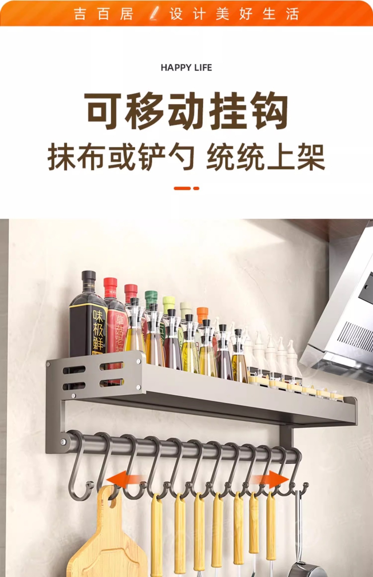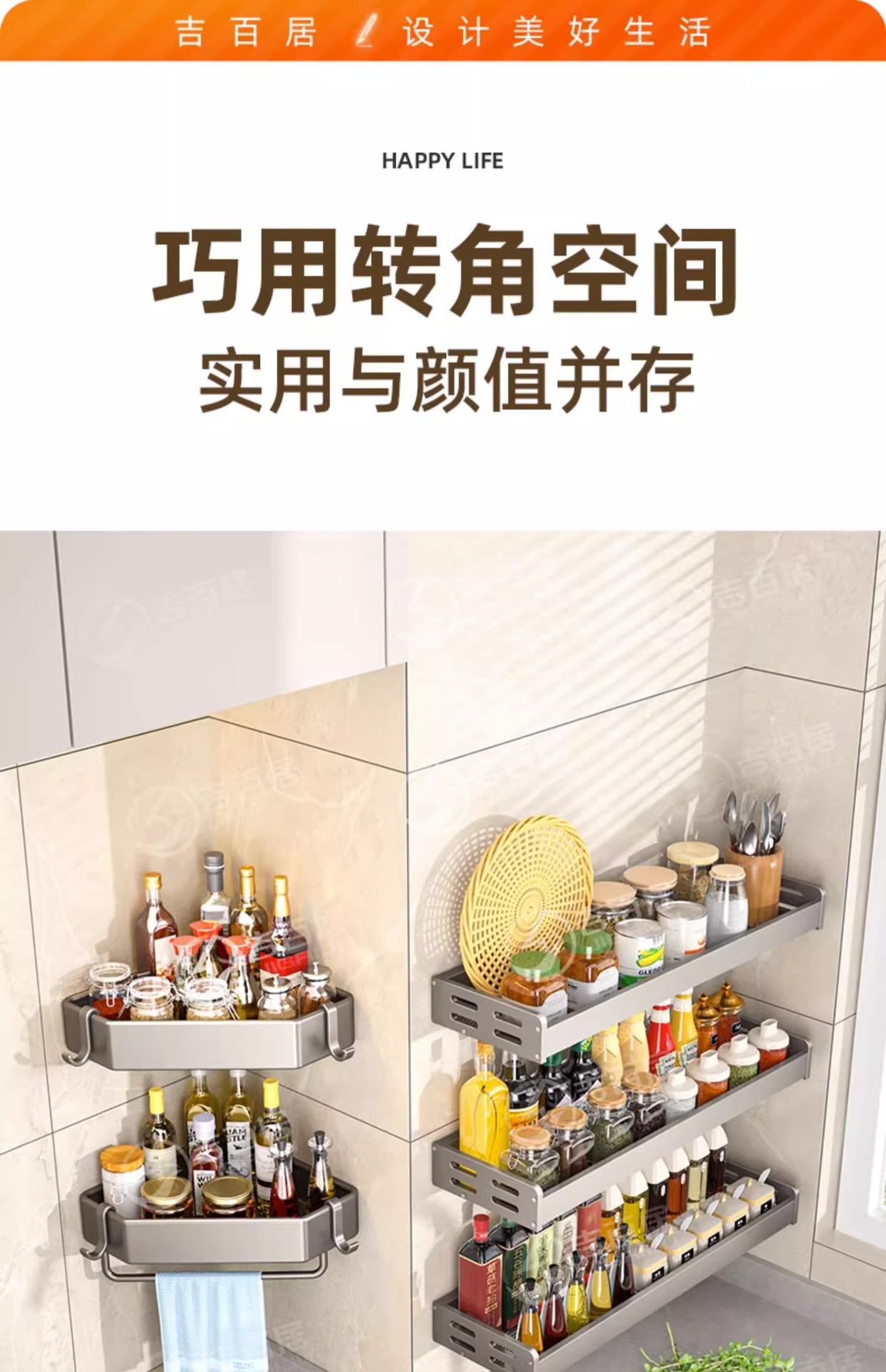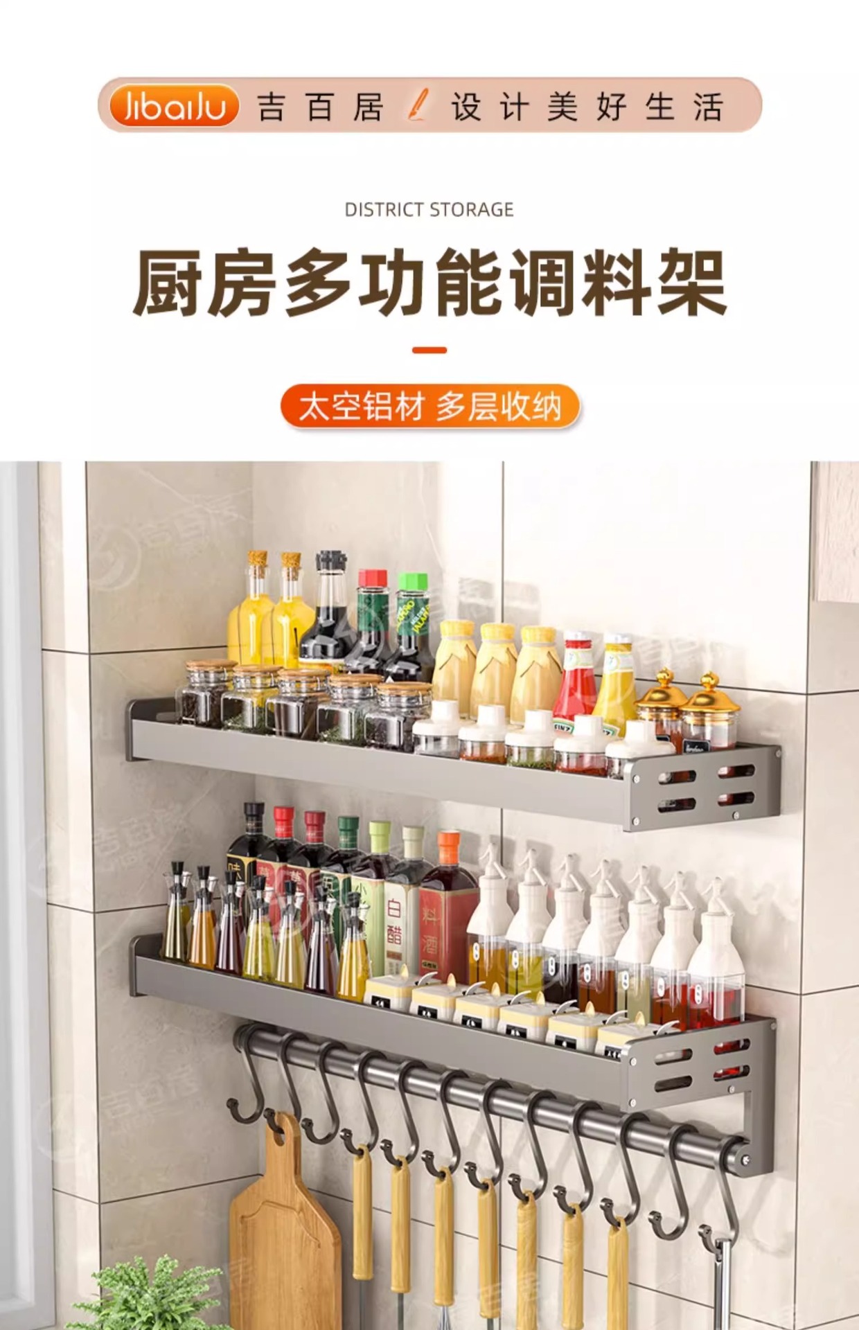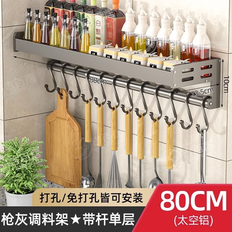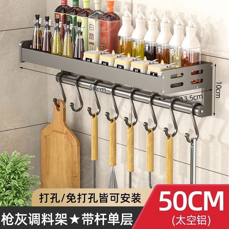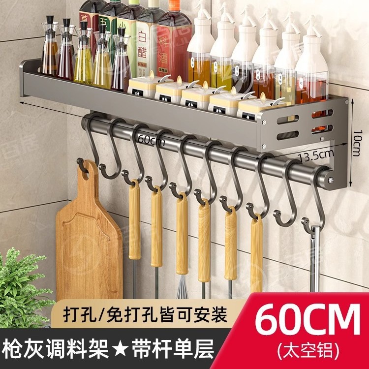 주방 조미료 보관 랙 벽걸이 형 비 천공 다층 조미료 보관 랙 다기능 벽 후크