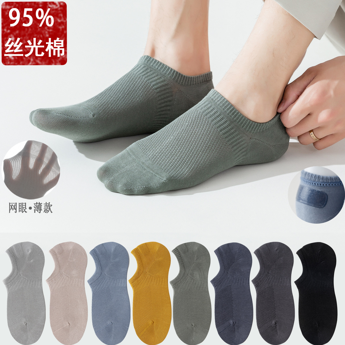 95% 면 남자 여름 얇은 단색 양말 메쉬 얕은 입 보이지 않는 양말 실리콘 미끄럼 탈취제 순수 면 보트 양말