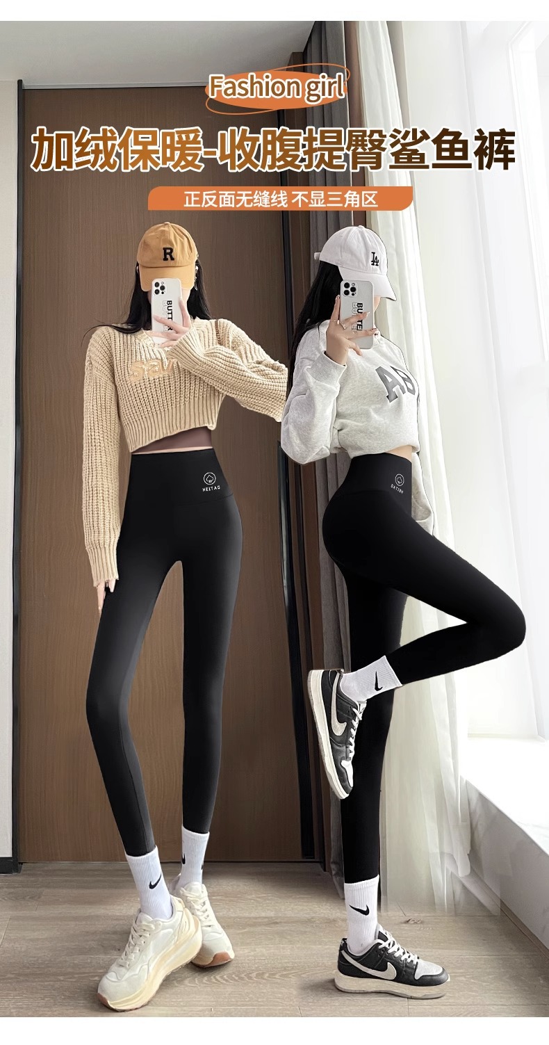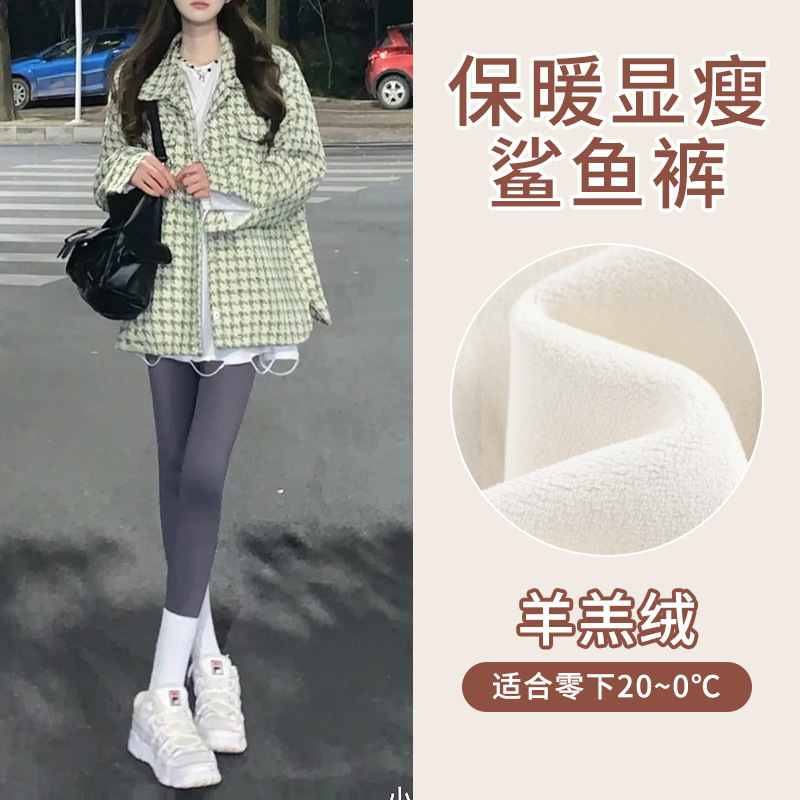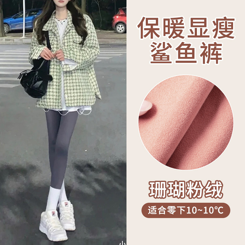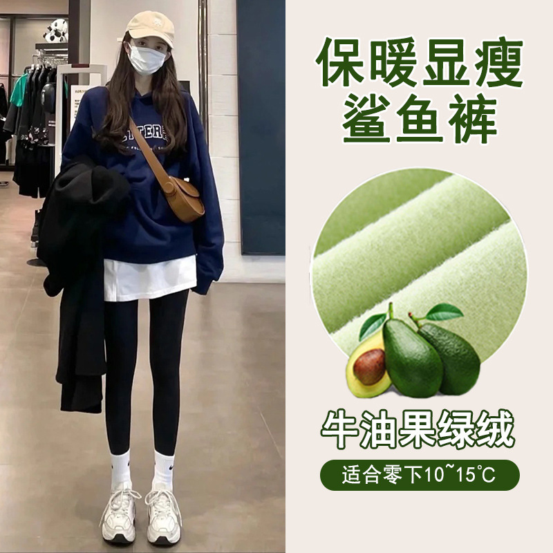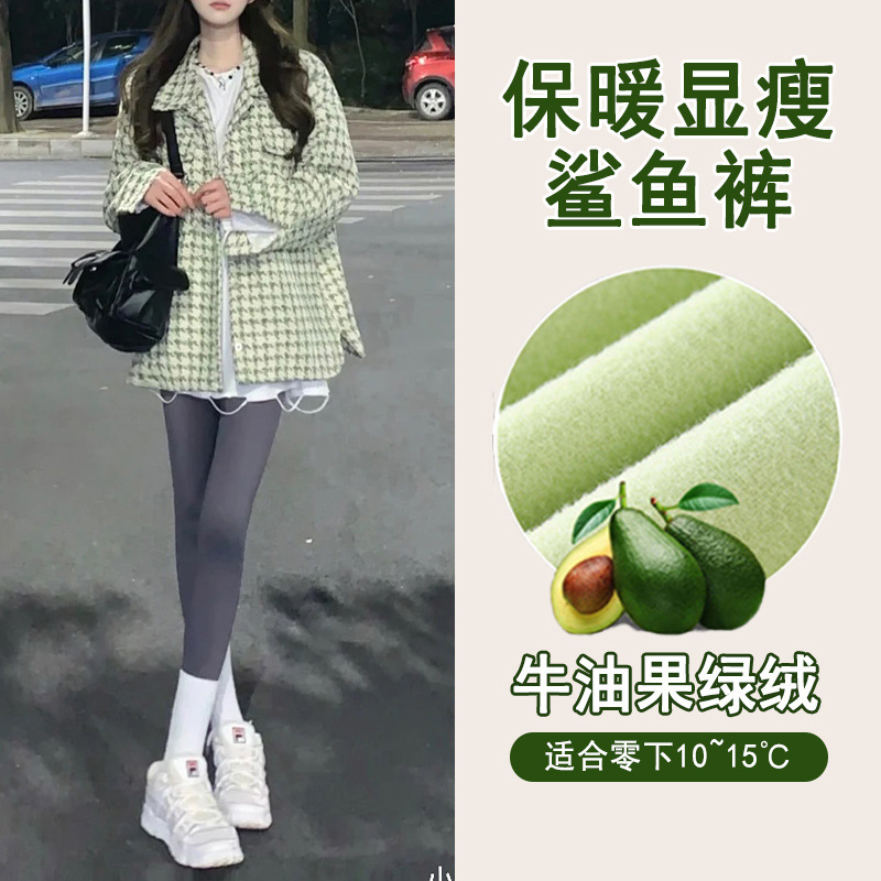 아보카도 그린 상어 바지 여자의 복장 겨울 기모 두꺼운 바비 바지 하이 웨이스트 복부 엉덩이 리프팅 따뜻한 레깅스스토어 가기